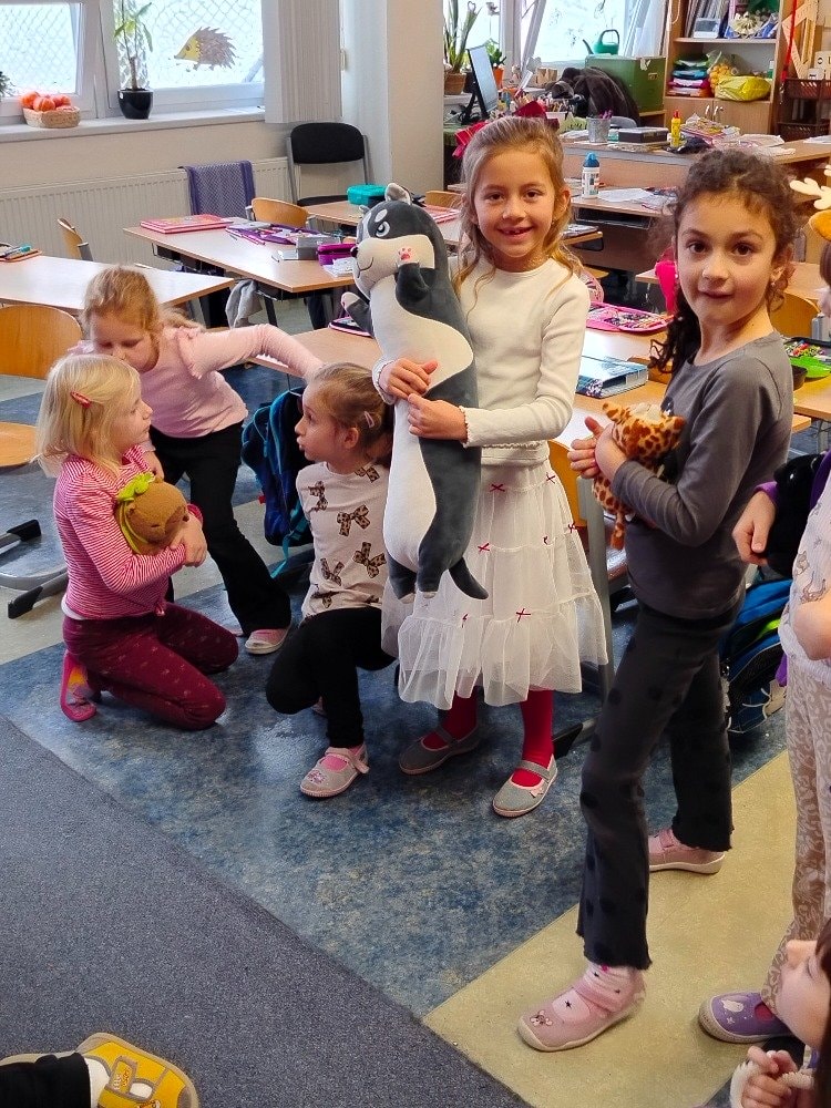 Ve středu 26. listopadu jsme měli ve třídě speciální hračkový den, kdy si děti mohly do třídy přinést svoji nejmilejší a nejoblíbenější hračku nebo knížku. V úvodu každý svoji hračku představil spolužákům, povyprávěl, jak si s ní hraje, kde má hračka doma své místo, od koho a kdy ji dostal, jak se hračka jmenuje a jak je velká, z čeho je vyrobena, proč je jeho oblíbená apod. Děti se nenásilnou formou učily poslouchat druhé, o čem jejich spolužáci vypráví.