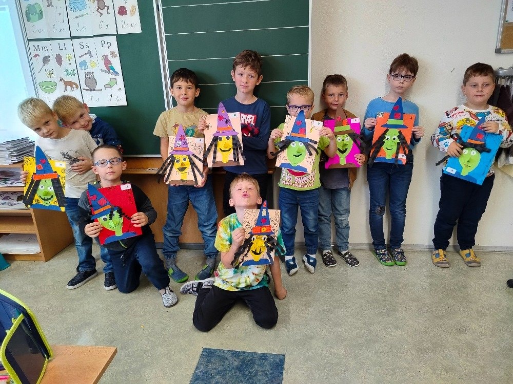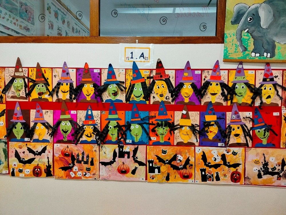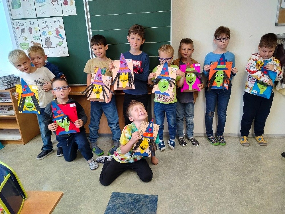 Protože se nám blíží čas Halloweenu, tématem výtvarné výchovy byl portrét čarodějnice. Na papírech se objevily tváře s dlouhými špičatými klobouky, ošklivými zahnutými nosy a pichlavým pohledem. Okolo portrétů se brzy začaly tvořit pavučiny, které dodaly obrázkům tu správnou strašidelnou atmosféru. Takže pozor, kdybyste u nás ve škole potkali nějakou podezřele čarodějnou postavu, možná právě ožila z našich obrázků!