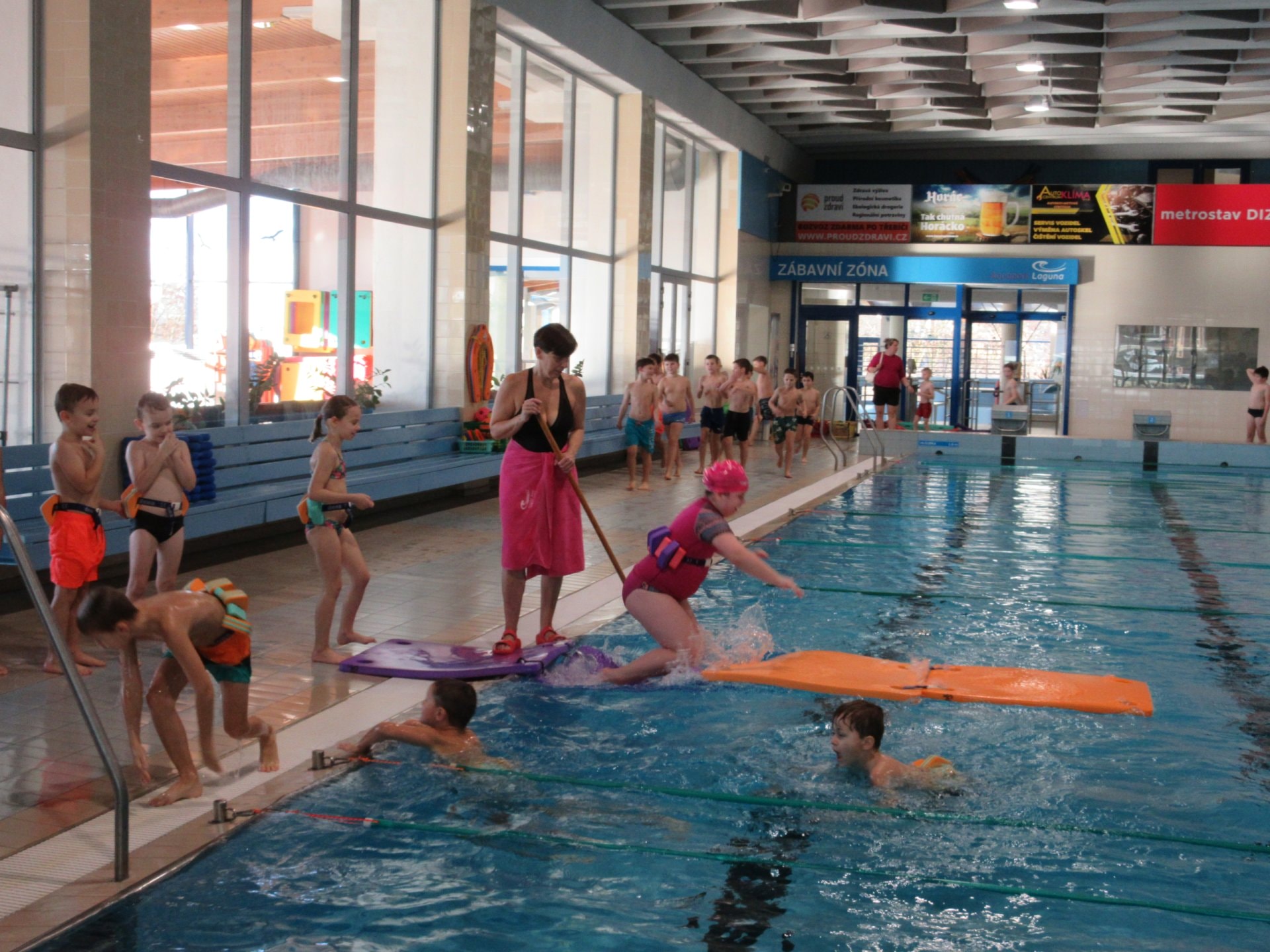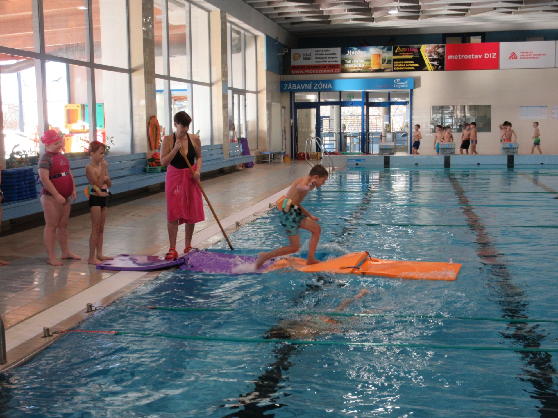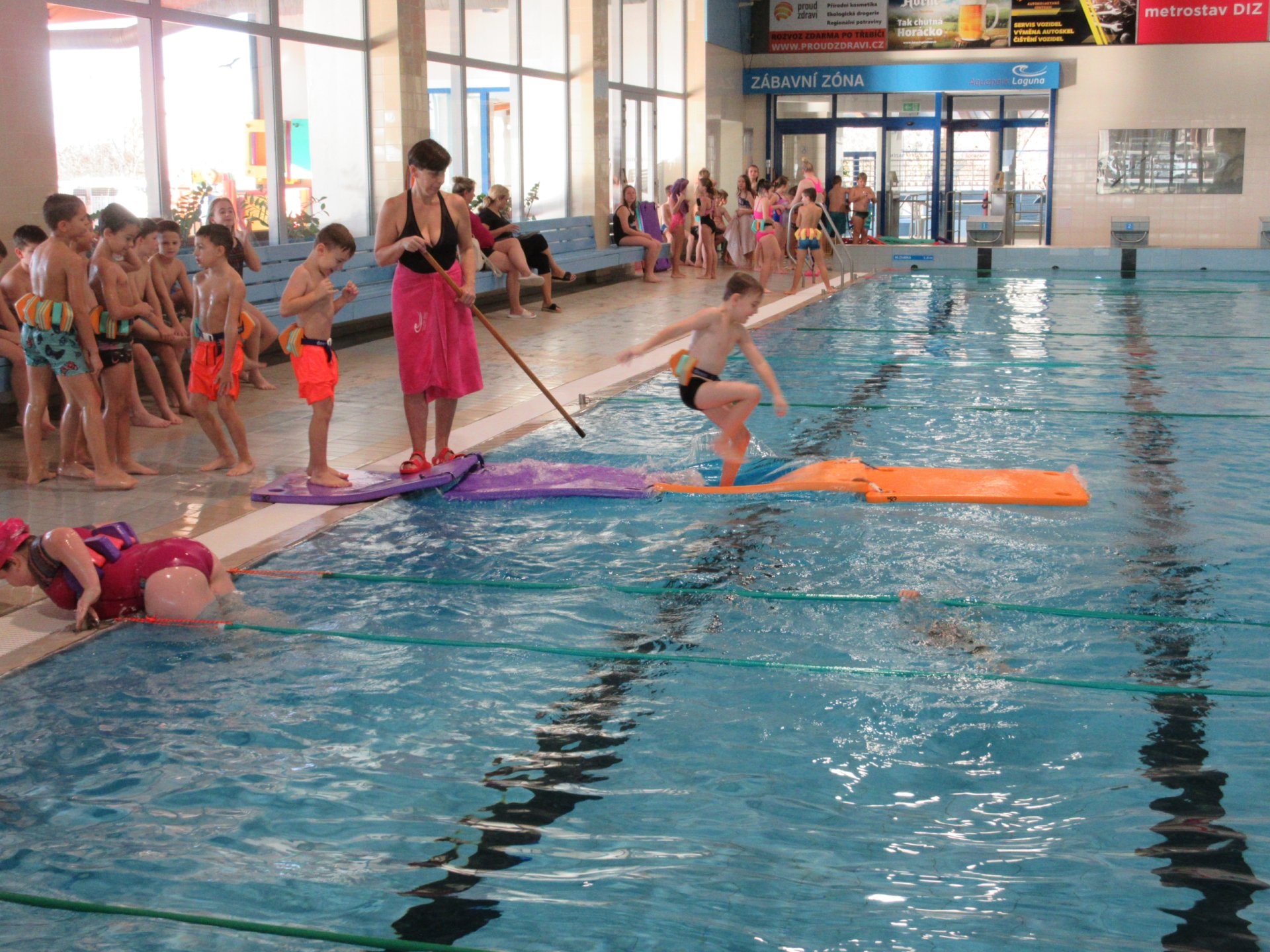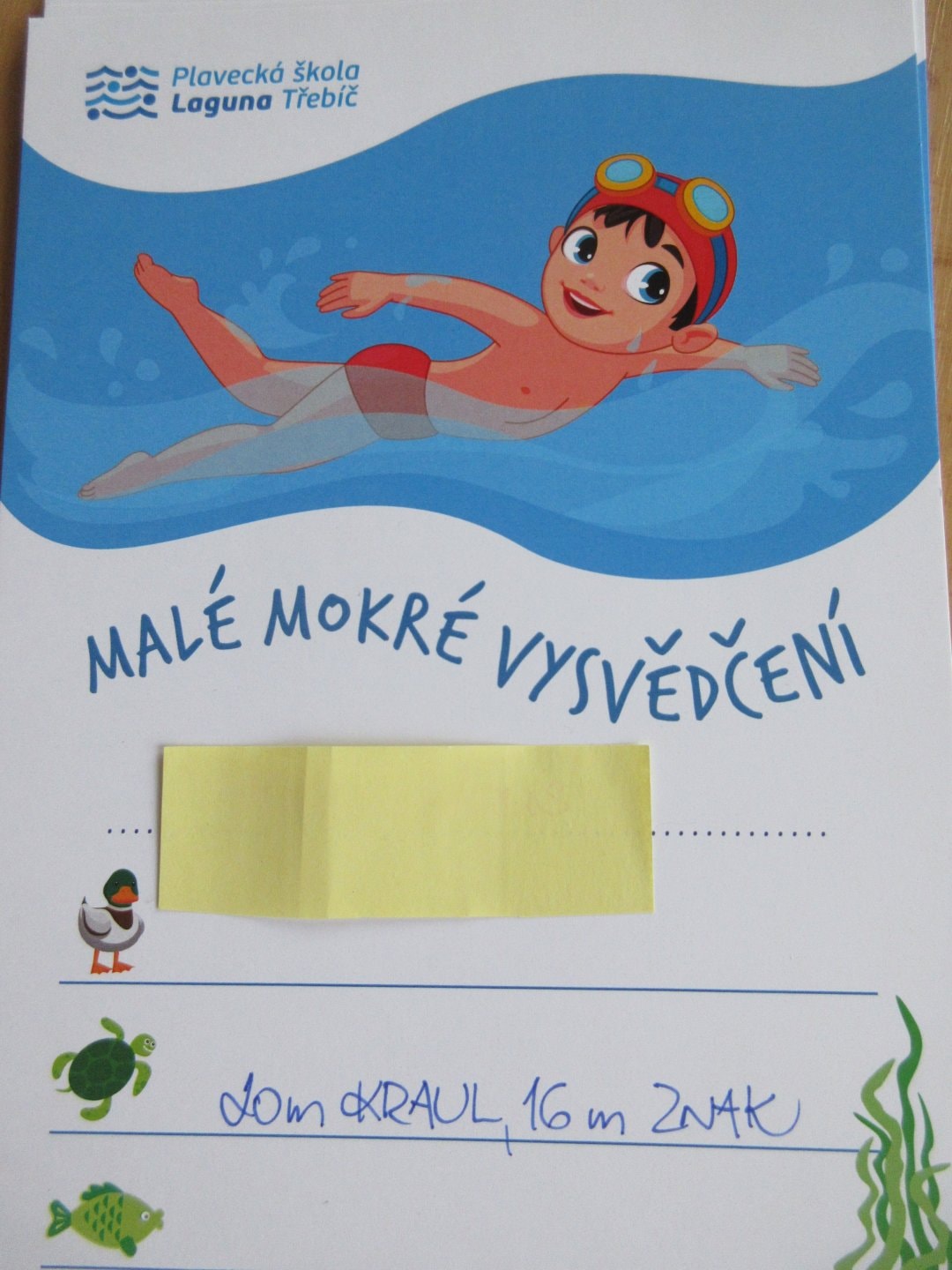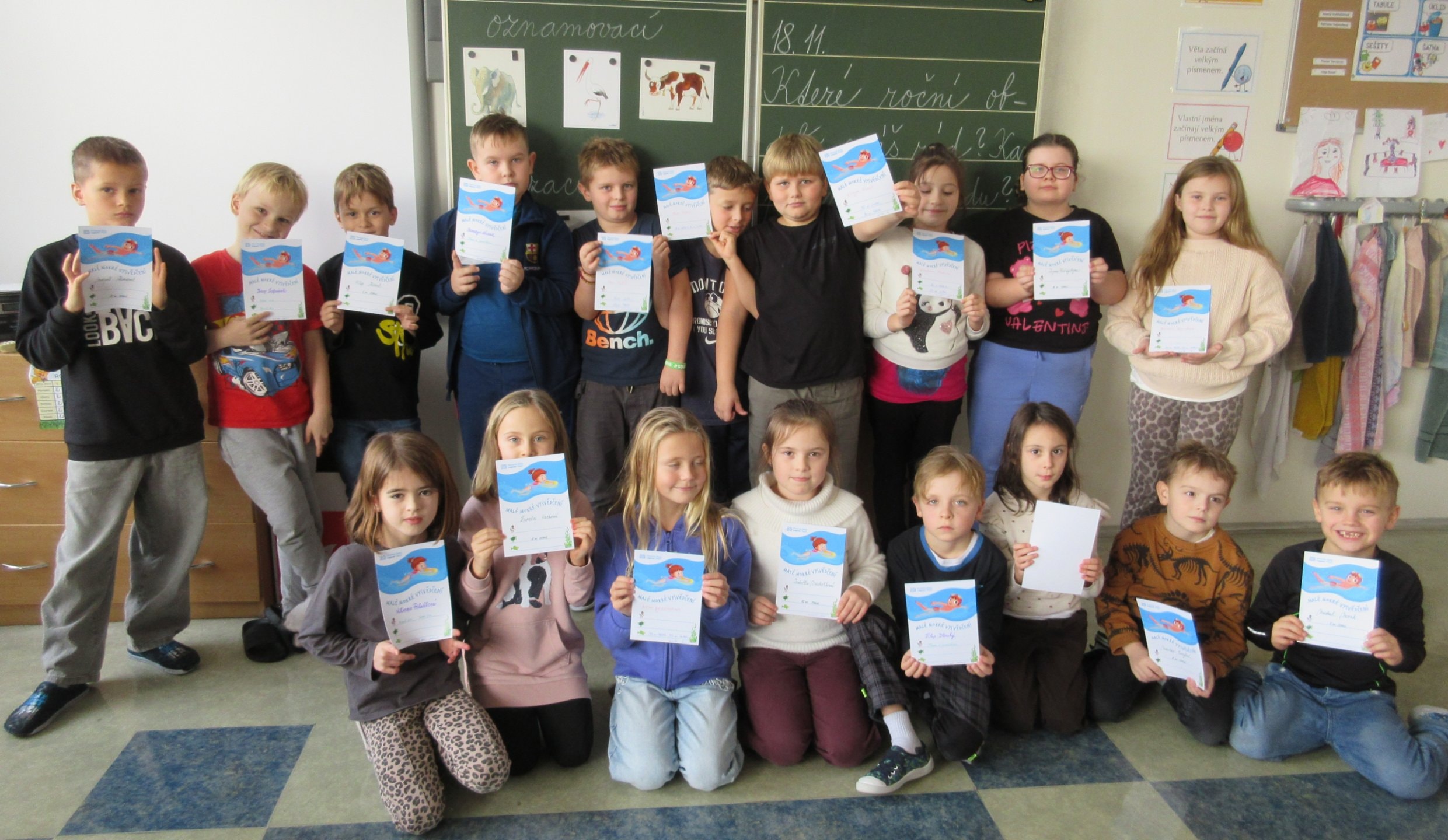 I v letošním školním roce děti absolvovaly 10 lekcí předplaveckého výcviku. I když skoro všechny děti plavat umí a vody se nebojí, mohly vylepšit techniku a plaveckou vytrvalost. Výsledkem jejich snažení bylo ´malé mokré vysvědčení´, na němž byl místo známky zachycen nejvyšší výkon v obou plaveckých stylech.