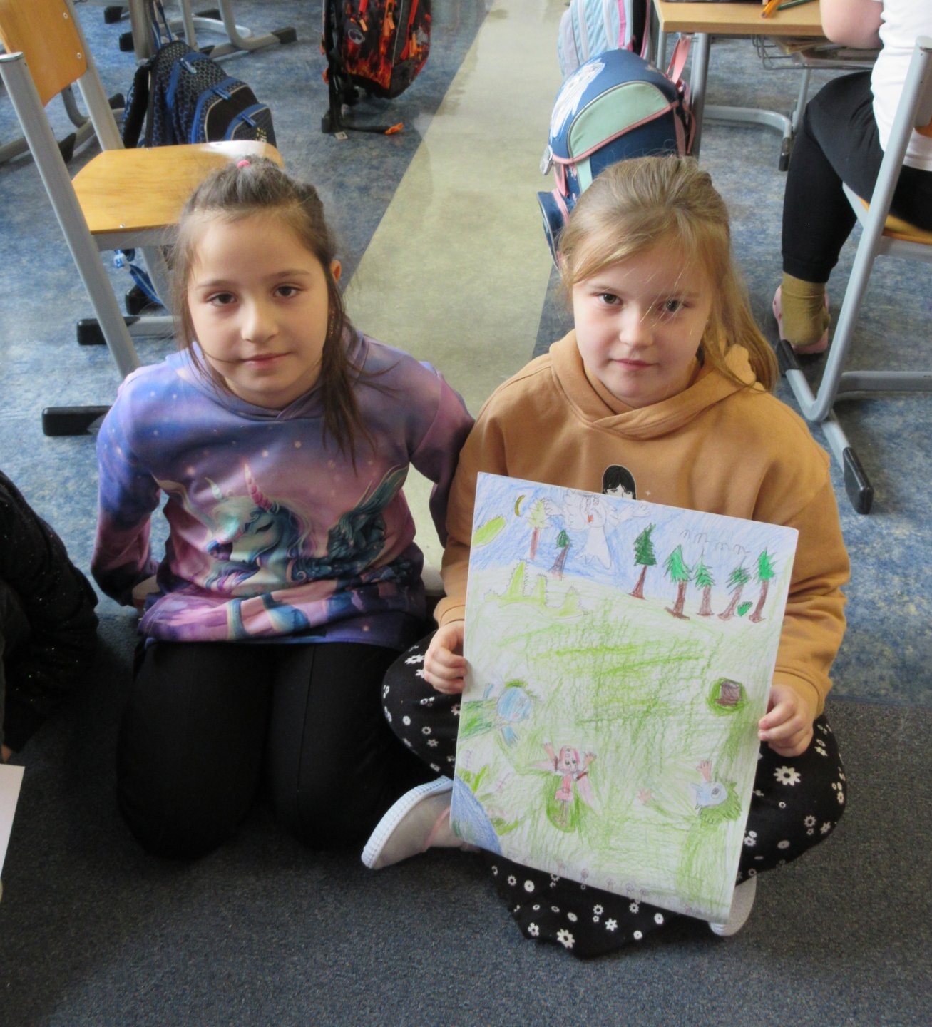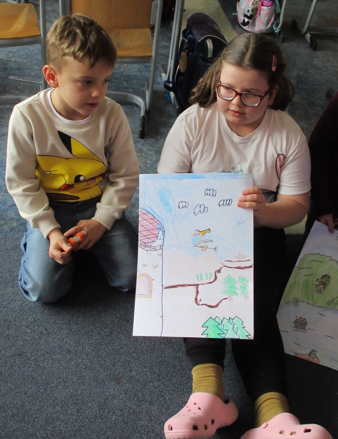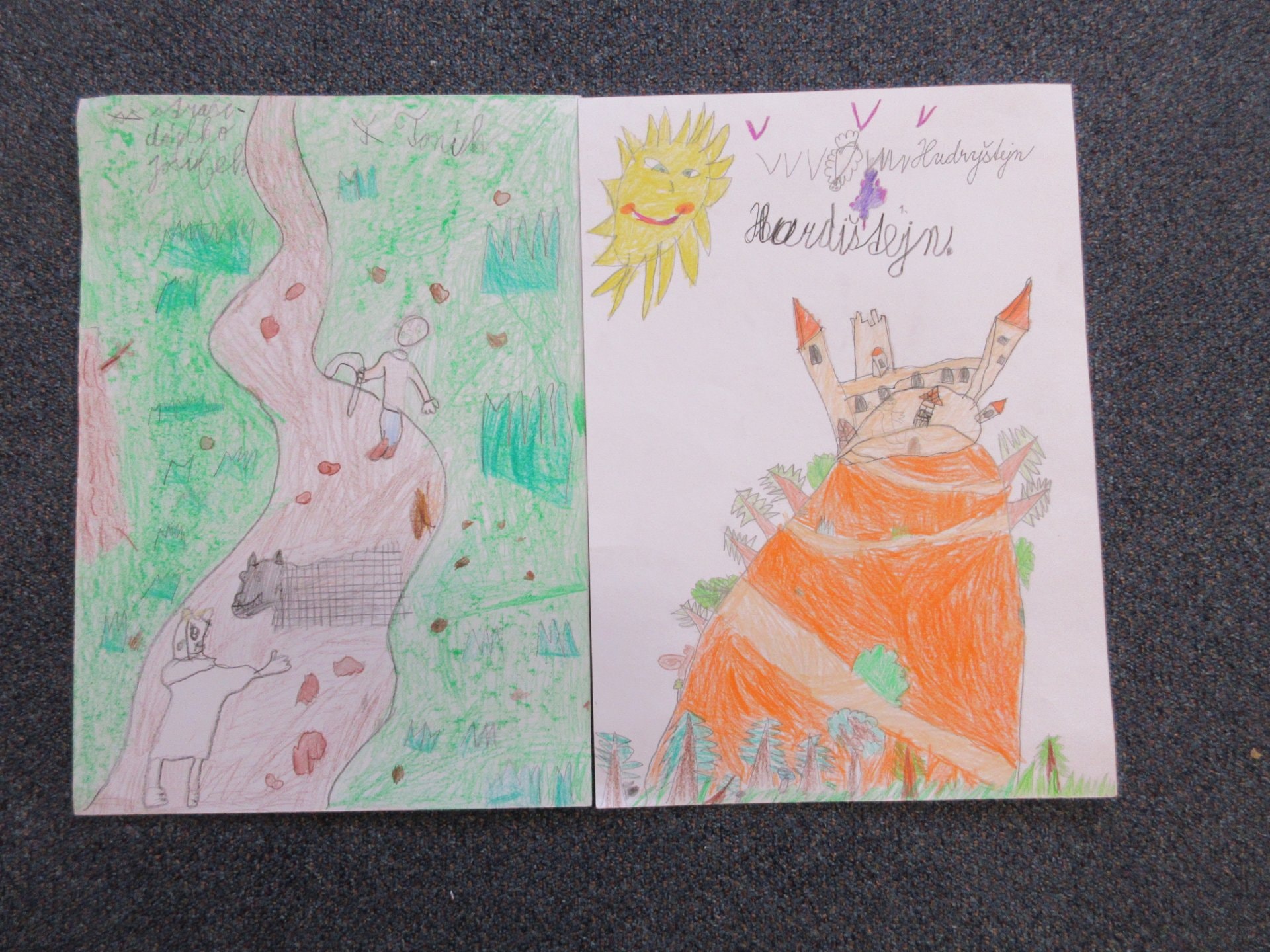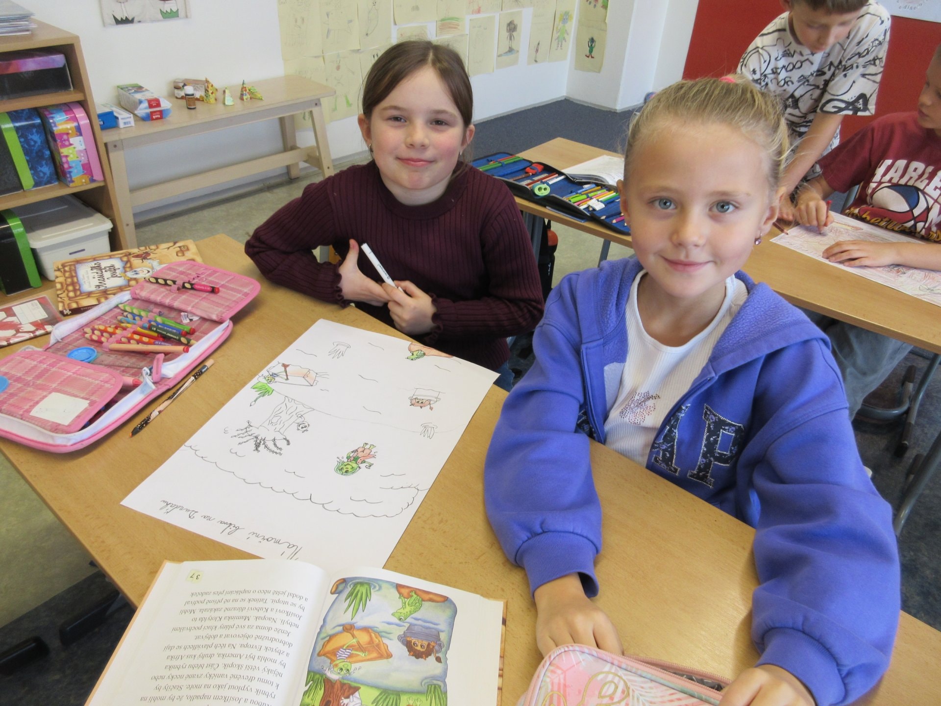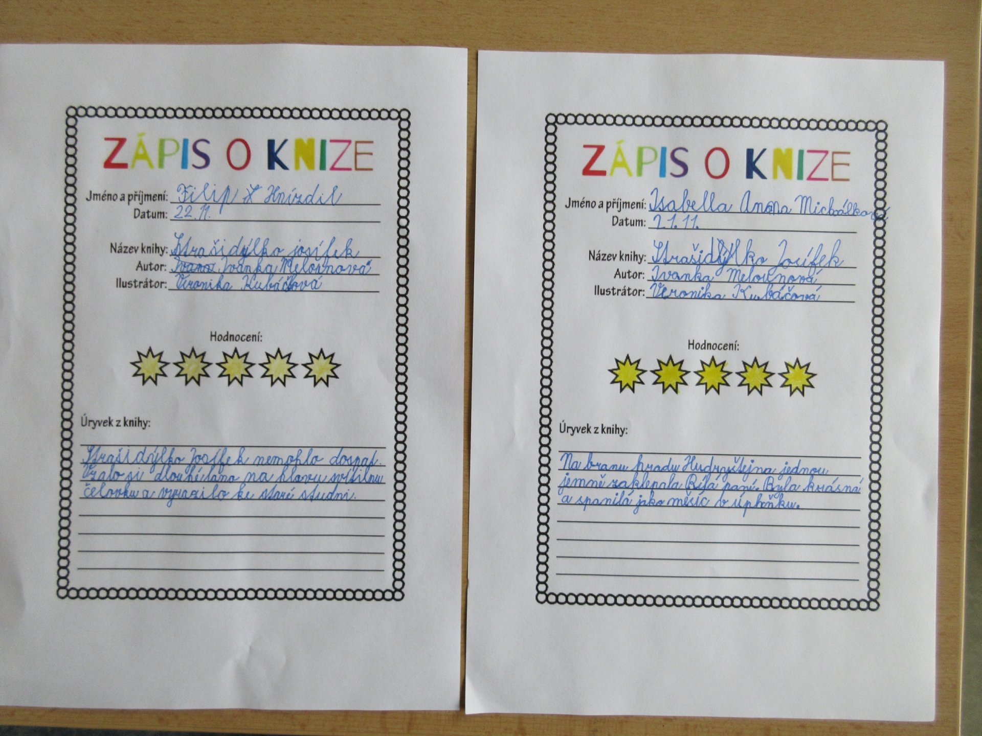 Ve čtenářské dílně jsme si po přečtení celé knihy povyprávěli o tom, co se nám líbilo, jaké poučení jsme si z četby vzali a pak ve dvojicích děti nakreslily obrázek k příběhu, který je nejvíce zaujal. Závěrem každý sám vyplnil zprávu o knize a zapsal úryvek, který jej nejvíce oslovil.