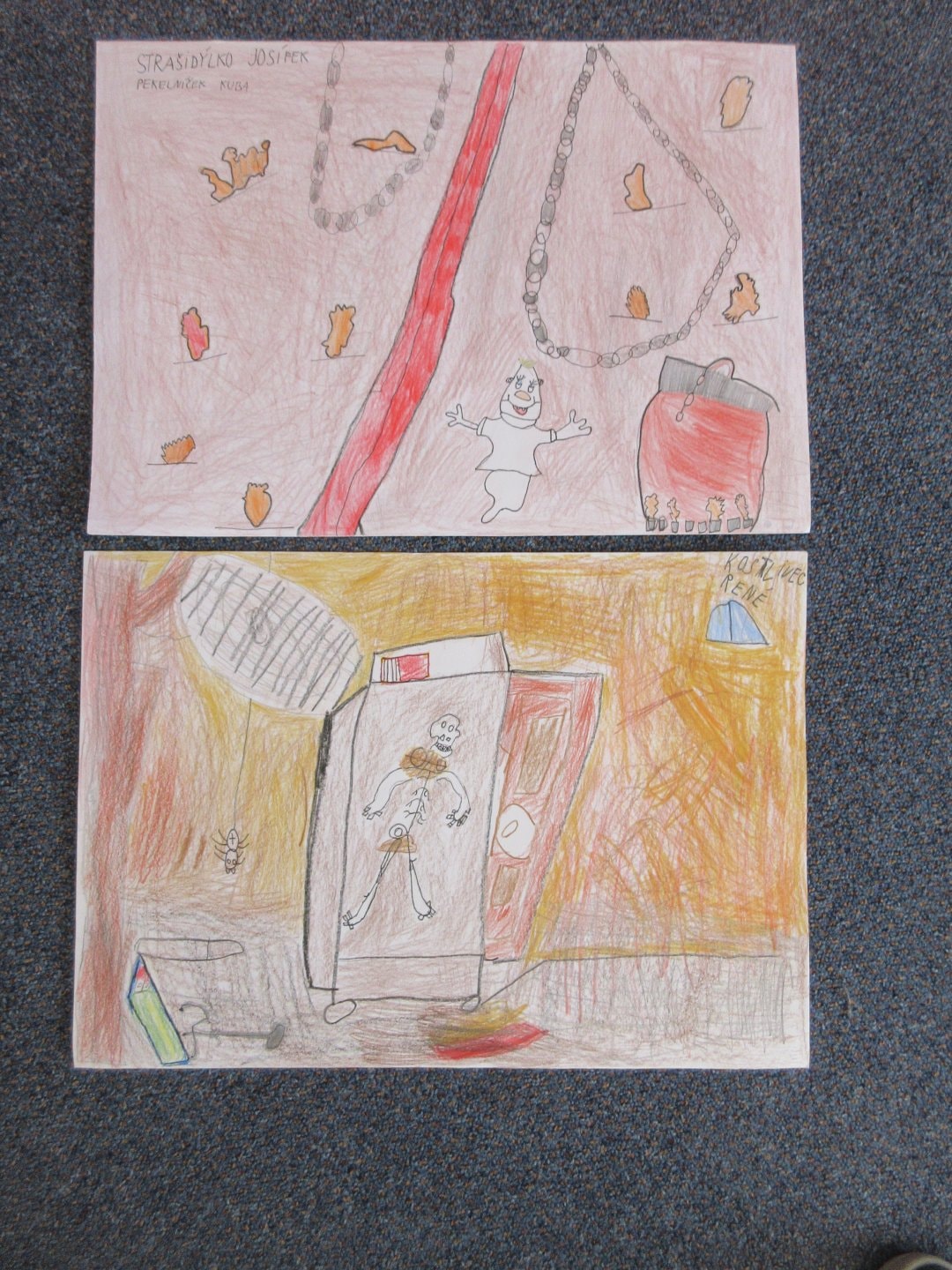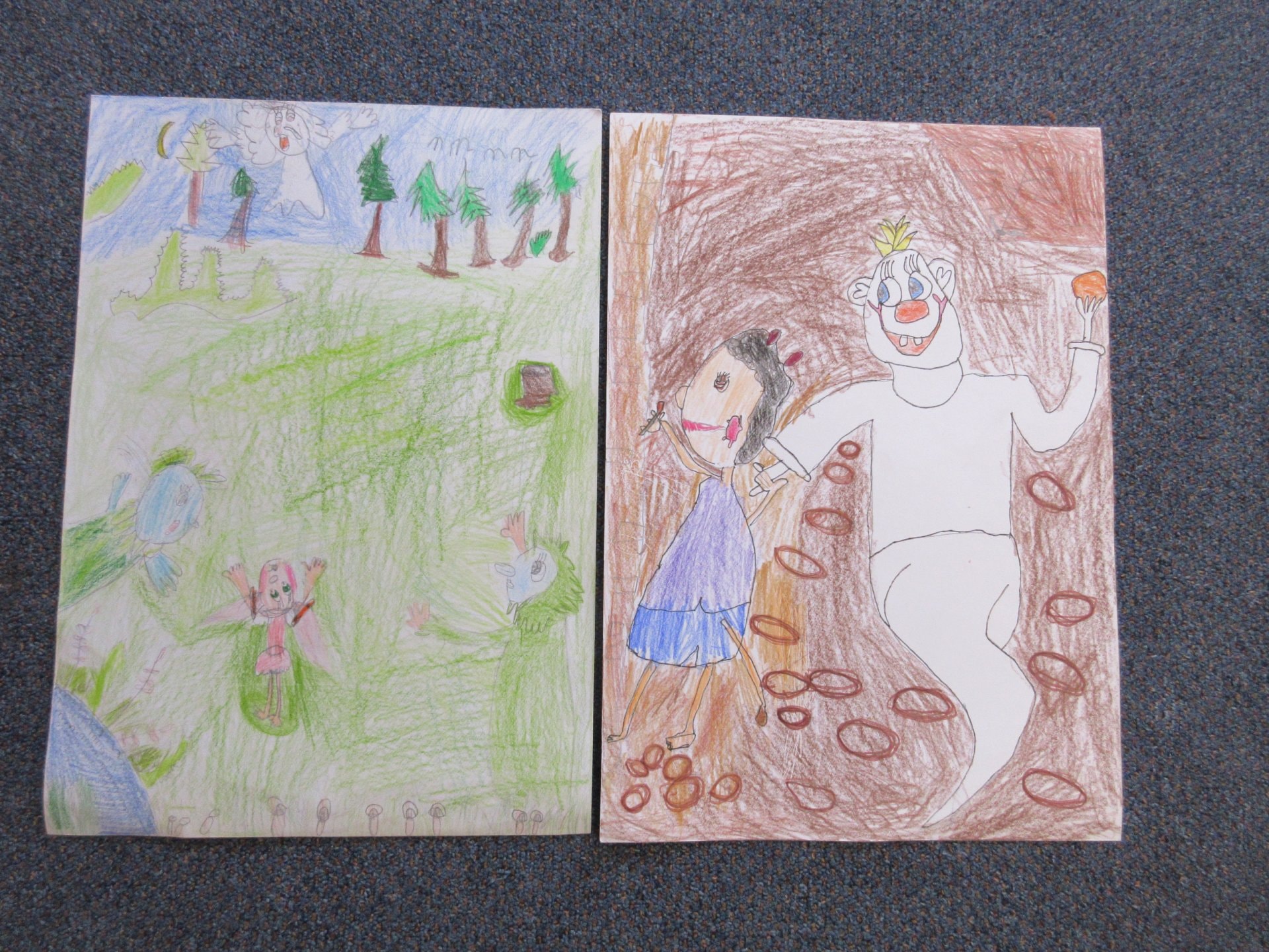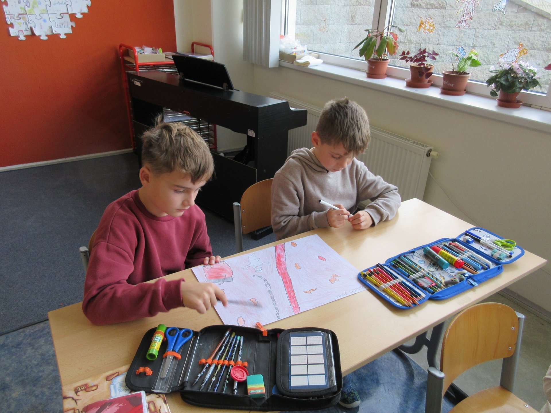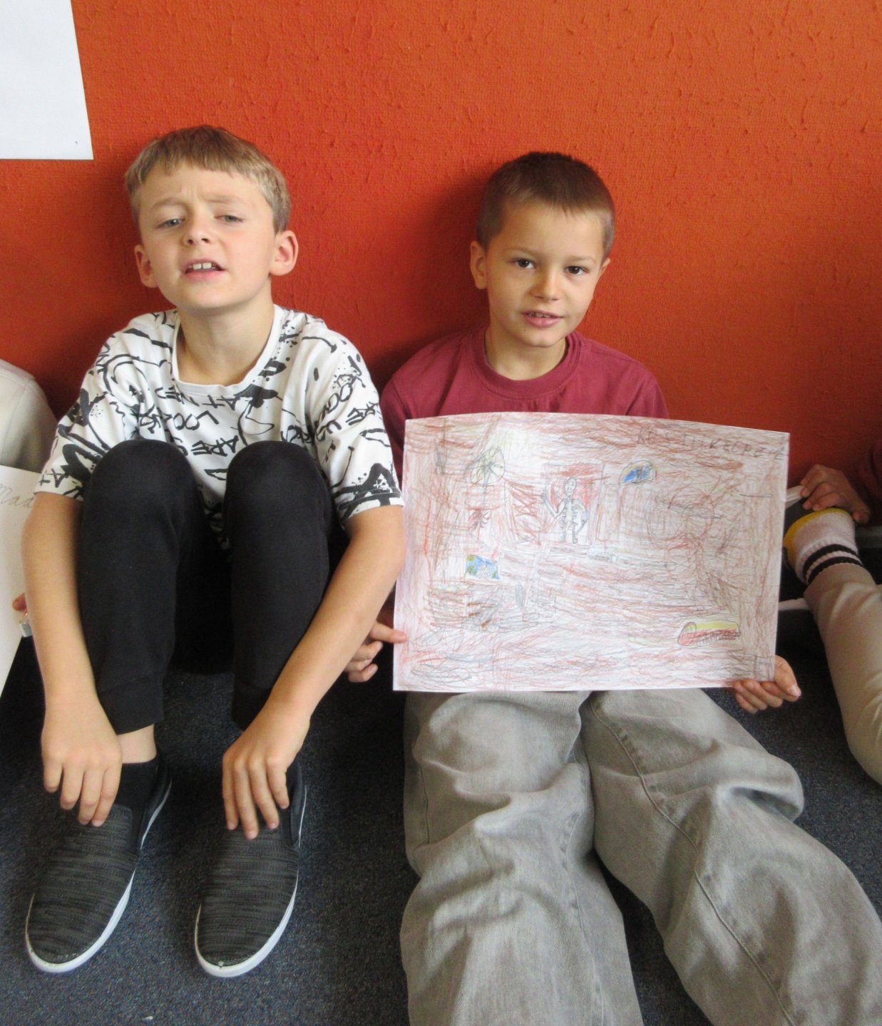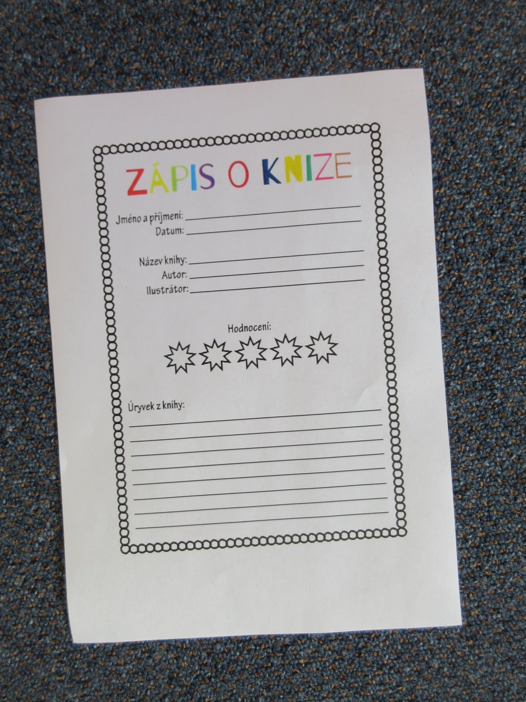Ve čtenářské dílně jsme si po přečtení celé knihy povyprávěli o tom, co se nám líbilo, jaké poučení jsme si z četby vzali a pak ve dvojicích děti nakreslily obrázek k příběhu, který je nejvíce zaujal. Závěrem každý sám vyplnil zprávu o knize a zapsal úryvek, který jej nejvíce oslovil.