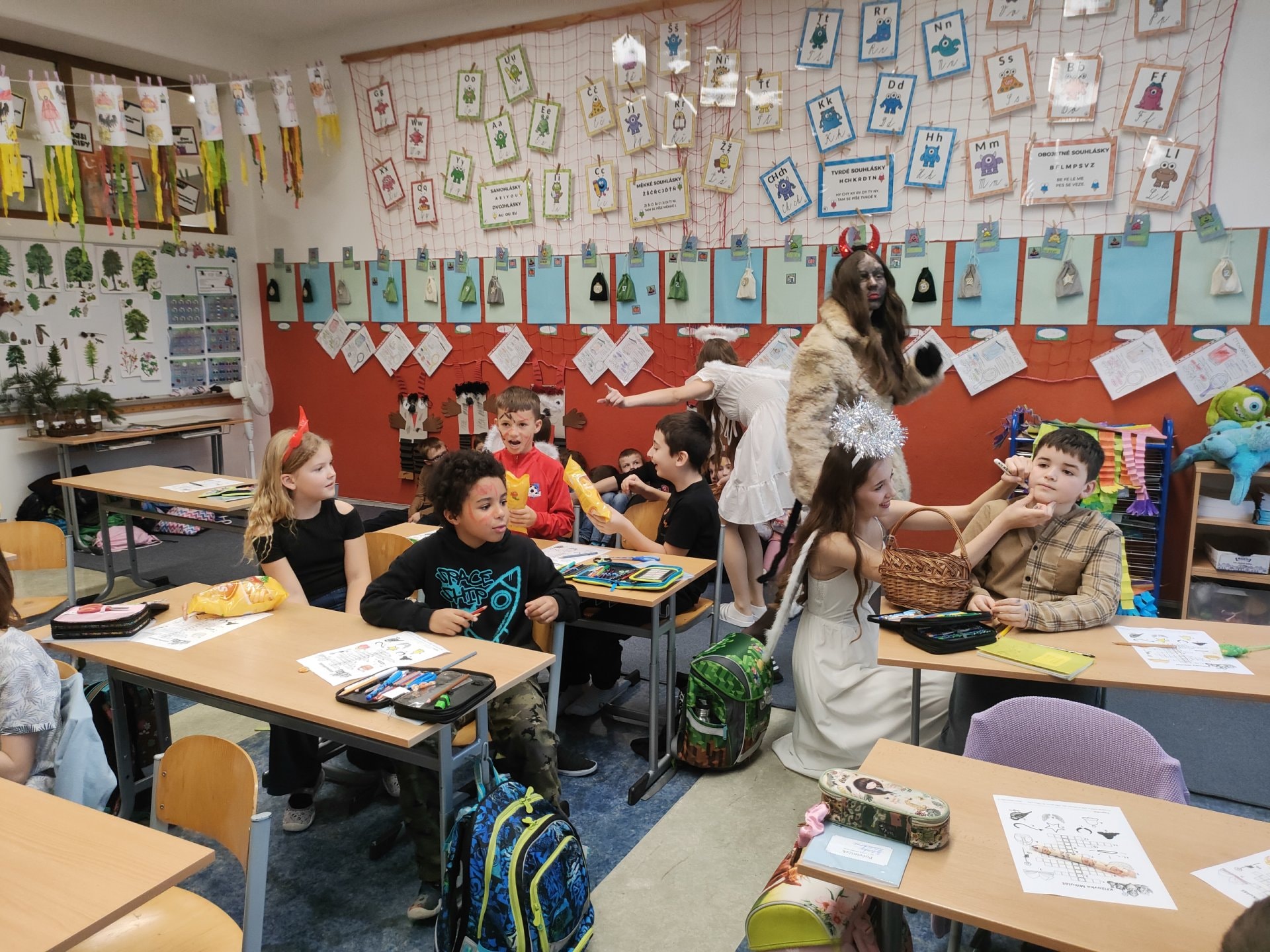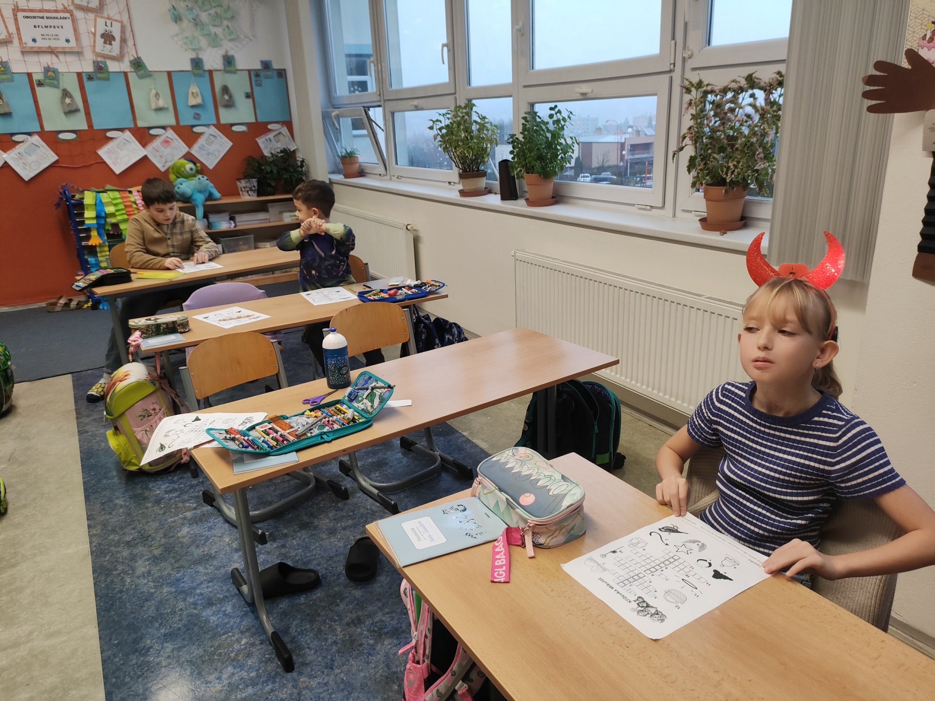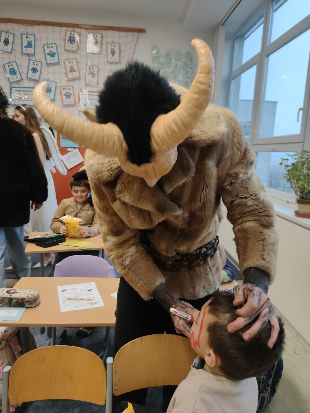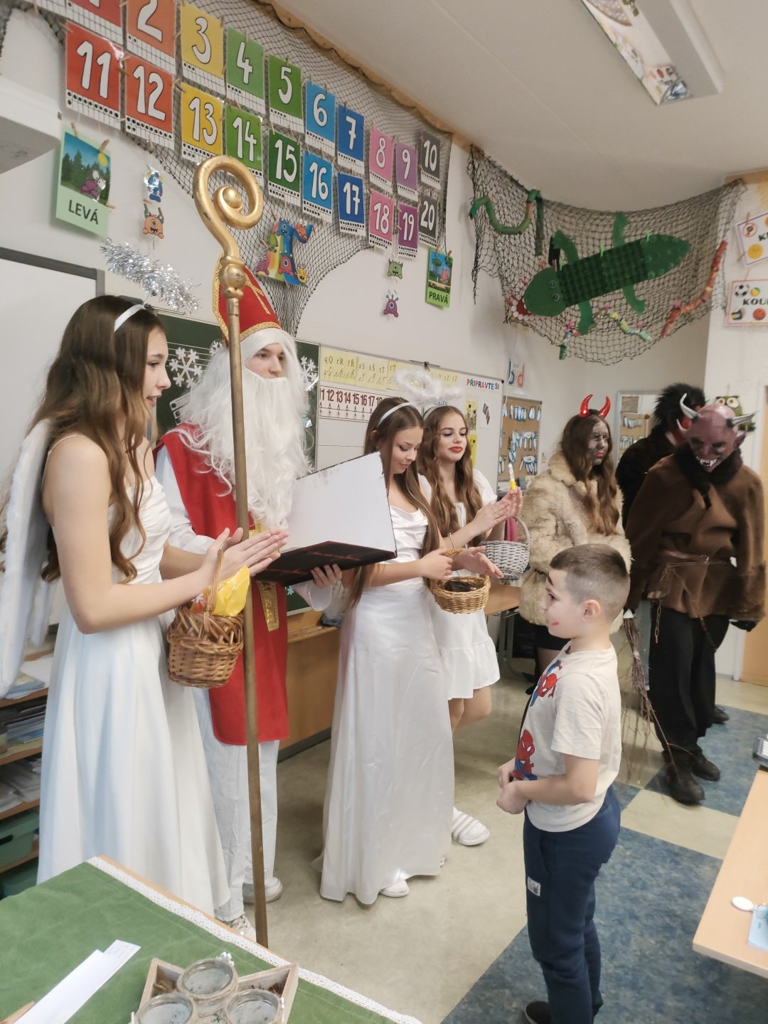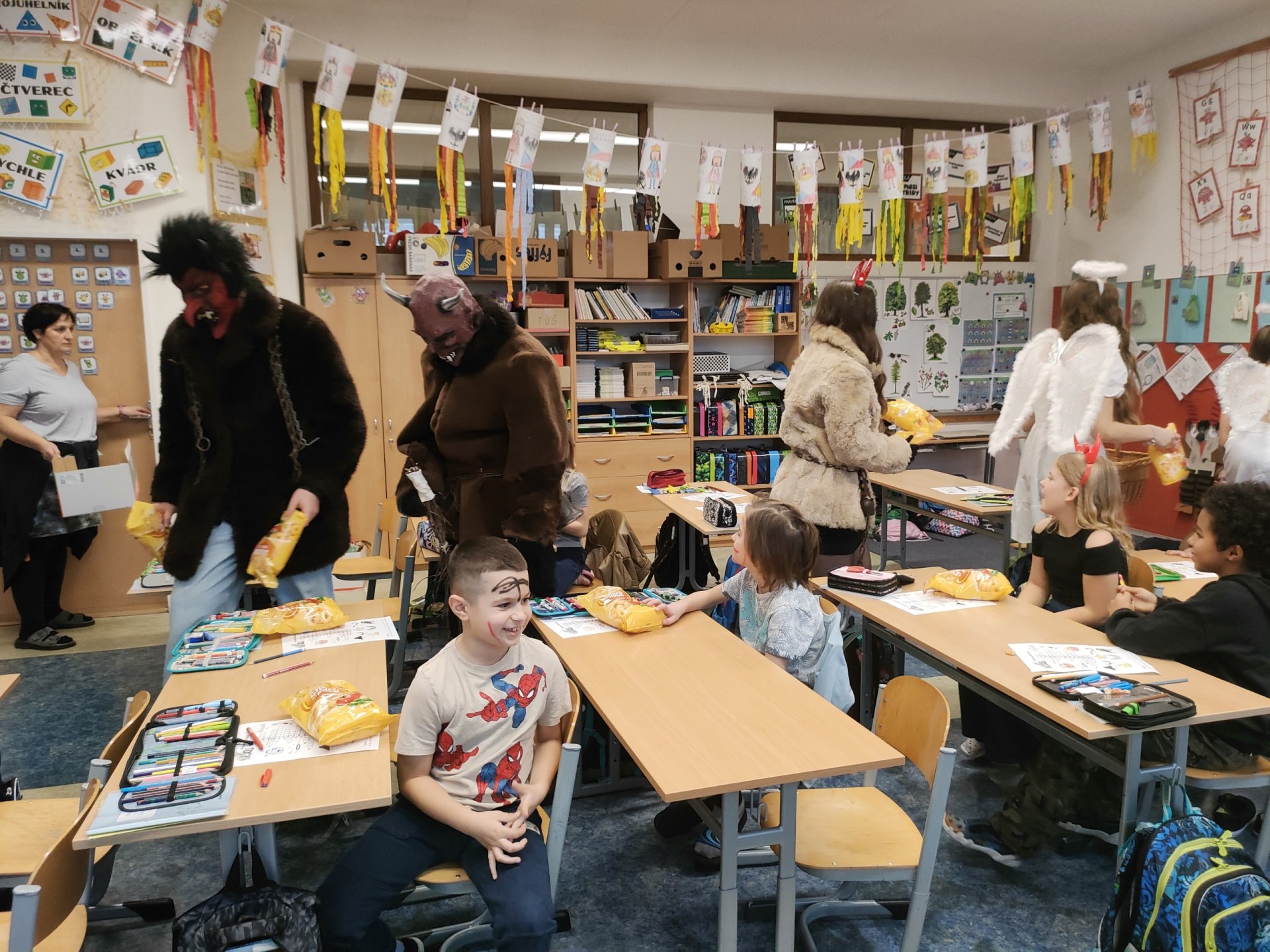Náš školní den zpestřila návštěva Mikuláše. Andělé rozdávali úsměvy, čerti trochu postrašili, ale nakonec nechyběla nadílka.