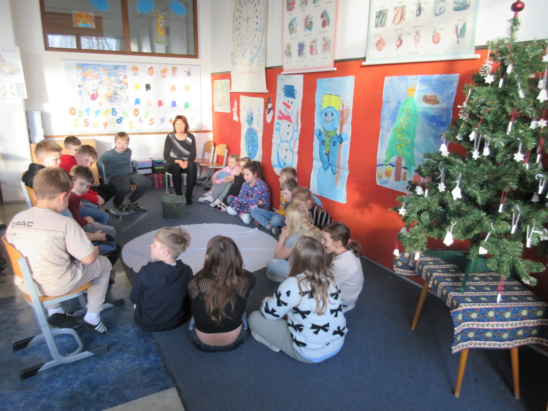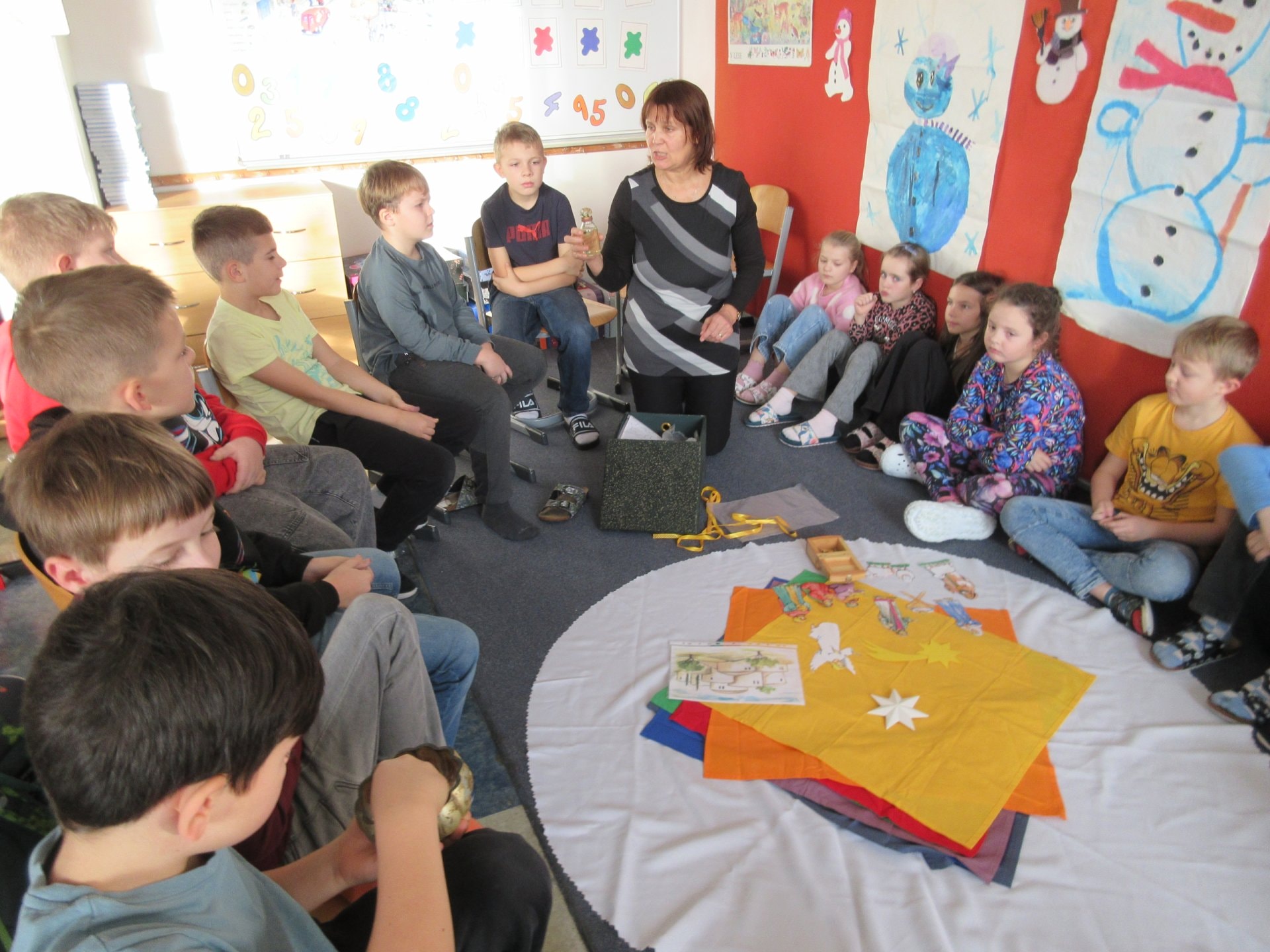 V pátek 12. prosince přišla za námi paní učitelka Jitka Rosová, která nám velmi pěkně převyprávěla vánoční příběh Hvězda nad Betlémem.