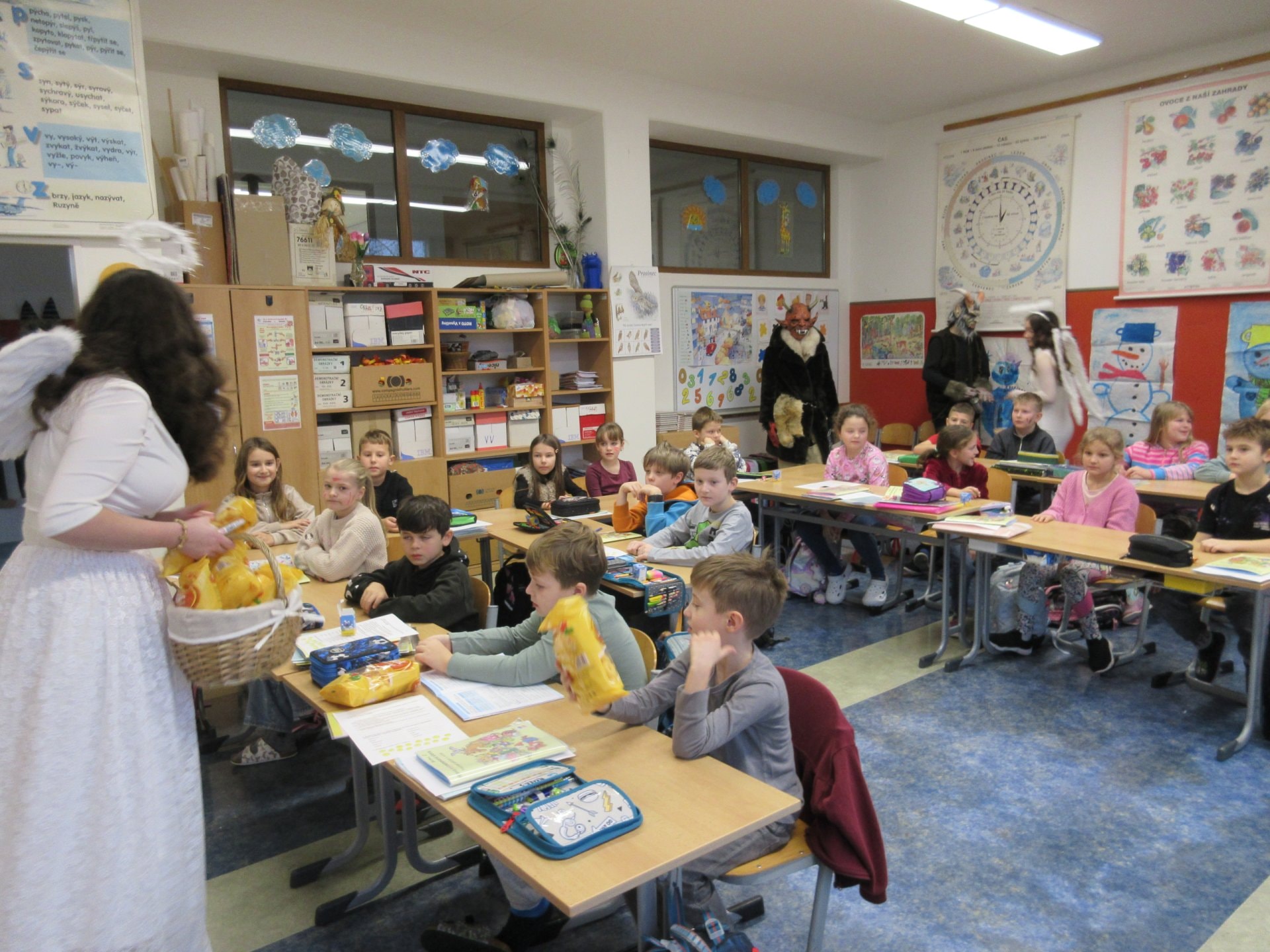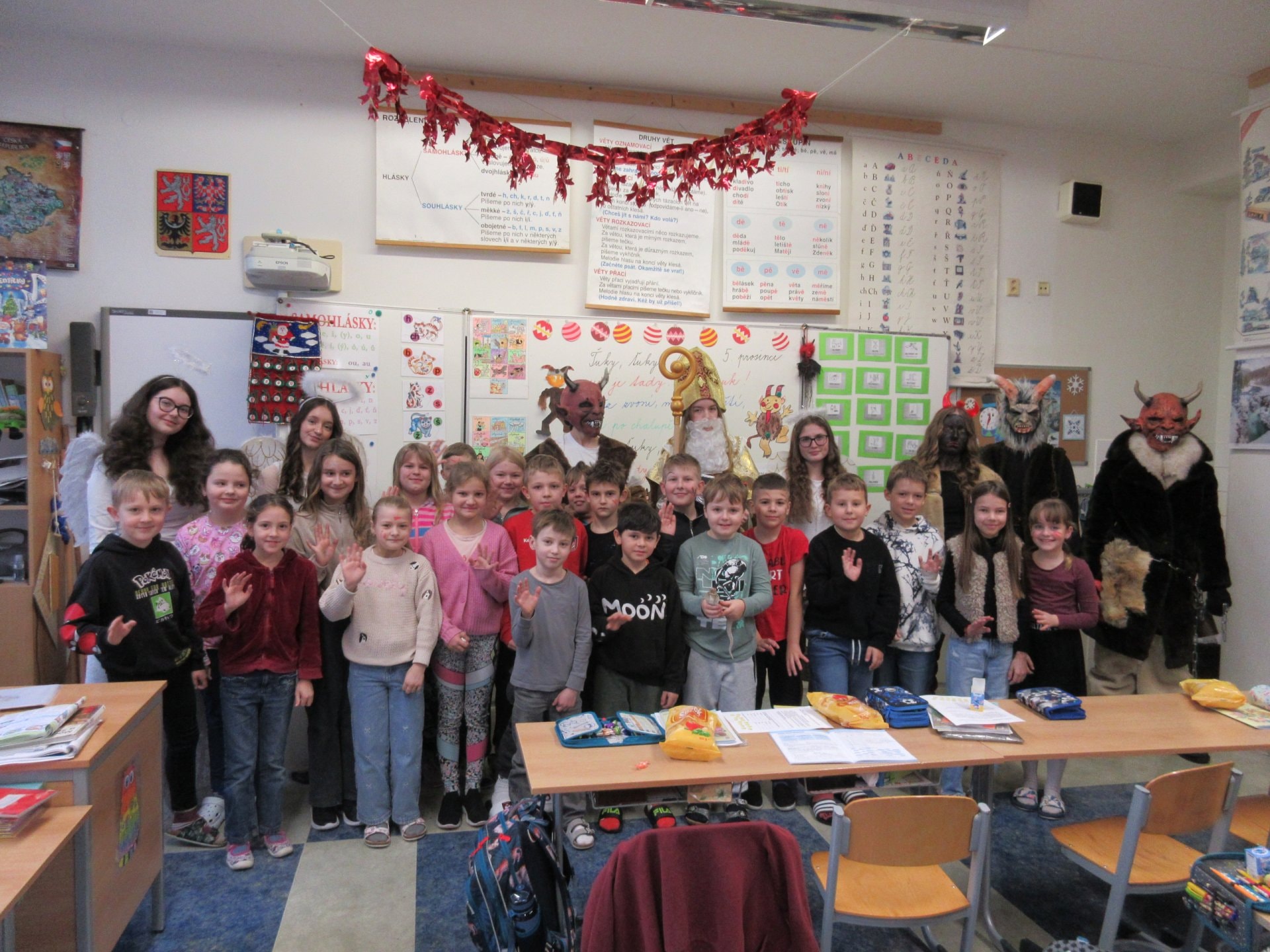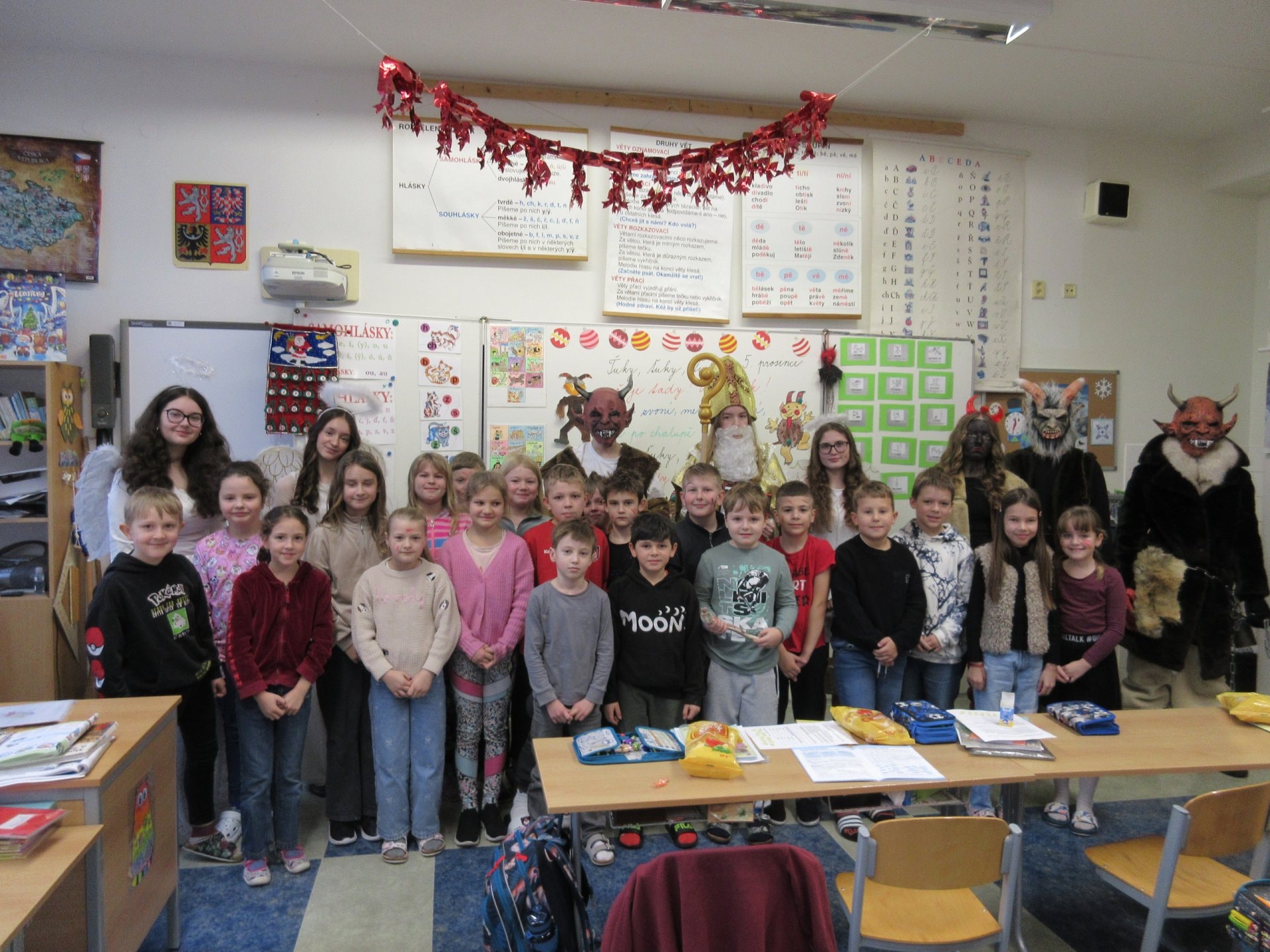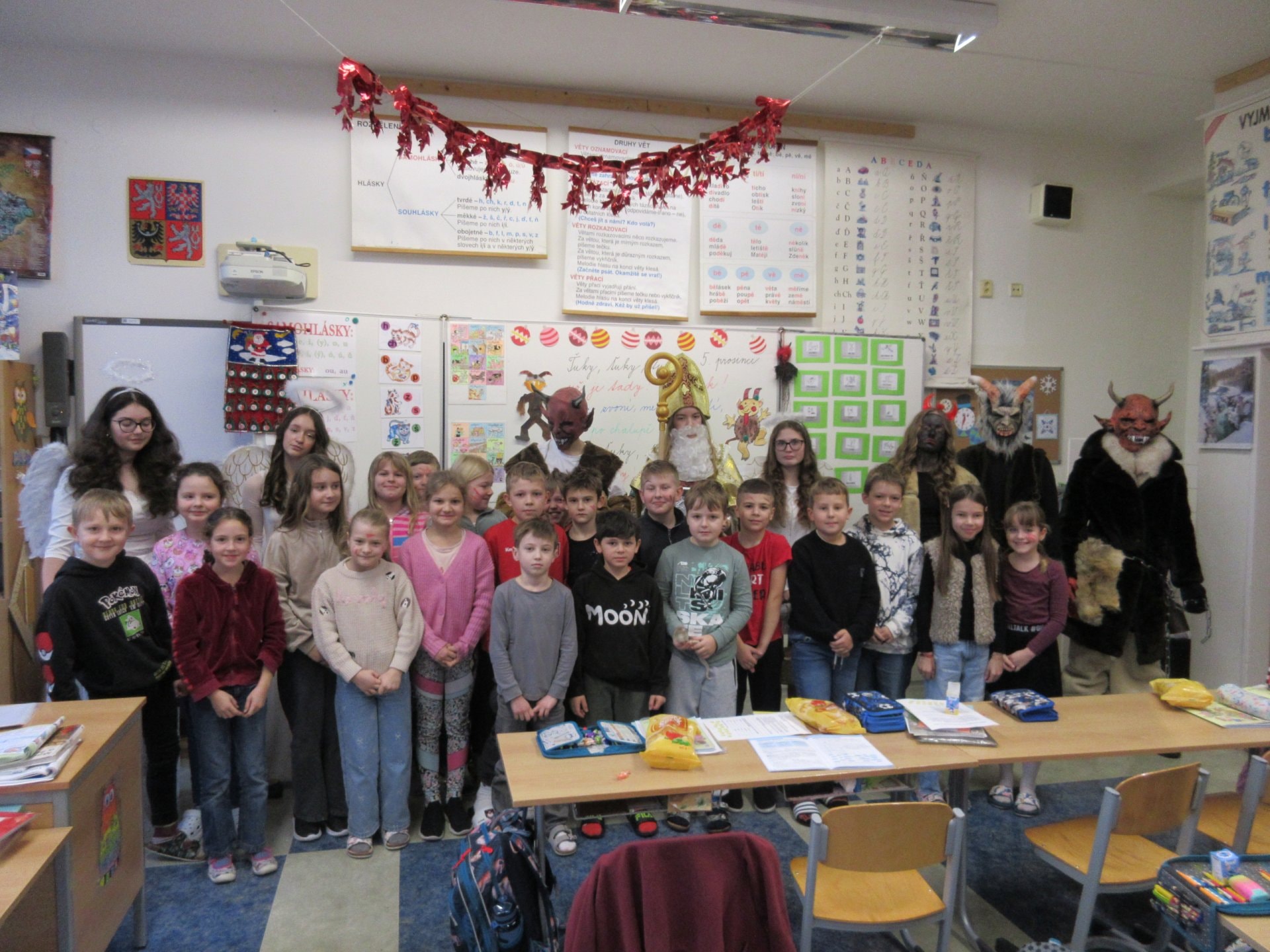 I letos naši třídu navštívil Mikuláš, andělé a jeho početná družina čertíků. Děti se společně naučily básničku nejen pro Mikuláše, ale i pro čerty. Za odvahu všechny děti dostaly sladkou odměnu.:-)