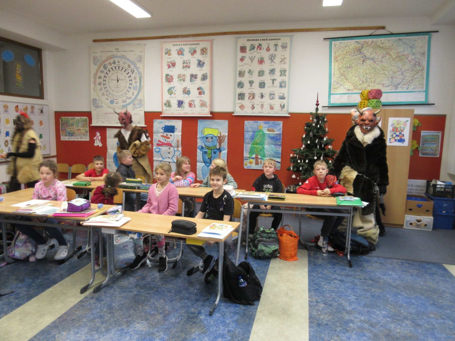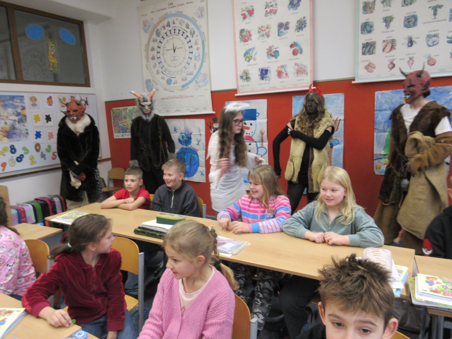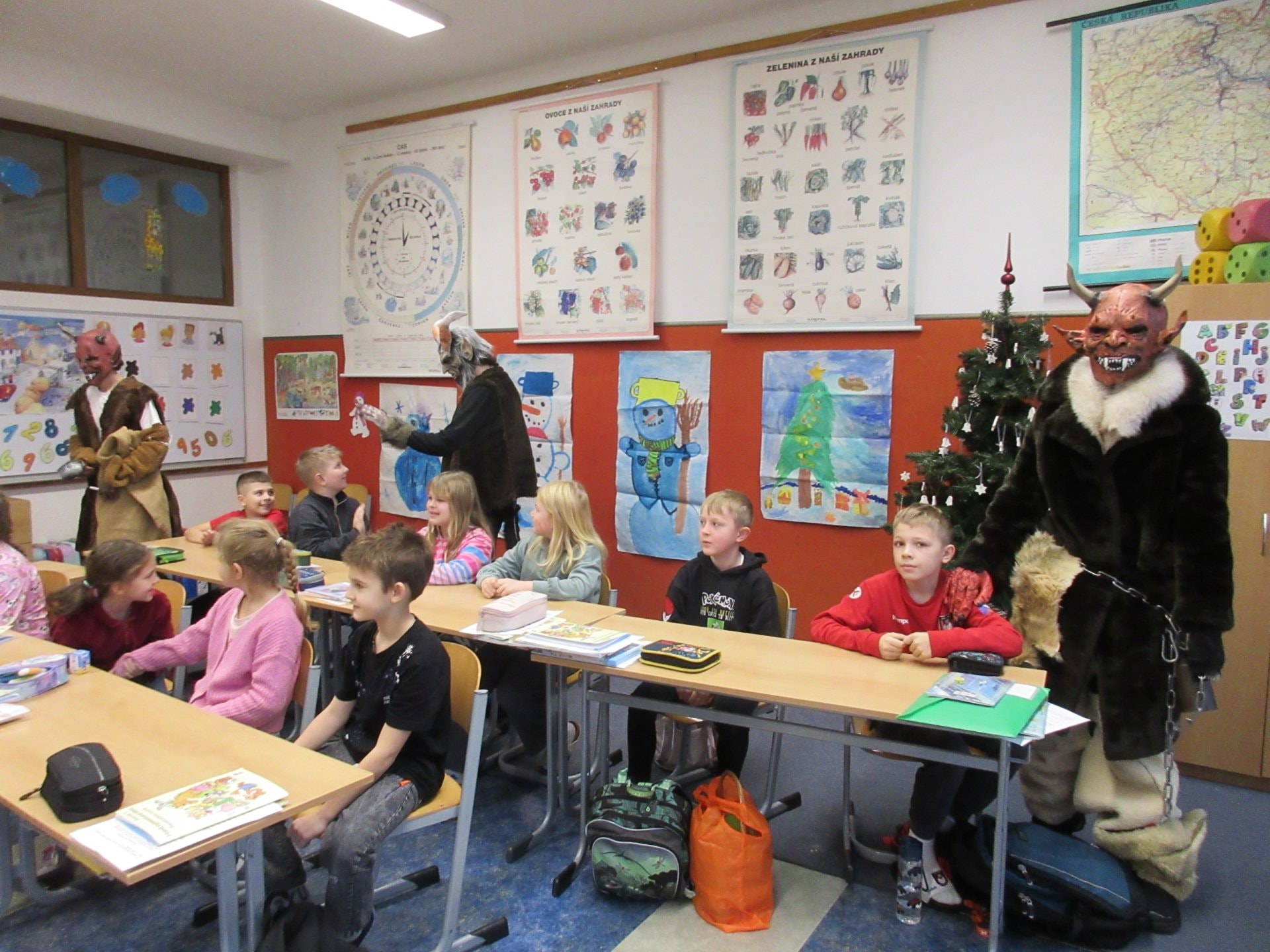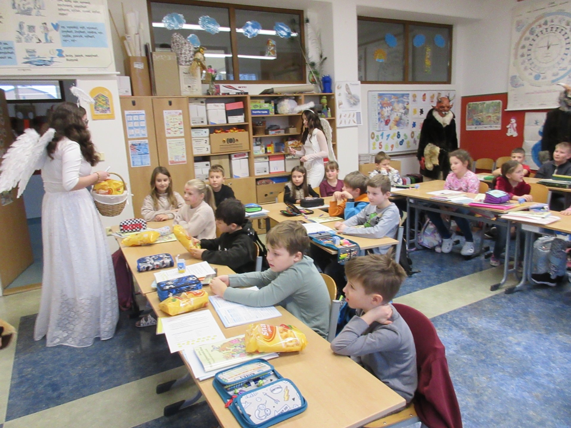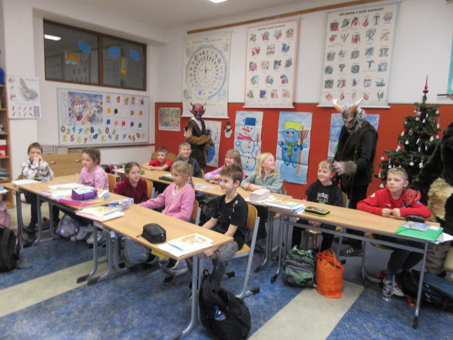 I letos naši třídu navštívil Mikuláš, andělé a jeho početná družina čertíků. Děti se společně naučily básničku nejen pro Mikuláše, ale i pro čerty. Za odvahu všechny děti dostaly sladkou odměnu.:-)