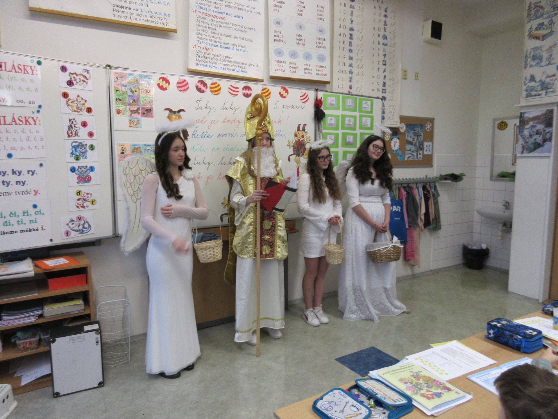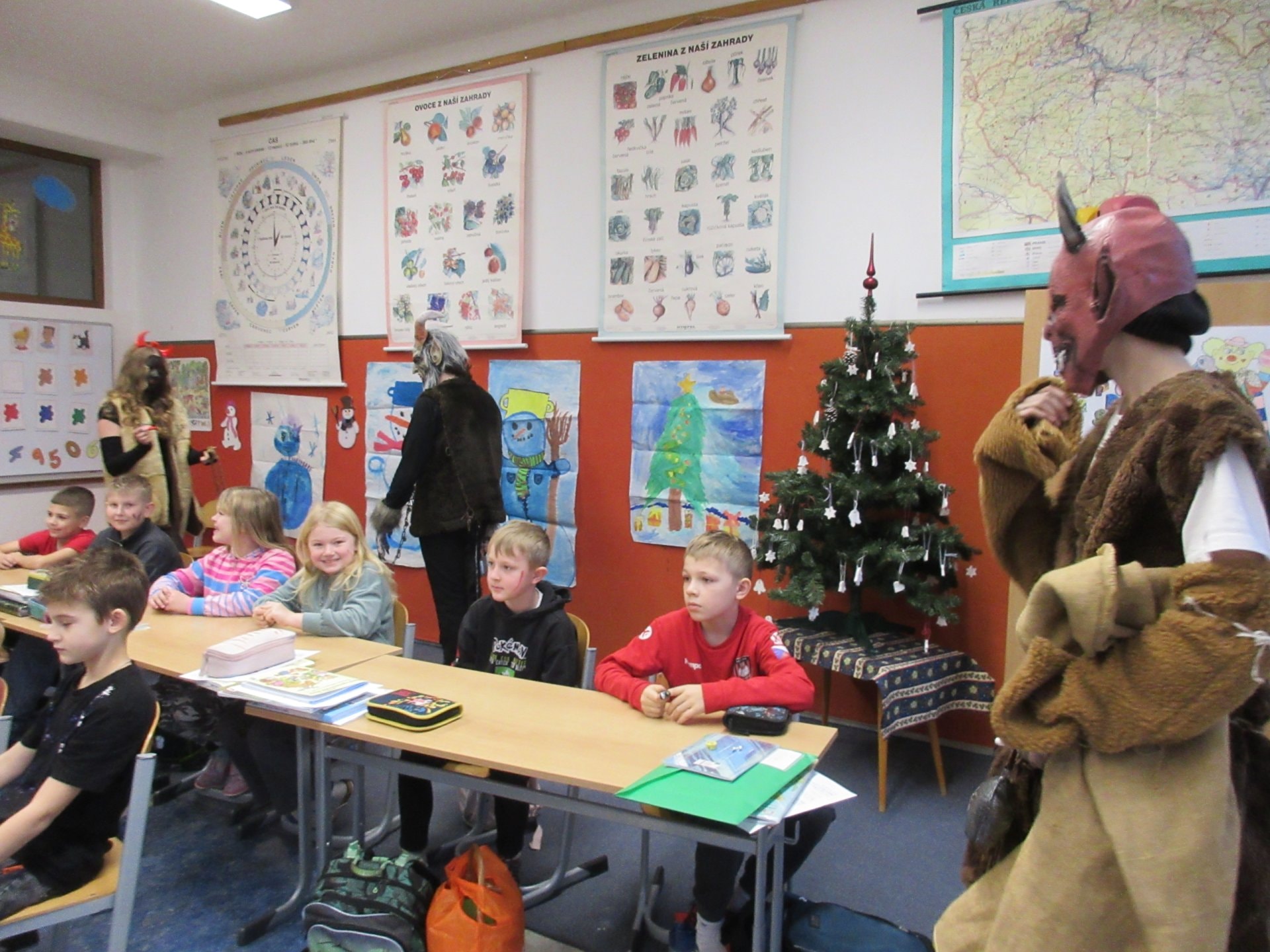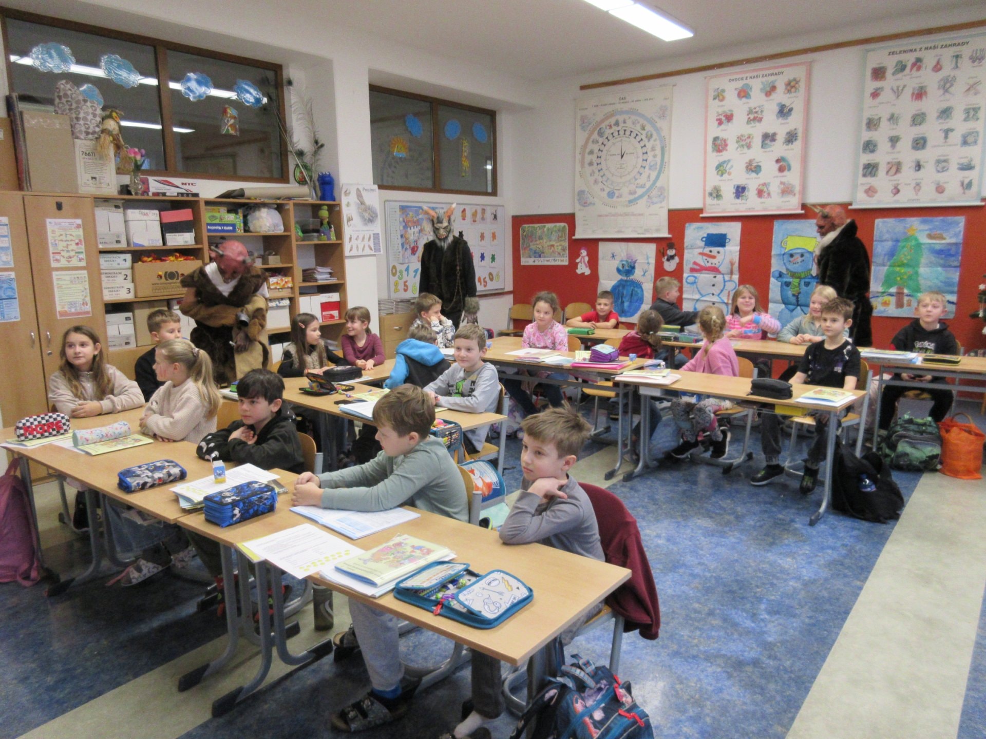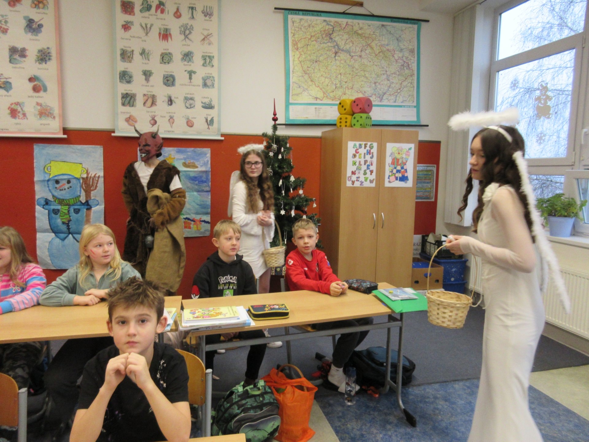 I letos naši třídu navštívil Mikuláš, andělé a jeho početná družina čertíků. Děti se společně naučily básničku nejen pro Mikuláše, ale i pro čerty. Za odvahu všechny děti dostaly sladkou odměnu.:-)