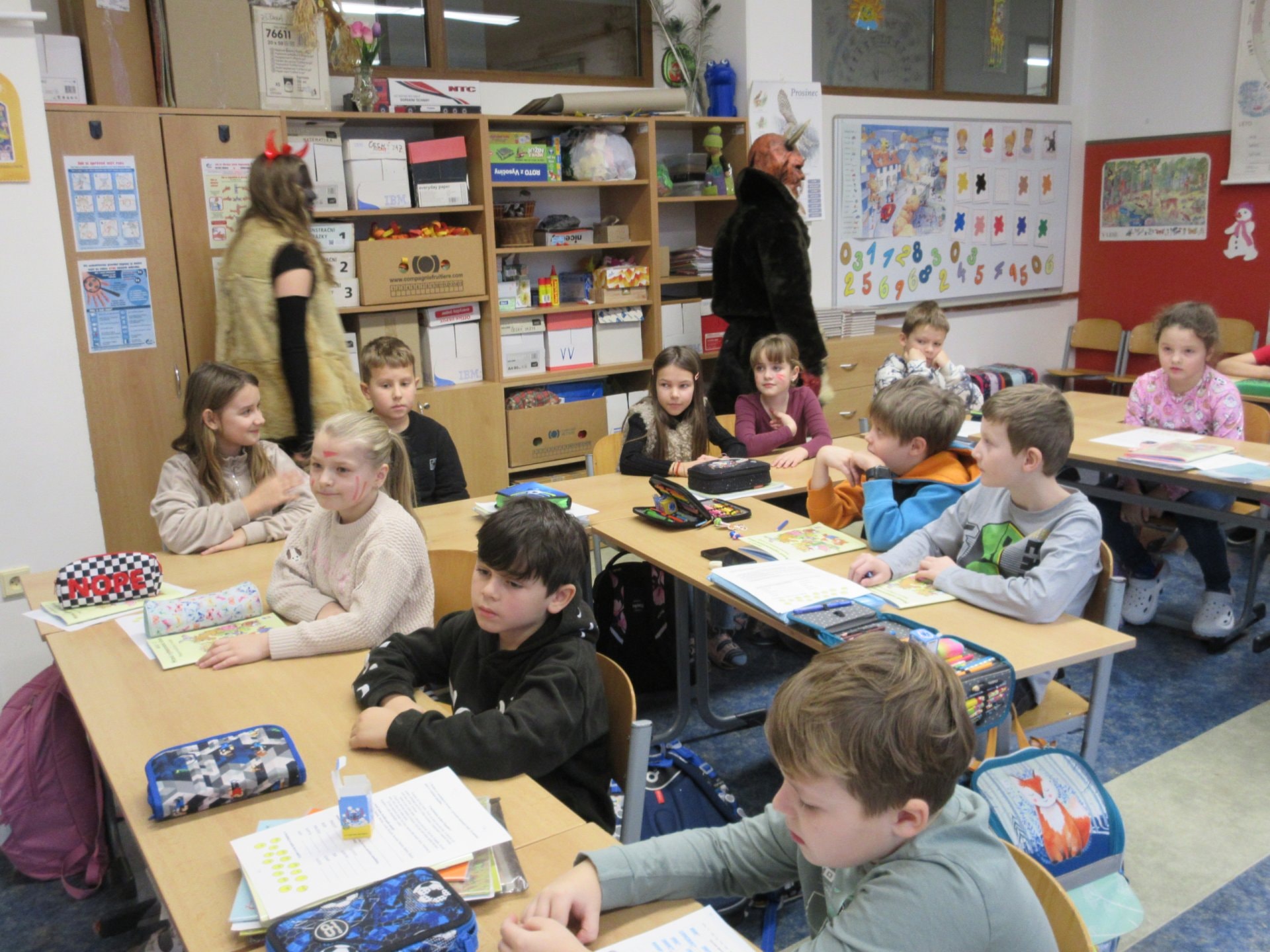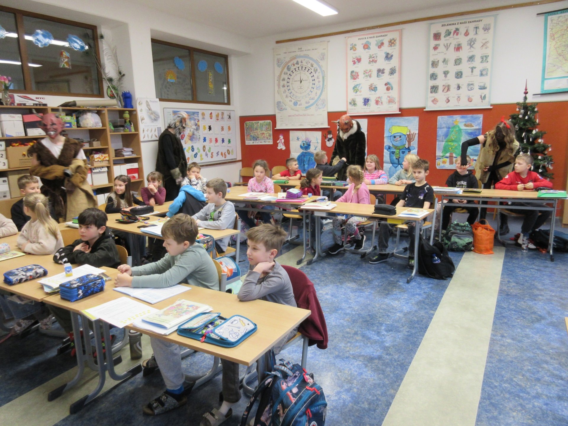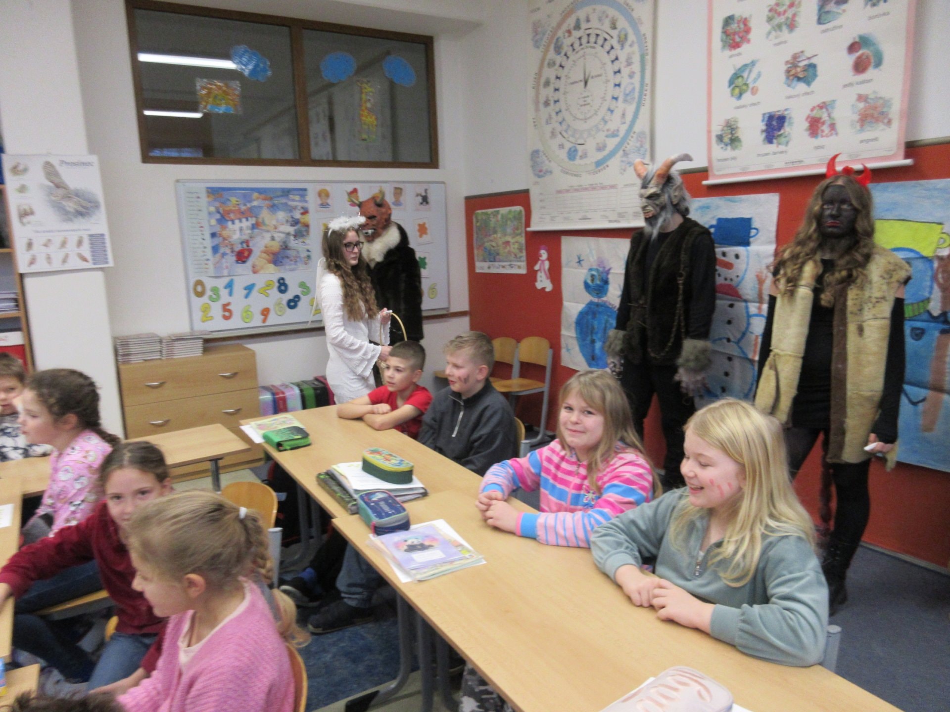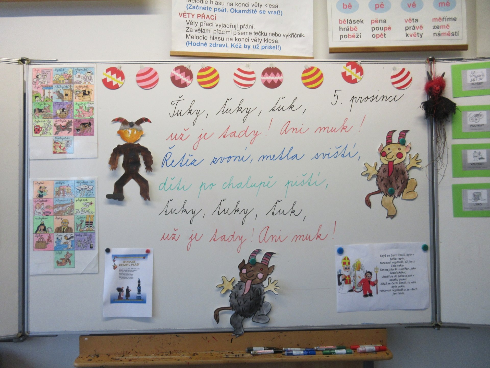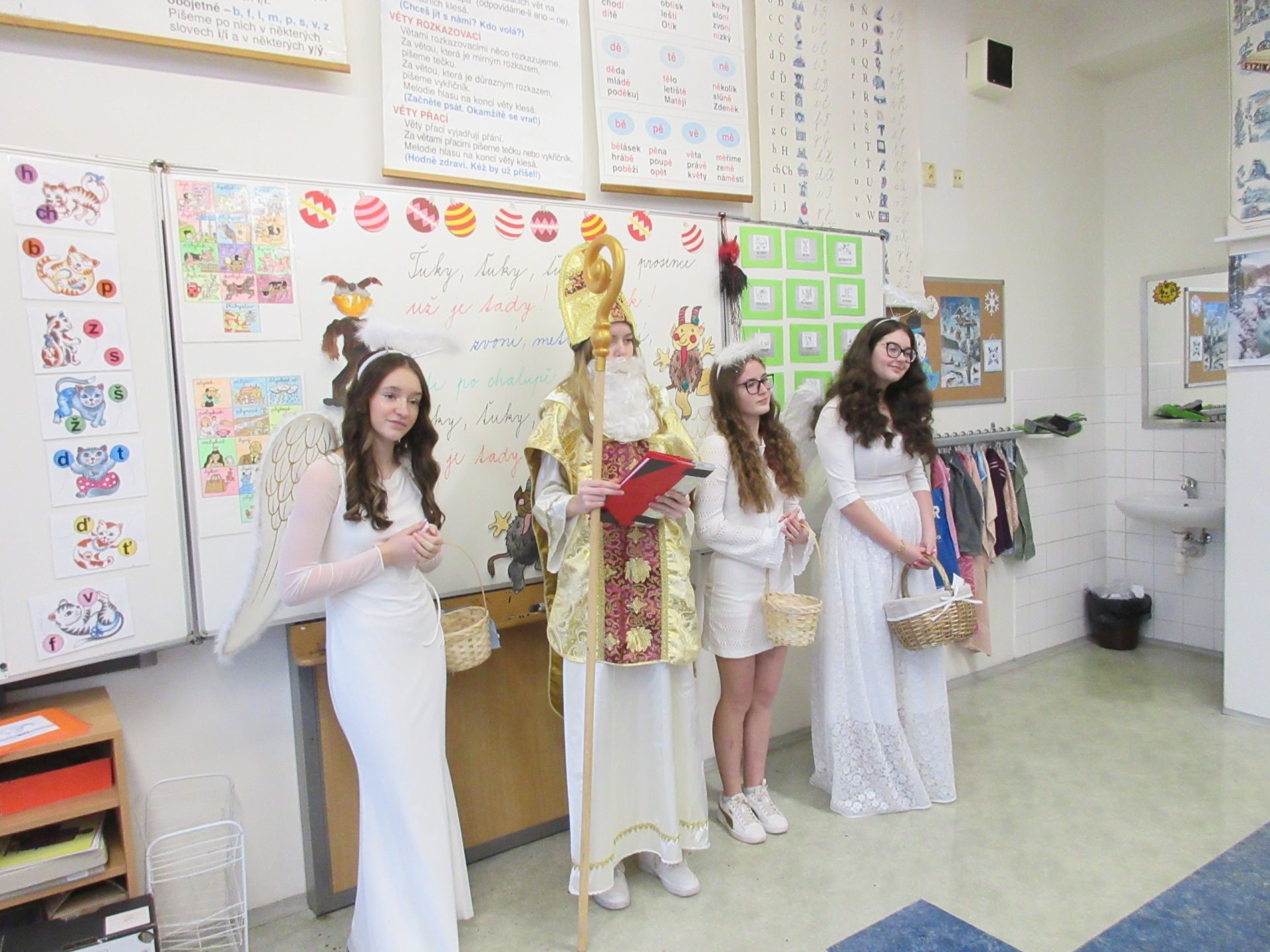 I letos naši třídu navštívil Mikuláš, andělé a jeho početná družina čertíků. Děti se společně naučily básničku nejen pro Mikuláše, ale i pro čerty. Za odvahu všechny děti dostaly sladkou odměnu.:-)