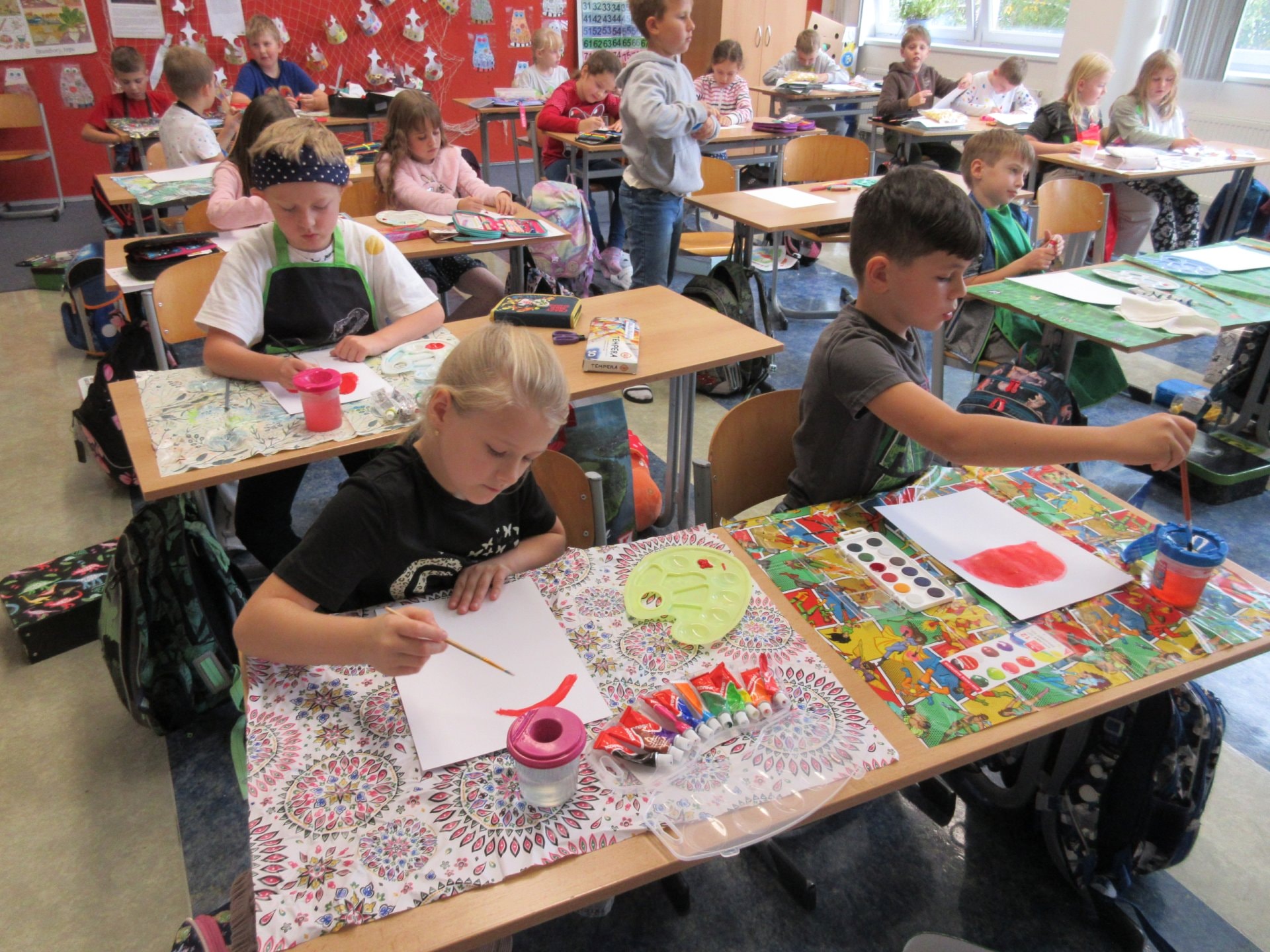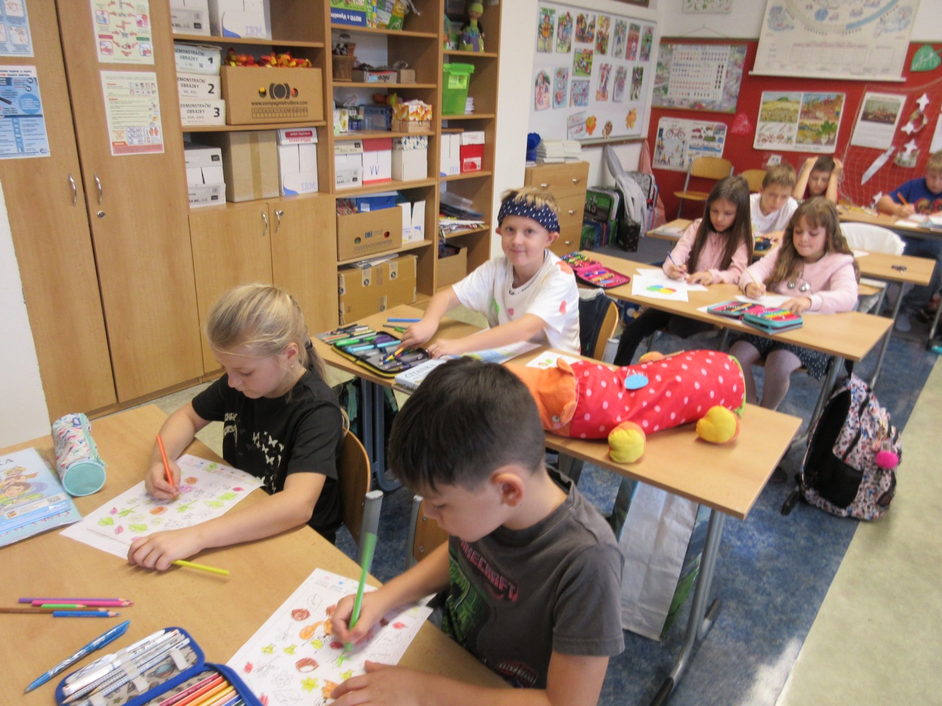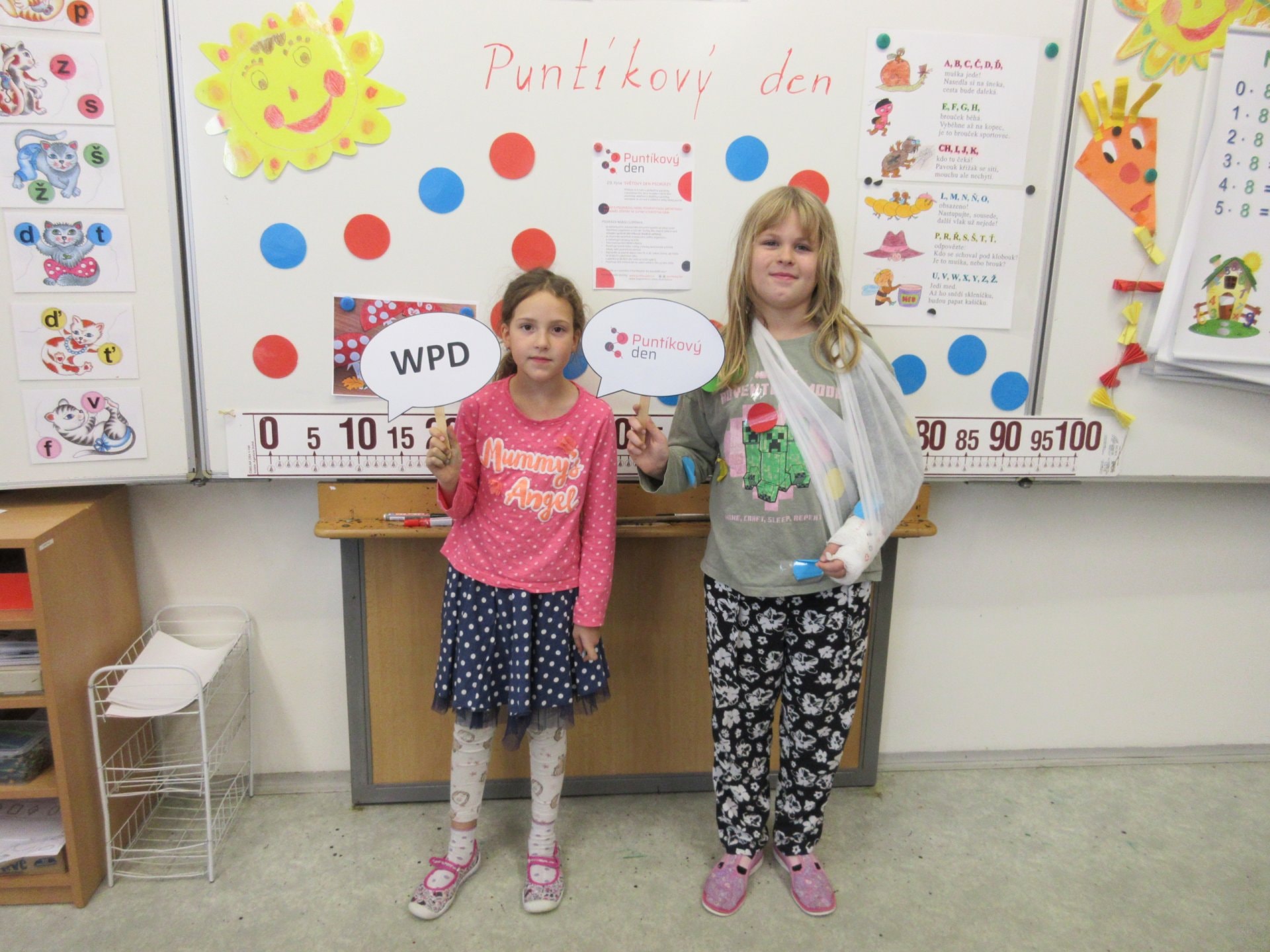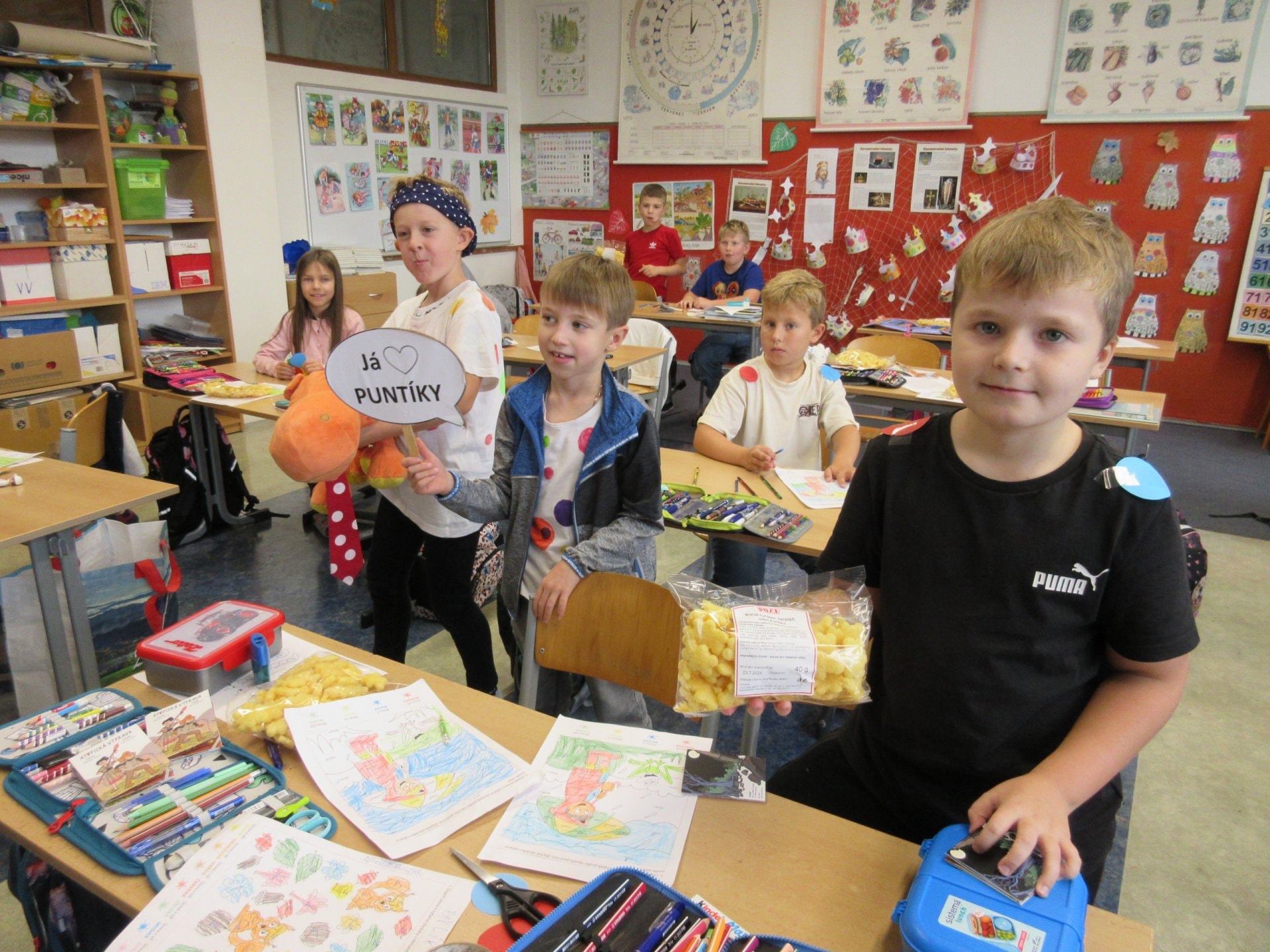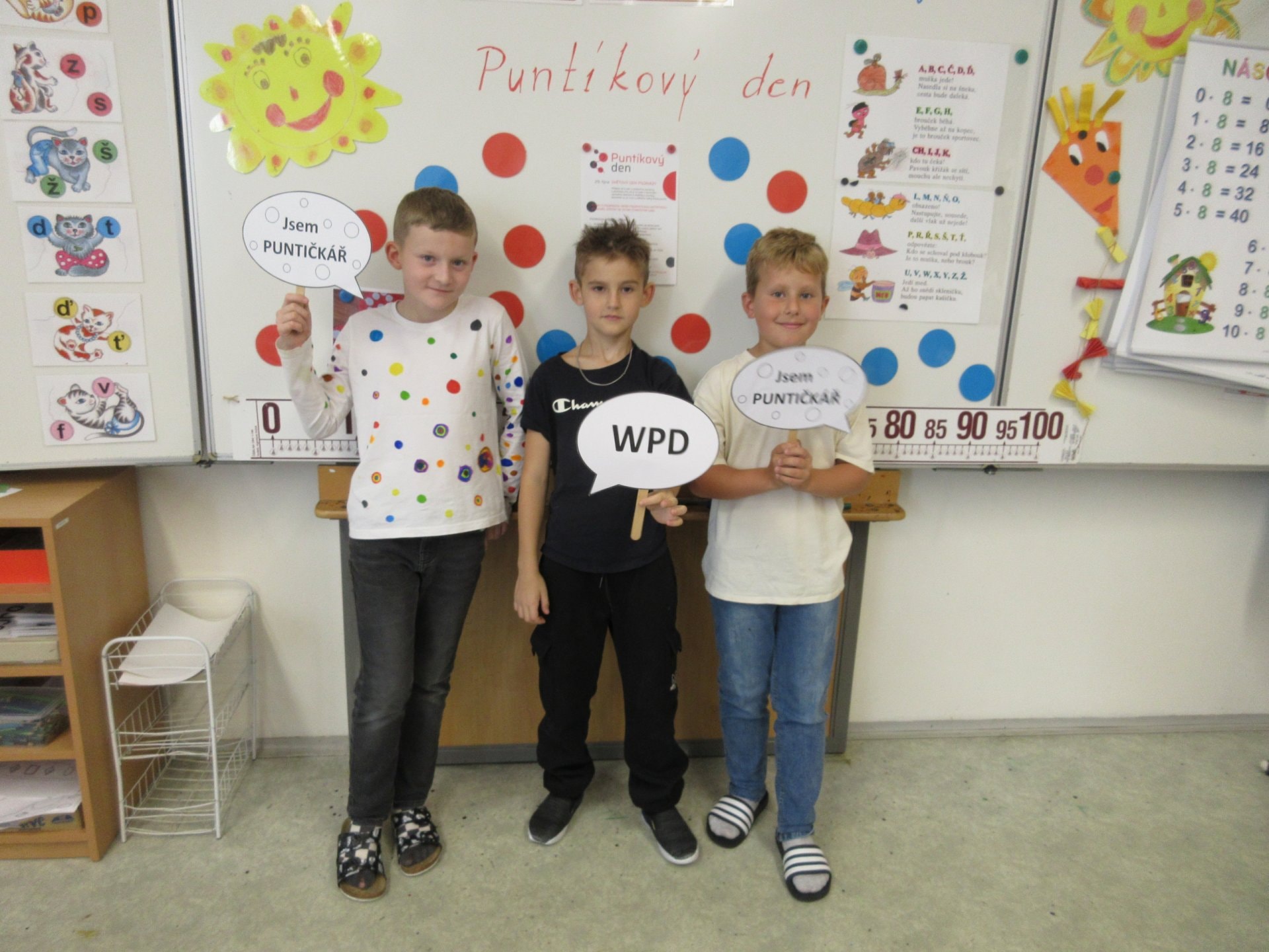 V pondělí 13. října si děti na sebe vzaly puntíkové oblečení a přinesly spoustu věcí s puntíky. Celé dopoledne jsme se v hodinách českého jazyka a matematiky učily netradičně a hledaly jsme puntíky, kde se jen dalo...Ve výtvarné výchově děti tentokrát tvořily červené muchomůrky s bílými puntíky.
