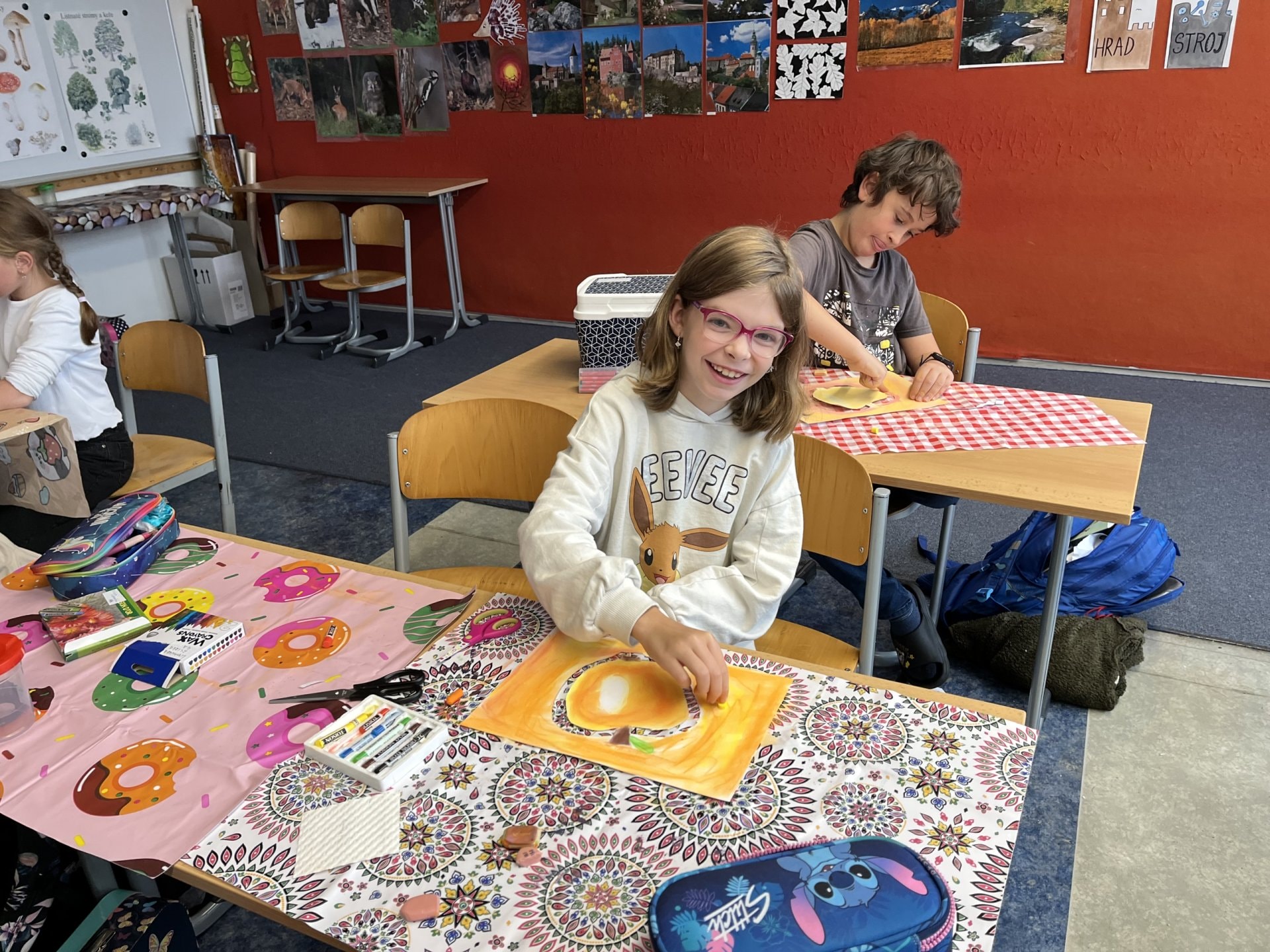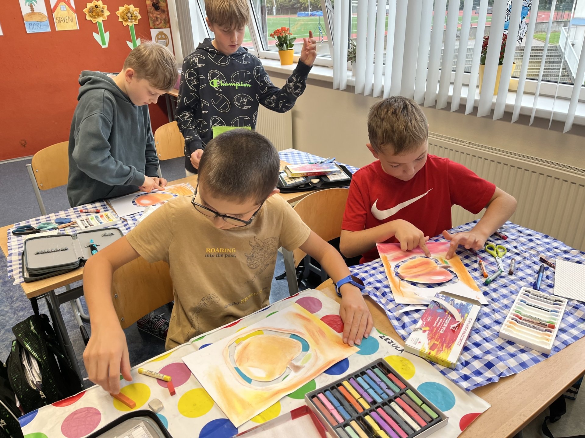 Ke zdravému životnímu stylu patří zdravá výživa. A do zdravé výživy řadíme i konzumaci ovoce. Pustili jsme se tedy ve výtvarné výchově do ztvárnění některého z nich. Na každý druh jsme použili jinou metodu. Jablka jsou tvořeny křídou, hrušky malbou a na hrozny jsme použili otisky. Teď už se jen pustit do těch pravých s vitamíny.