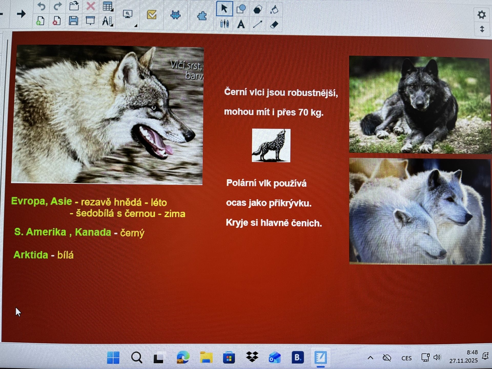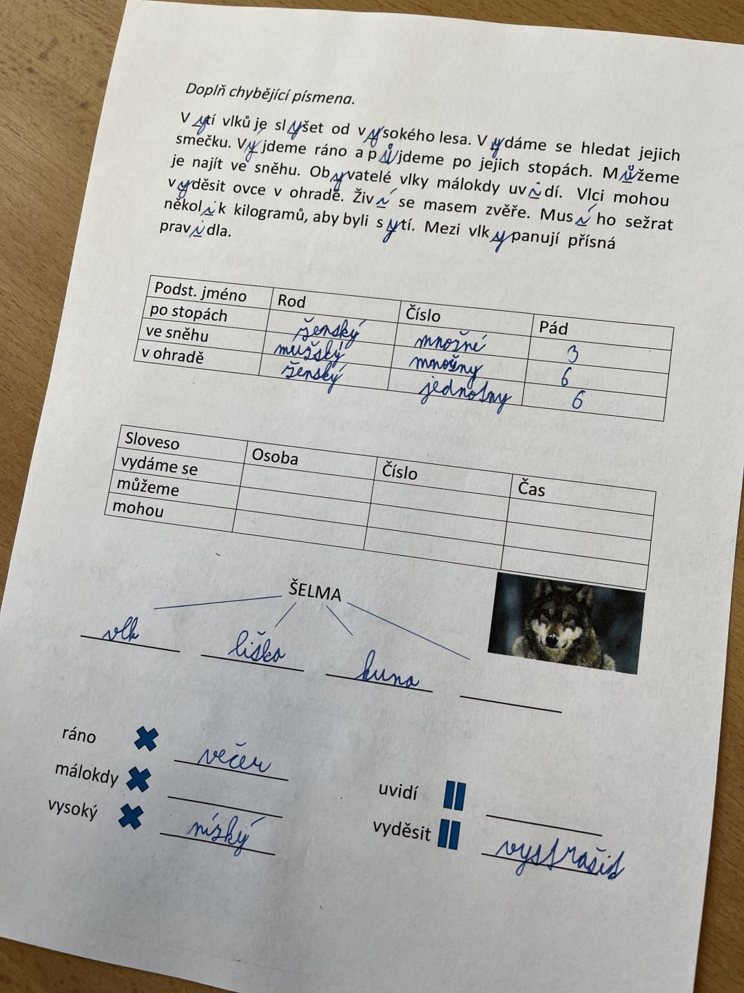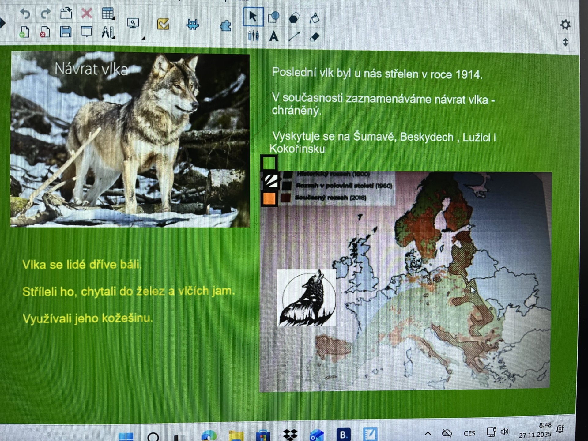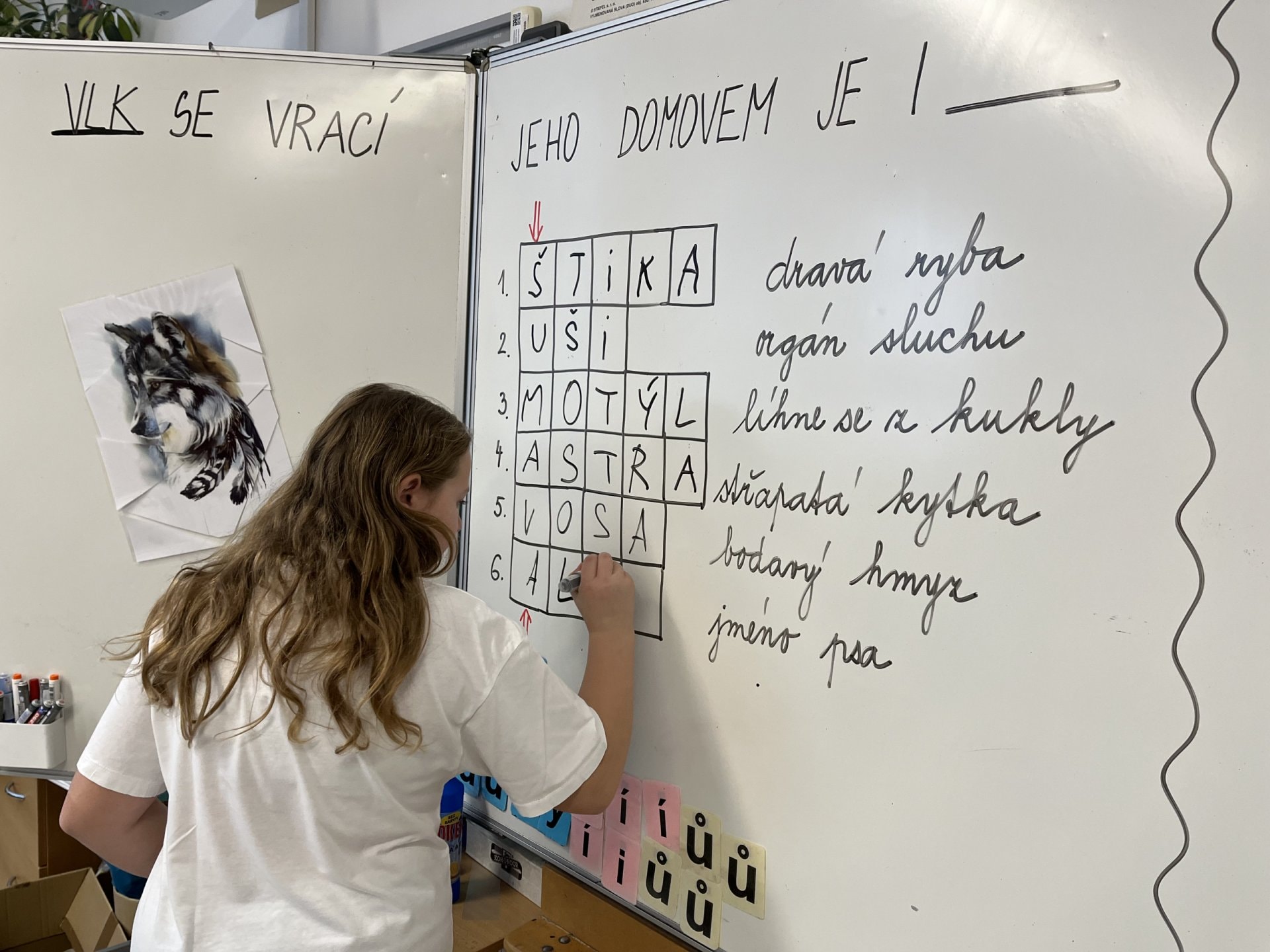 Návštěva školení na Šumavě mě přivedla k myšlence předat poznatky, které jsem získala na této zajímavé akci , dětem ve škole. Jednu ze zajímavých přednášek vedl i Phd. Jan Mokrý, který se věnuje problematice návratu vlka obecného na Šumavu i do jiných lokalit v Česku. Dětem jsem připravila nejen prezentaci, ale i další doplňkové úkoly na toto téma. Na závěr dne jsme si prošli vlčí stezku a vyrobili vlky z javorových listů.