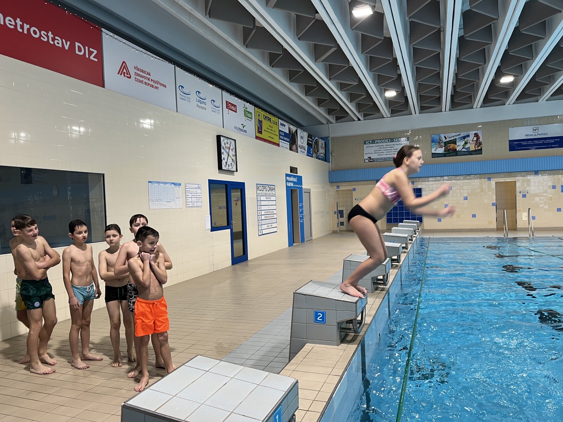Tak letos už naposledy. Jsou z nás již zdatní plaváčci. Zvládli jsme různé plavecké styly, skoky do vody, potápění a vody se vůbec nebojíme. V prosinci nás přišel navštívit do výuky i náš pan ředitel. Moc se mu s námi líbilo a také si i zaplaval. Všechny dovednosti ve vodě se nám budou hodit v praktickém životě.