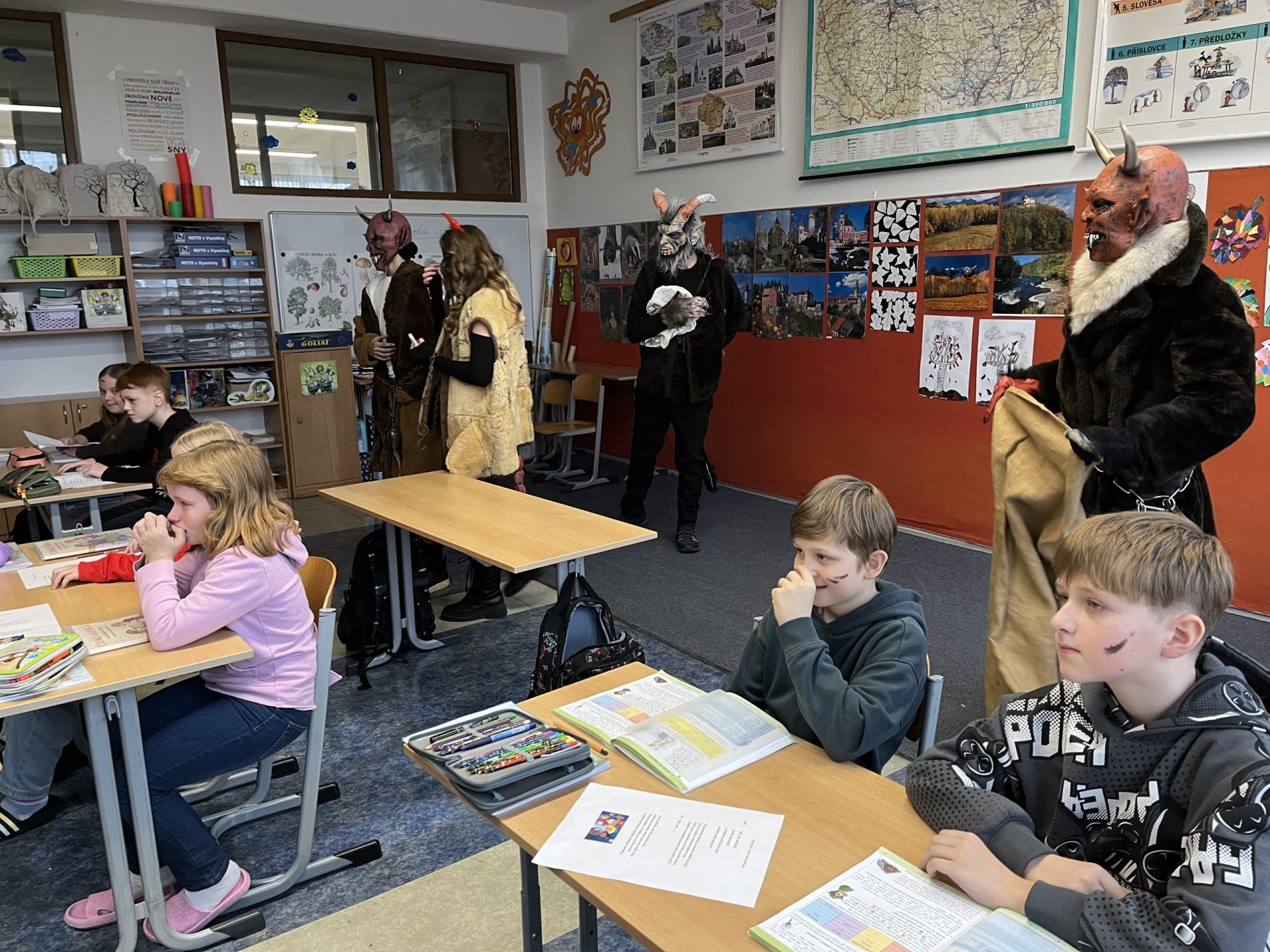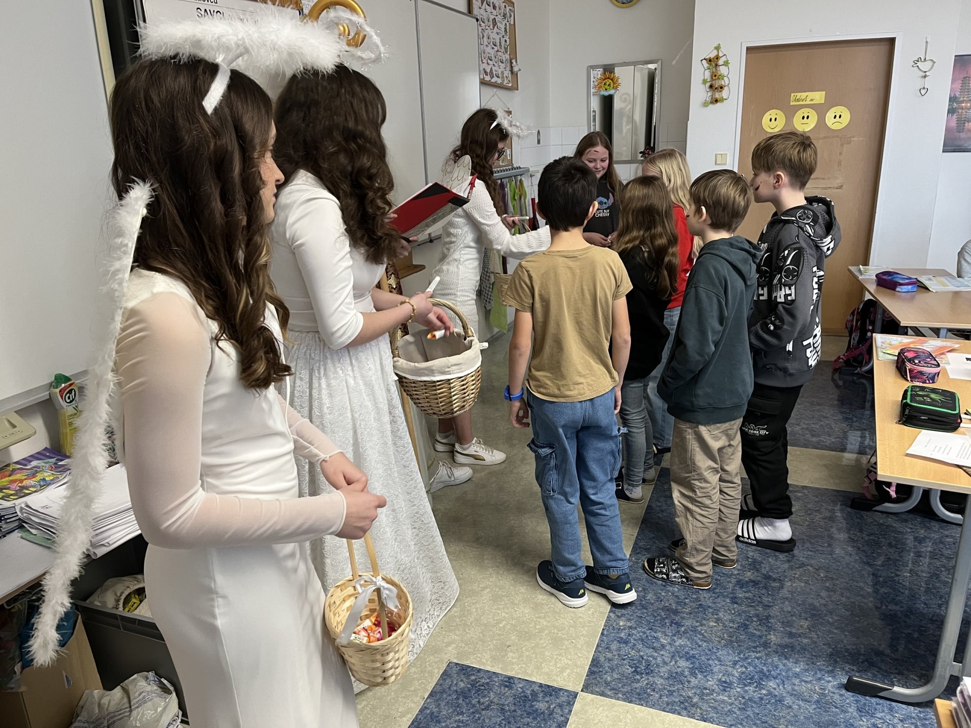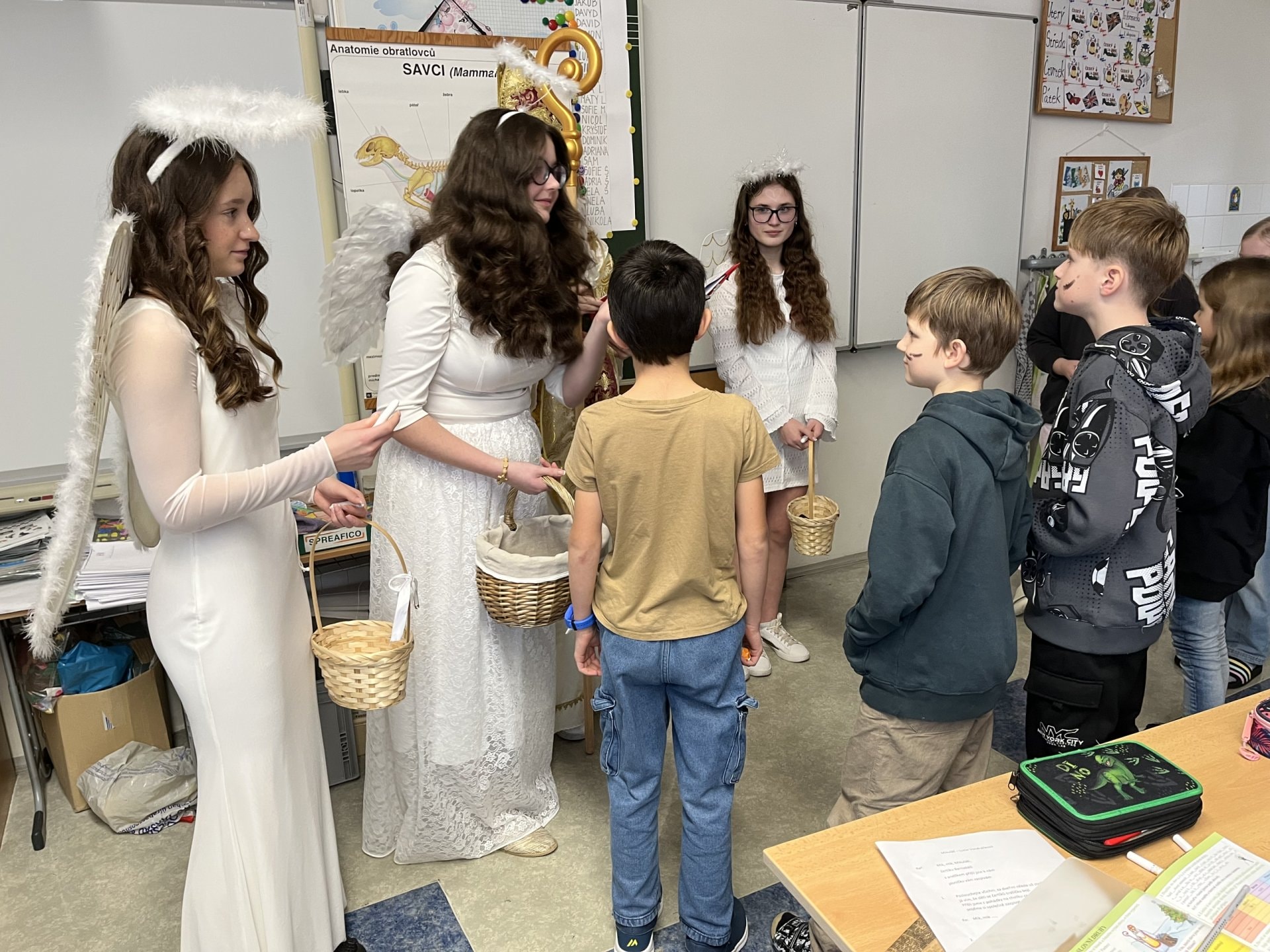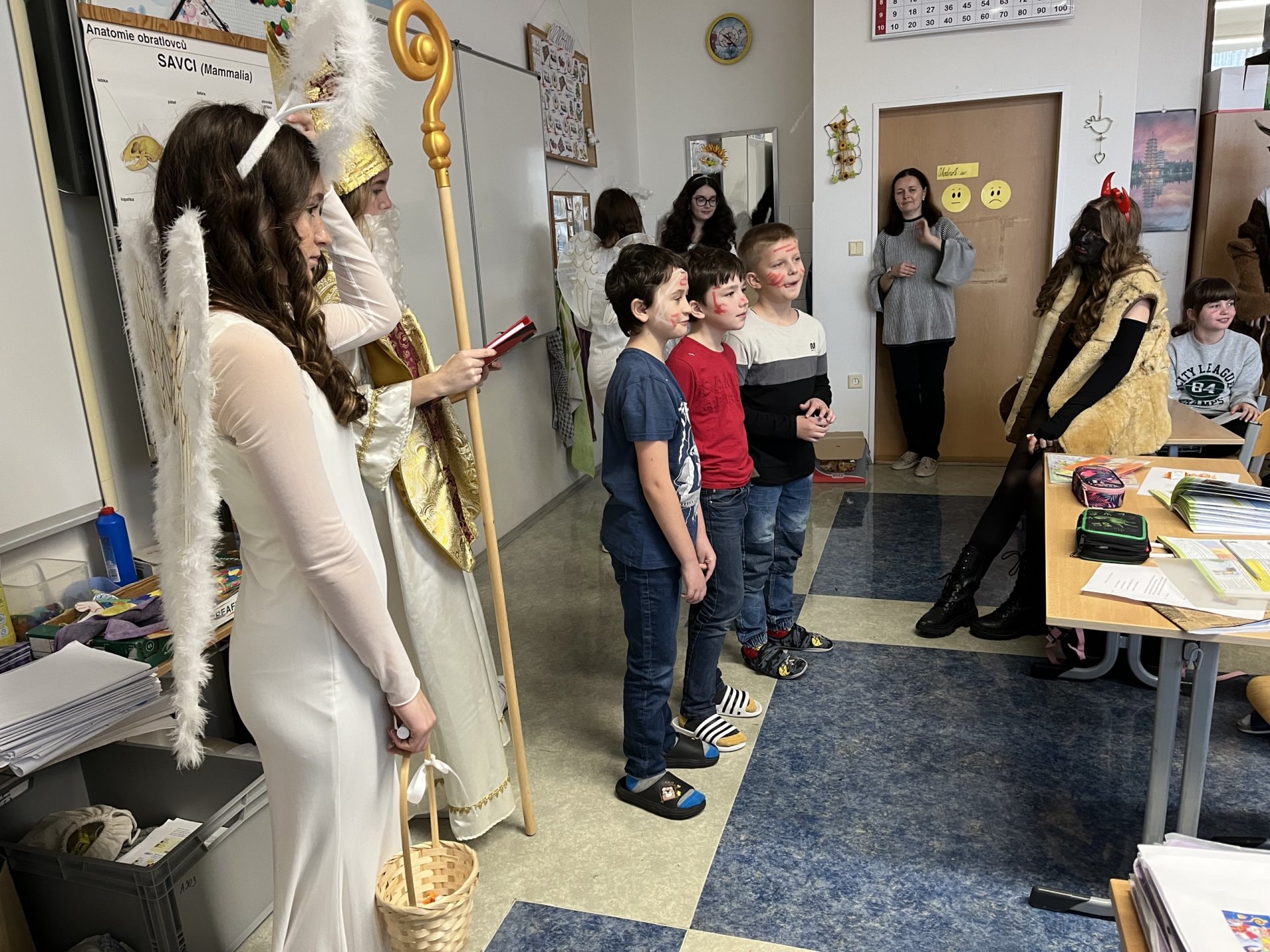 Adventní čas patří k nejkrásnějším v roce. Letos jsme opět přivítali ve třídě Mikuláše s andělem a s čerty. Navštívili jsme místní kostel, kde pro nás měl připravený program pan děkan. V kostele jsme si zazpívali v doprovodu varhan, což byl pro nás velký zážitek. Poslední den před vánočními prázdninami jsme si ve třídě společně zahráli různé hry a rozdali dárečky.