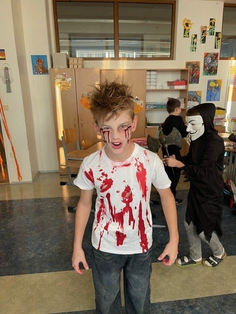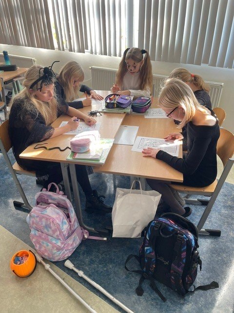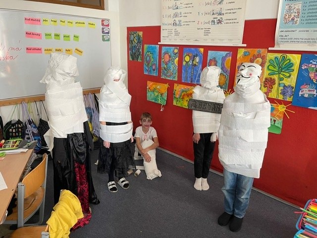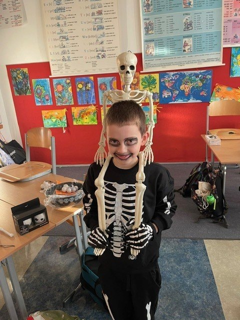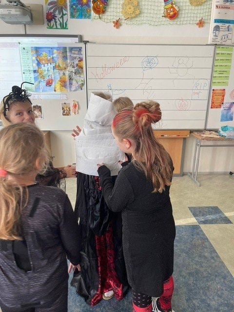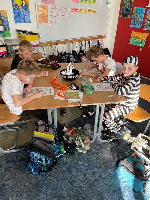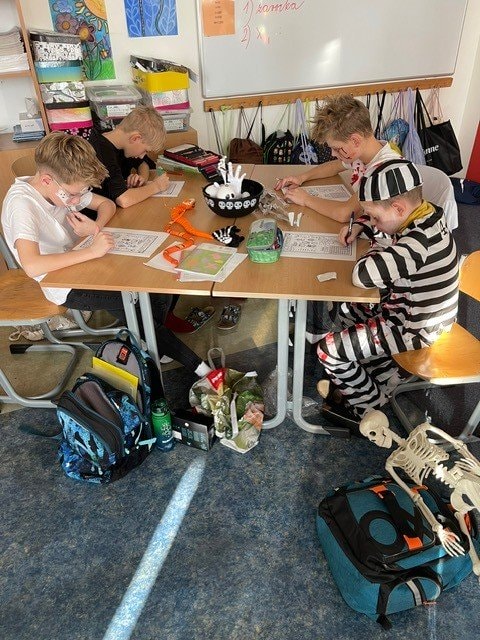 My jsme si museli Halloween trošku posunout, ale o to to bylo divočejší. Děti ráno přišly do školy v maskách. Moc jim to slušelo. Plnili jsme během dne různé úkoly, které se týkaly tohoto svátku, ale také úkoly z češtiny a matematiky.