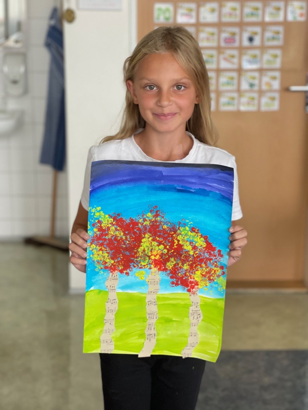 Od začátku školního roku jsme měli pár výtvarek. Podařilo se nám spousta pěkných obrázků. Jeden je ještě letní, a pak už přišel podzim. To jsou pěkně zbarvené břízy. Teď chystáme motýly na výzdobu třídy a chodeb.