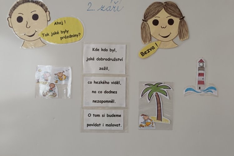 10.9.2025 Mgr. Ilona Lišková Vzpomínky na prázdniny 5.A První týden v září jsme ještě vzpomínali na letní prázdniny. Vzájemně jsme si sdělovali, kdo kde byl, líčili ty nejhezčí zážitky, ukazovali si fotky…