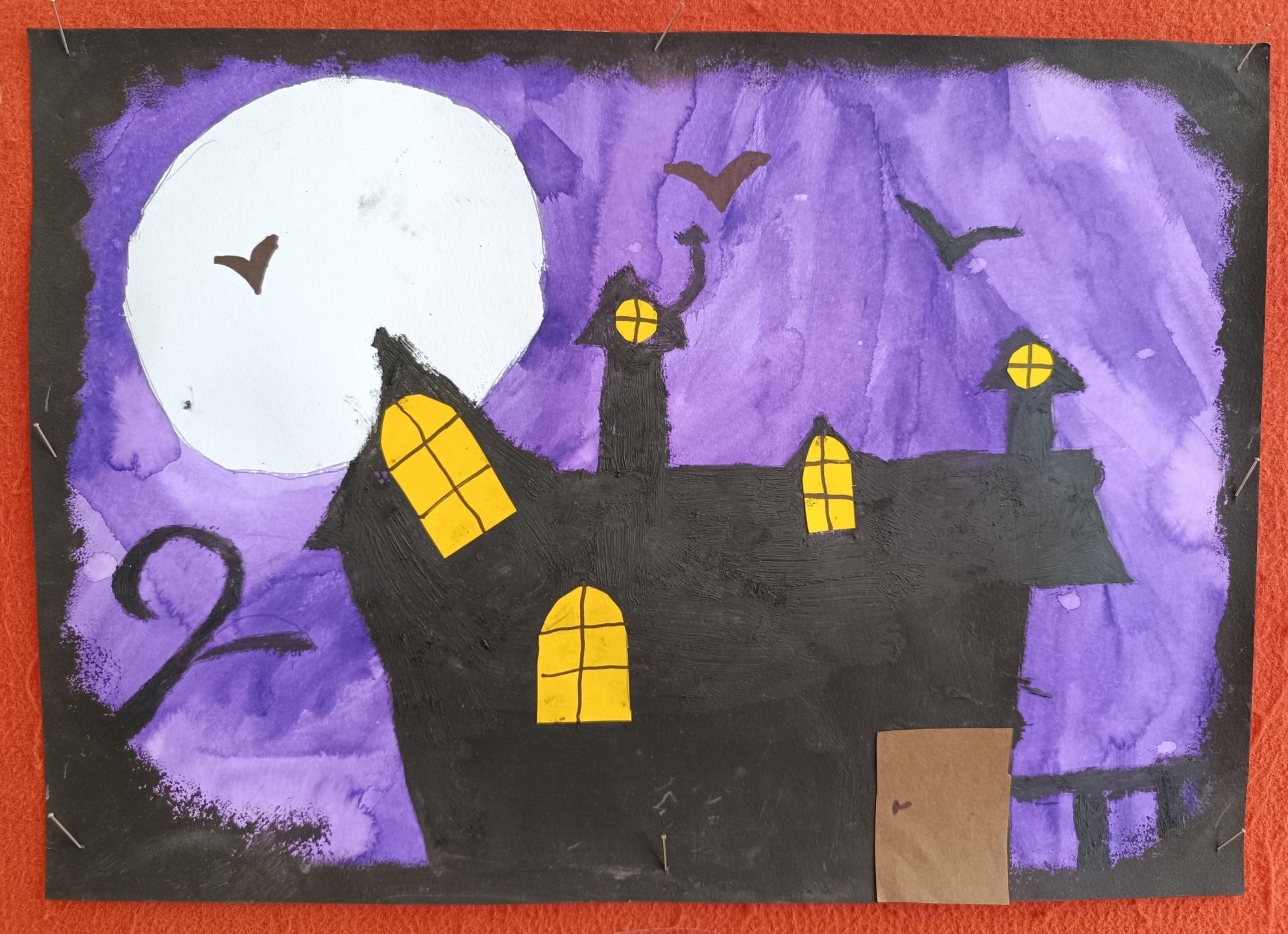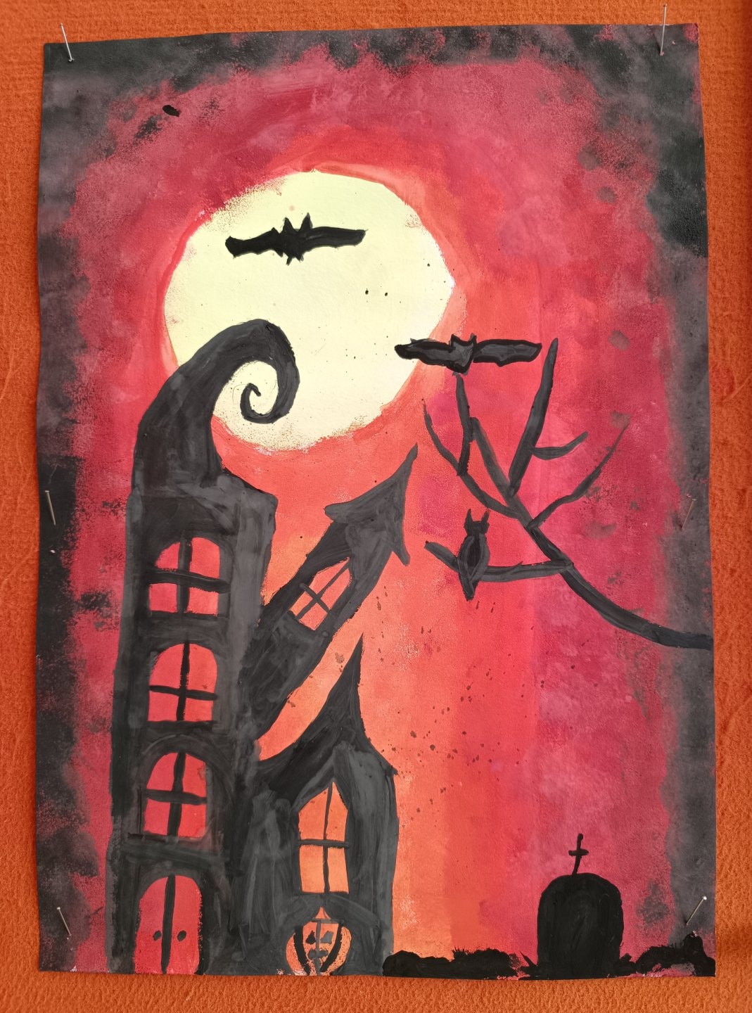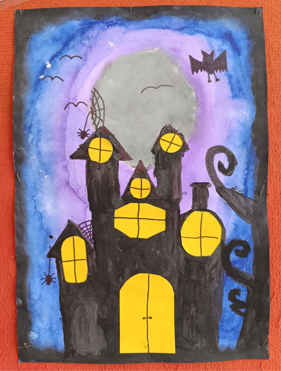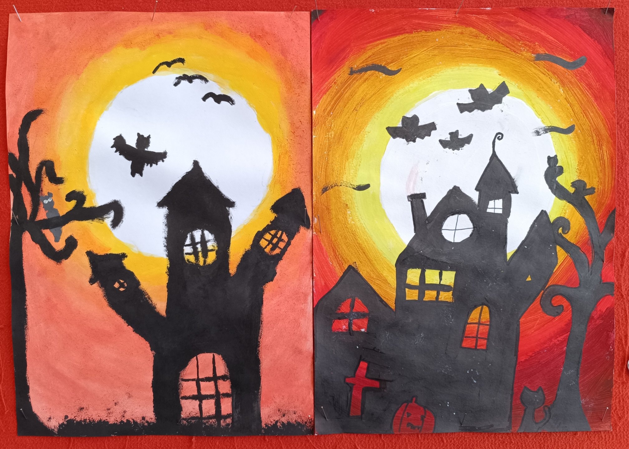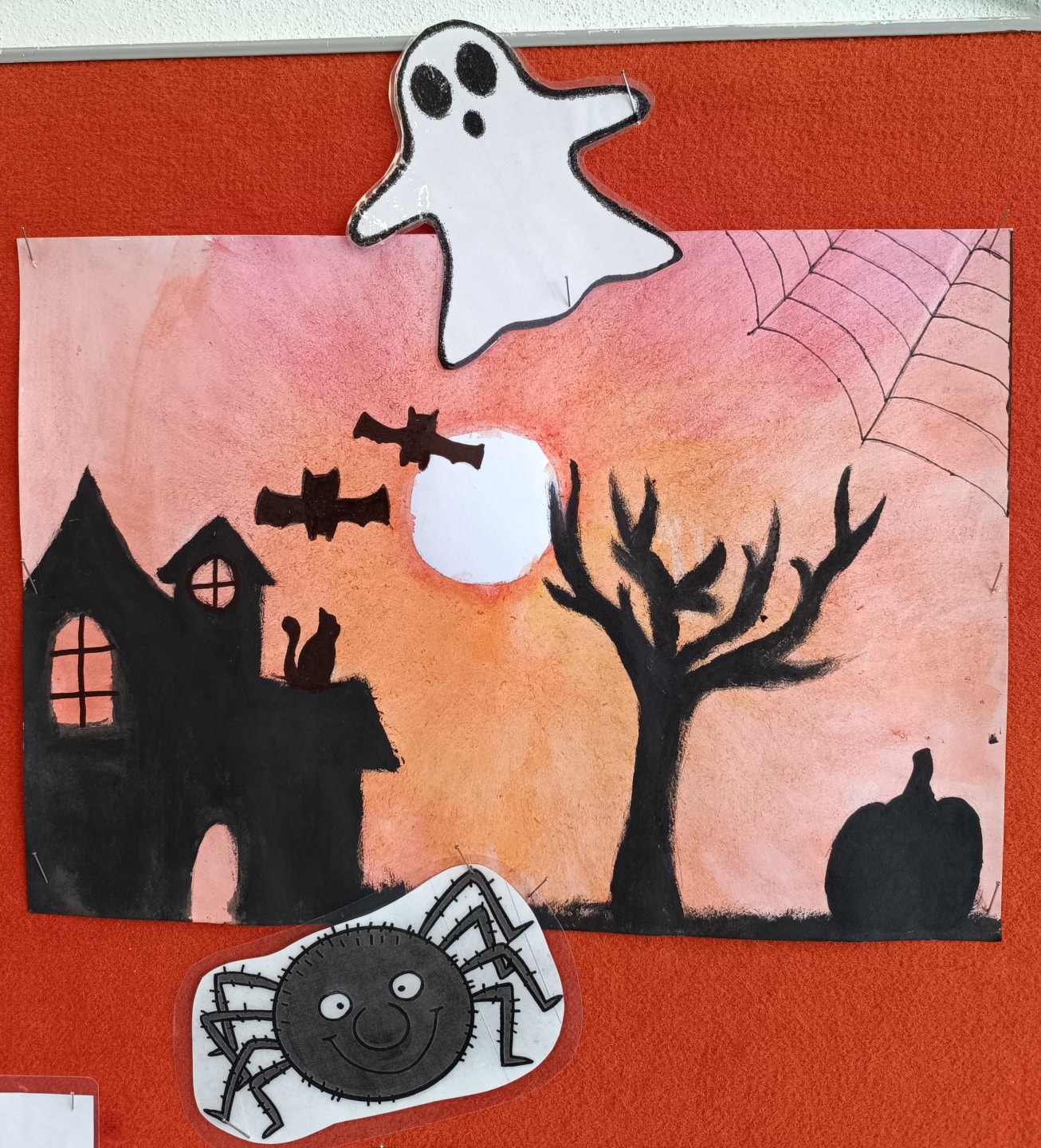 proto jsme si třídu vyzdobili malbou strašidelných obydlí duchů, čarodějnic a pavouků