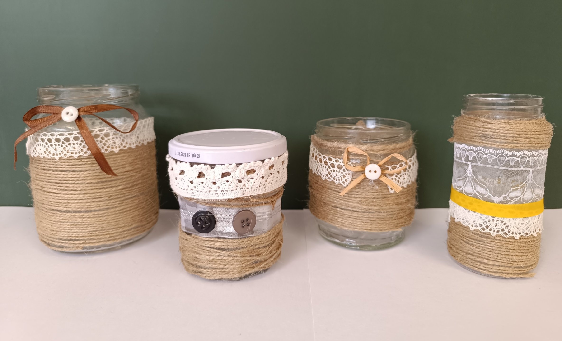 1. dekorativní skleněné vázy, či svícny nebo sklenice na tužky, pastelky, …