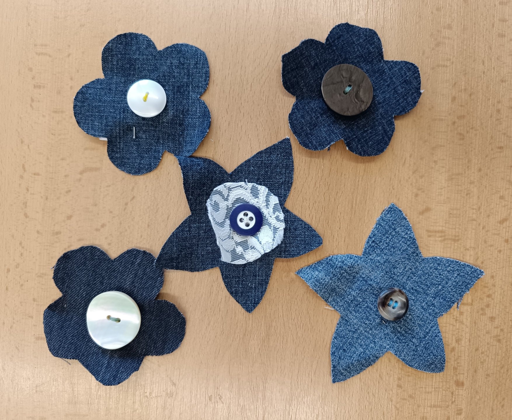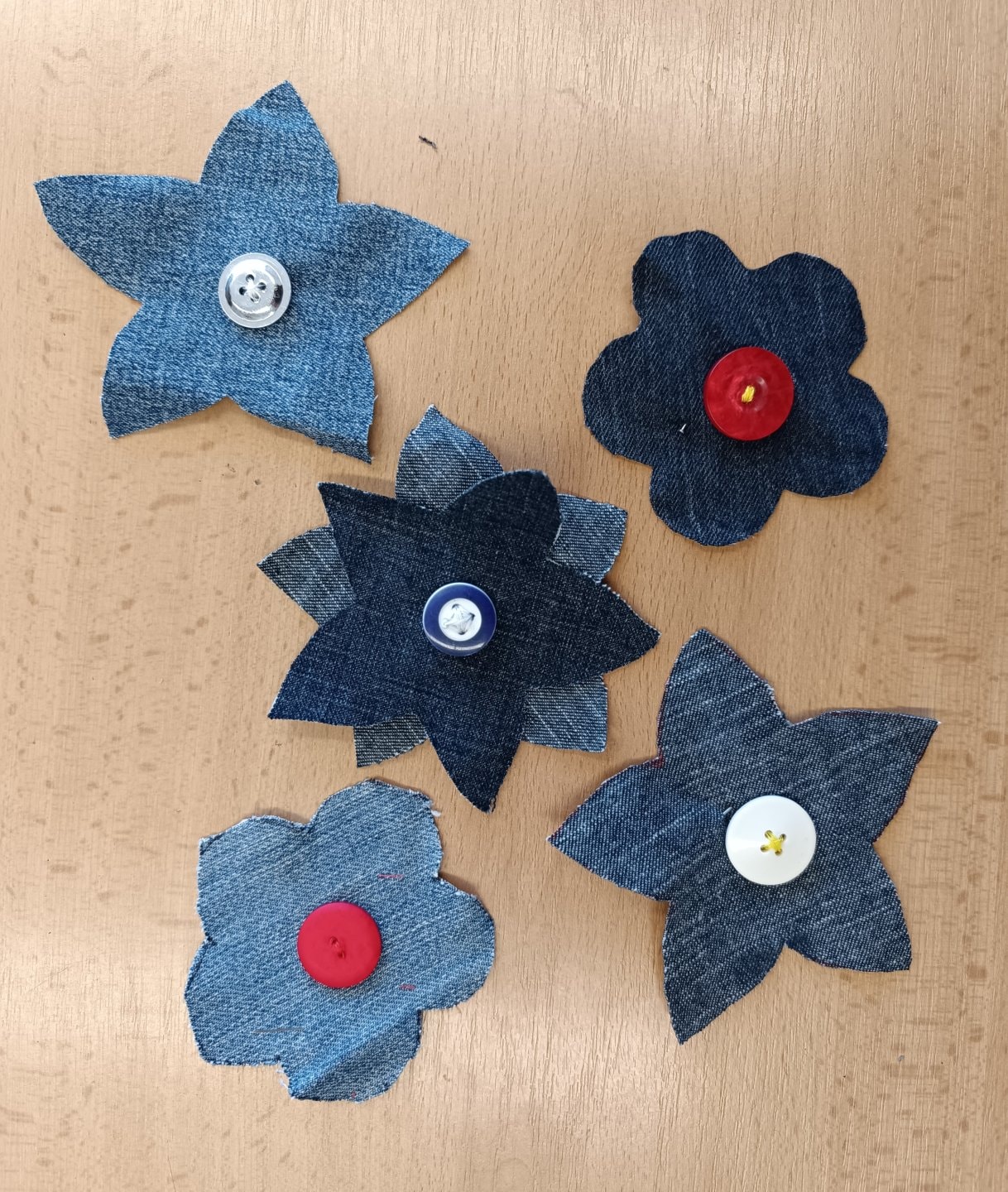 2. víceúčelová textilní květina (ozdoba na čelenku, na tašku, tričko, …)