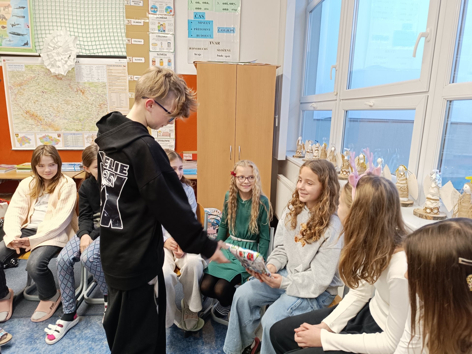A právě takové těšení prožívali kluci a holky poslední školní den v roce 2025, kdy do 5.A přišel Ježíšek.