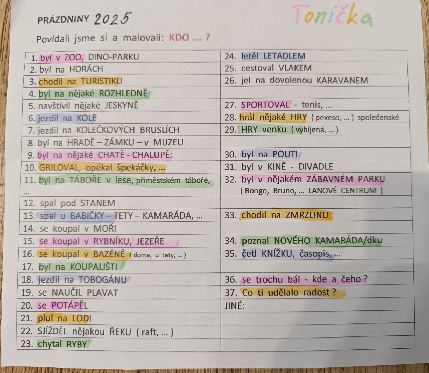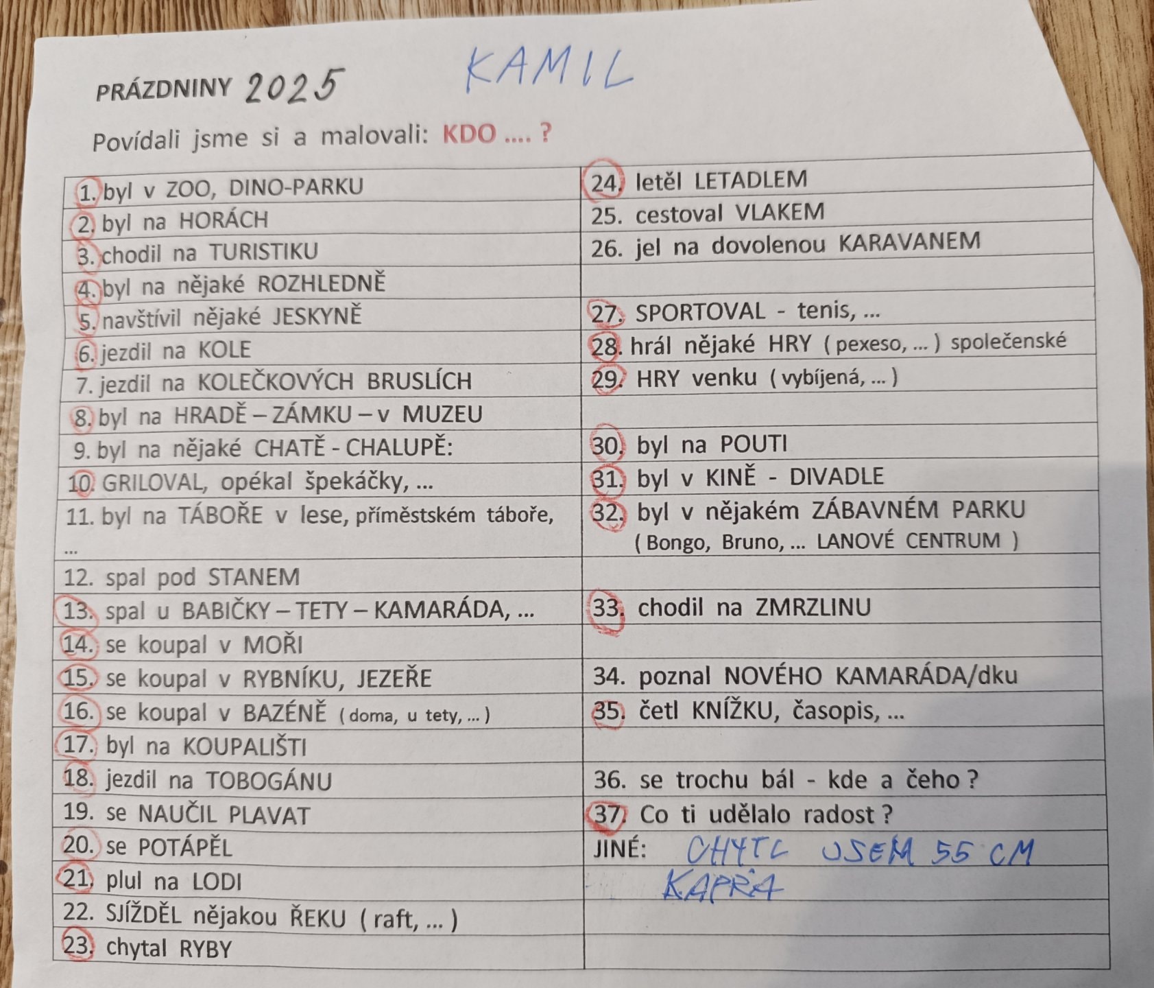 Ve slohu každý žák sestavil vlastní prázdninovou osnovu.