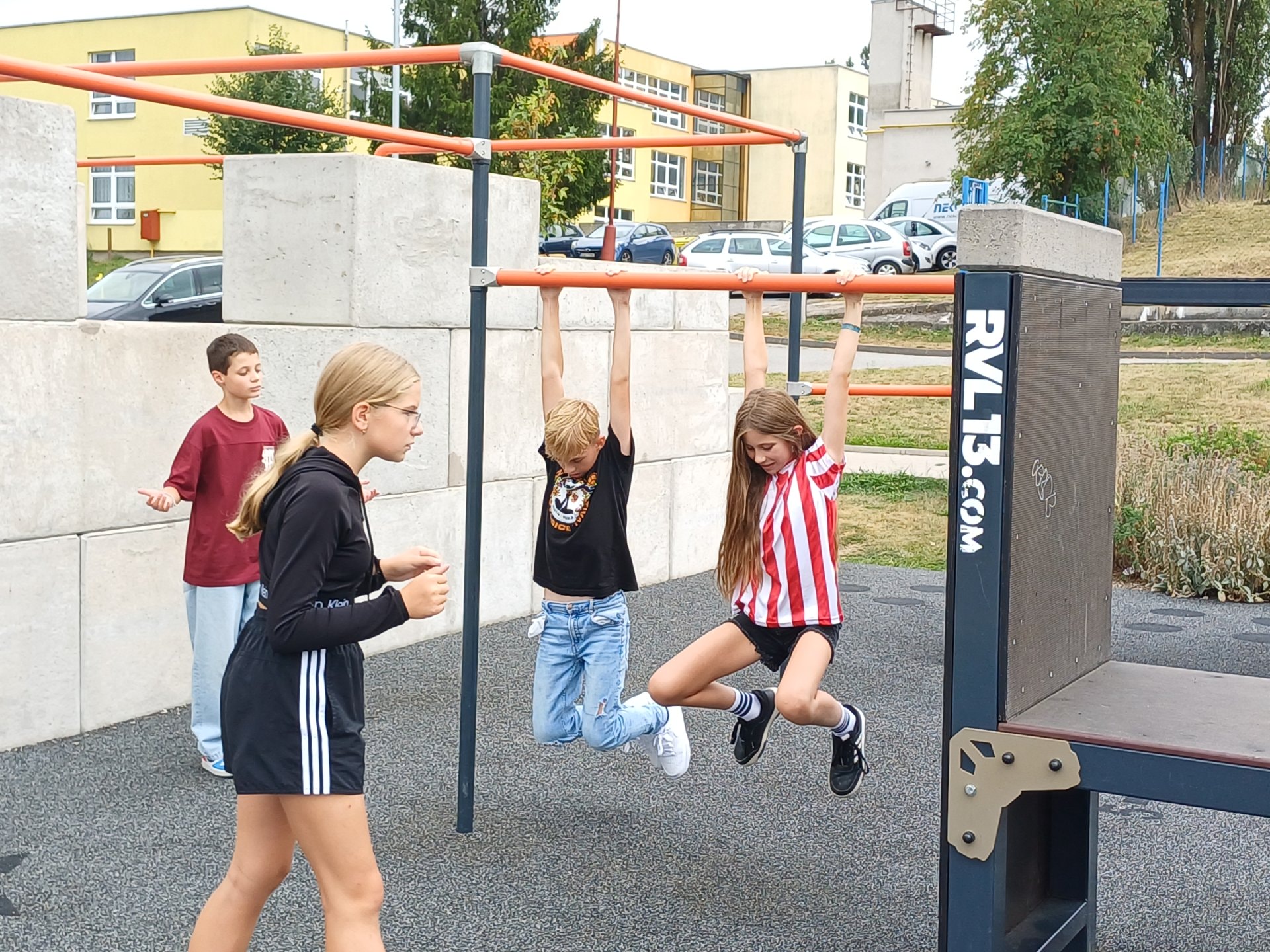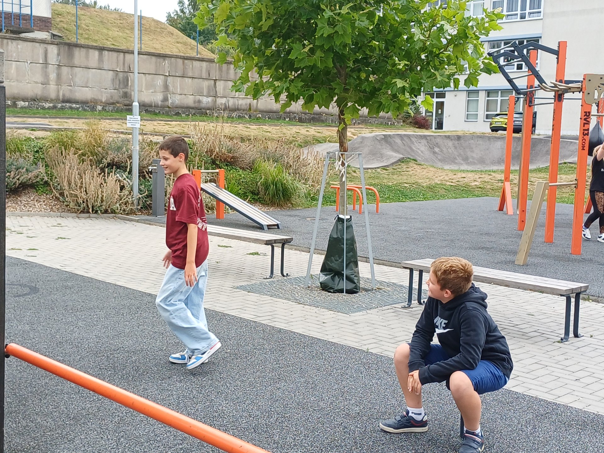 První dny ve škole se snažíme nějak zpestřit, a tak probíhají různé stmelovací a adaptační aktivity, hry na různé sdílení a nechyběl ani pohyb venku na našem oblíbeném parkur hřišti.