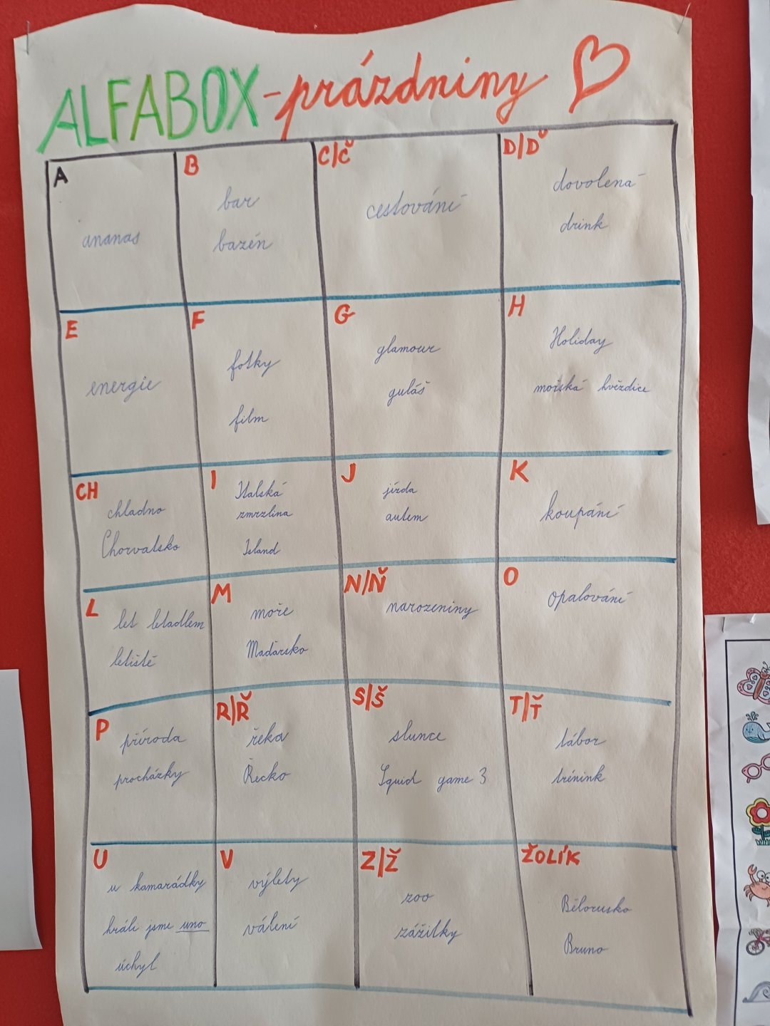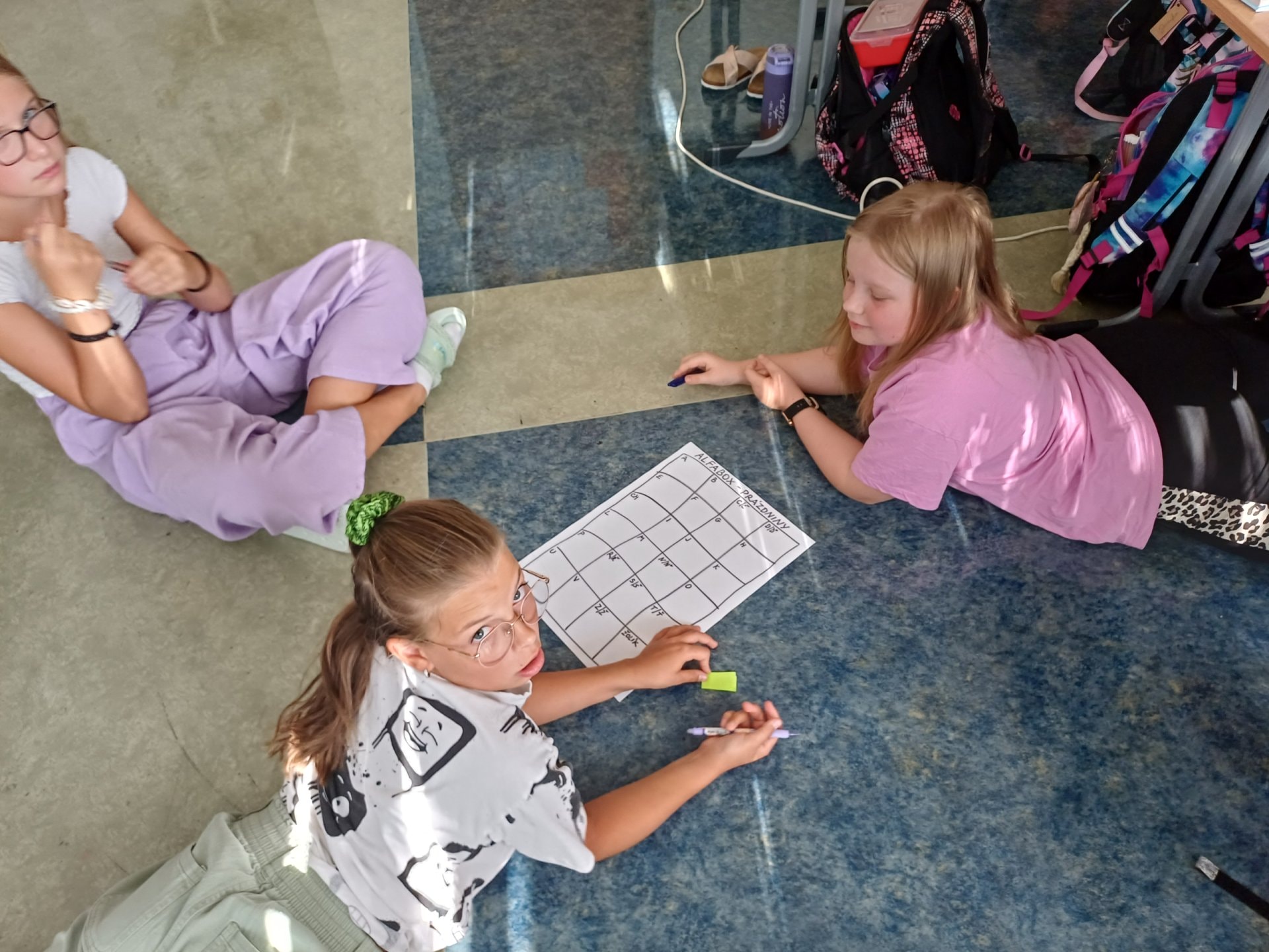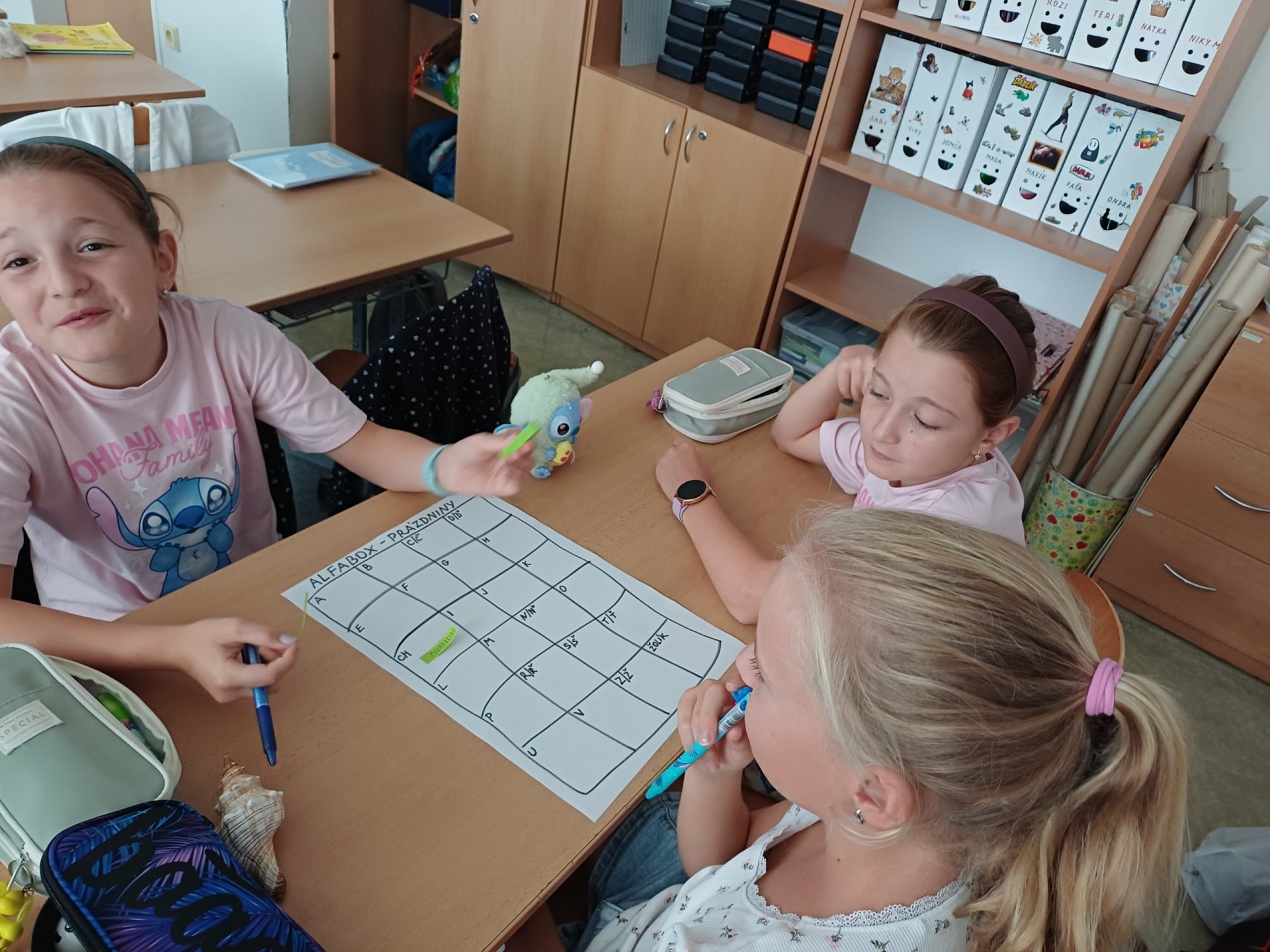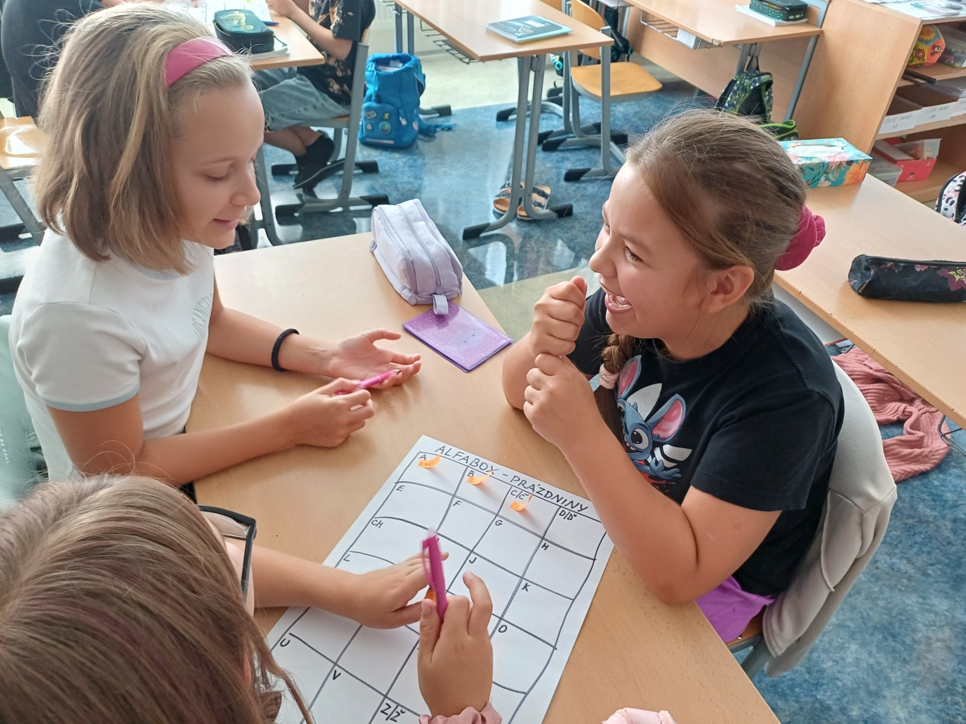 O prázdninách jsme si vyprávěli, sdíleli ve dvojicích, tvořili jsme skupinový alfabox, ze kterého vznikl celotřídní.
