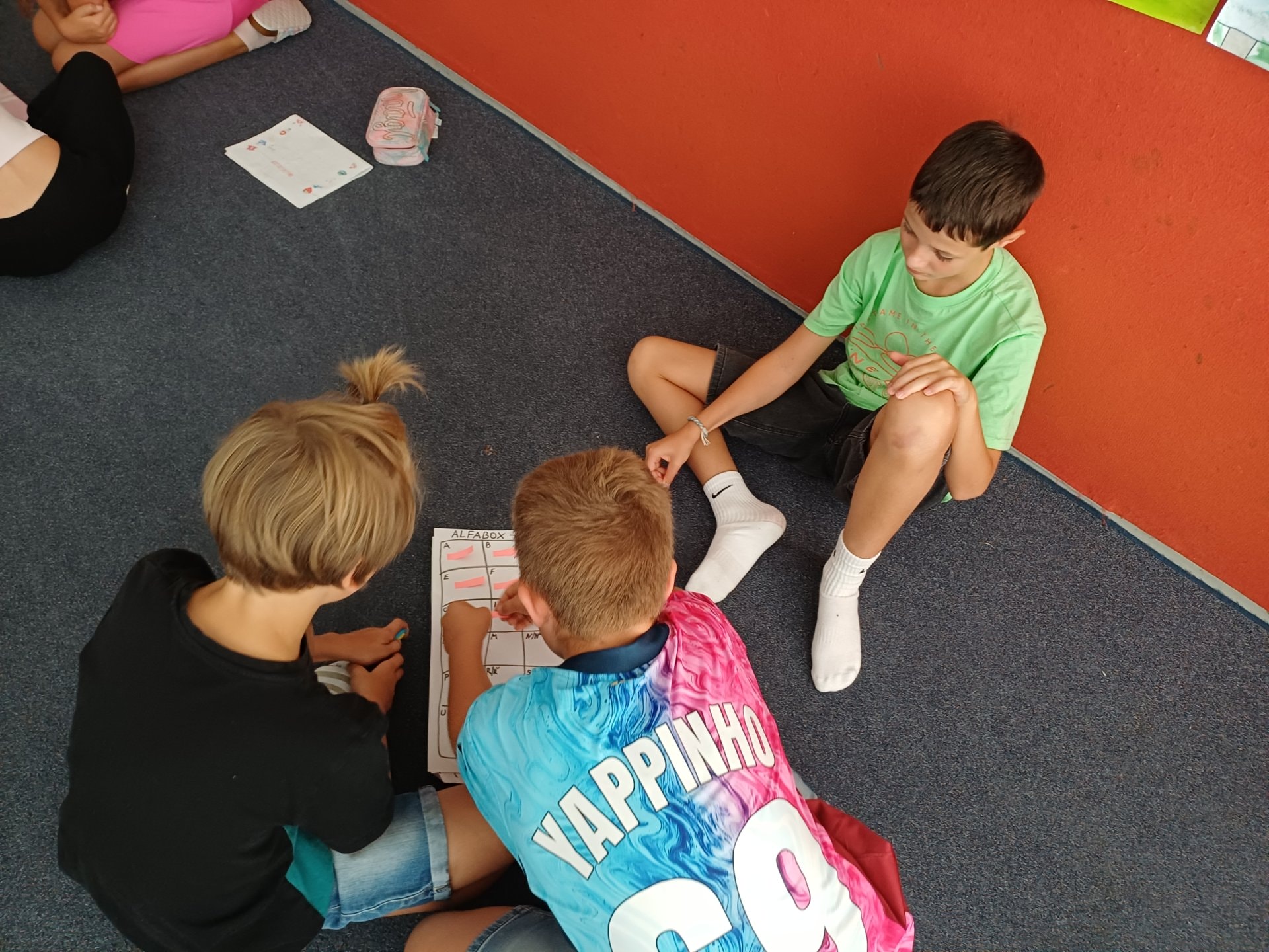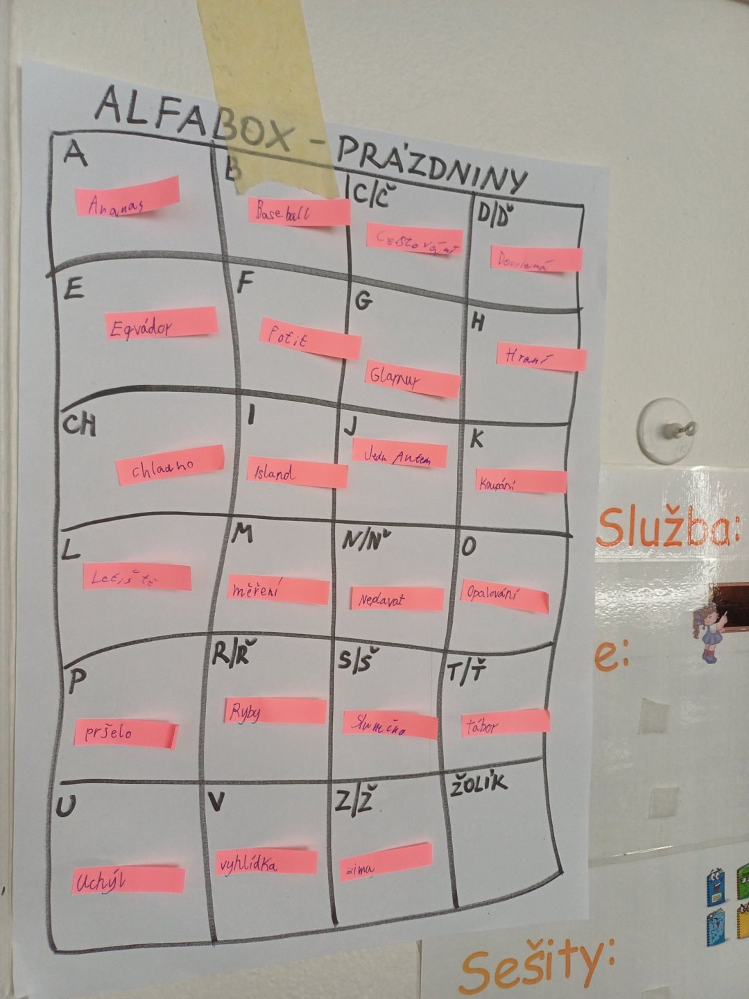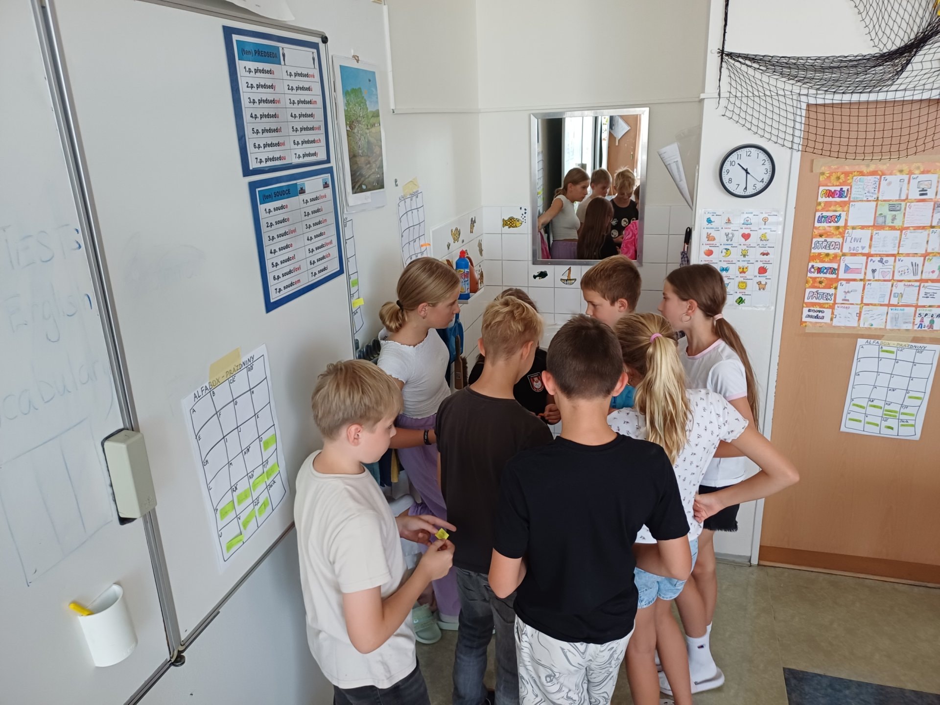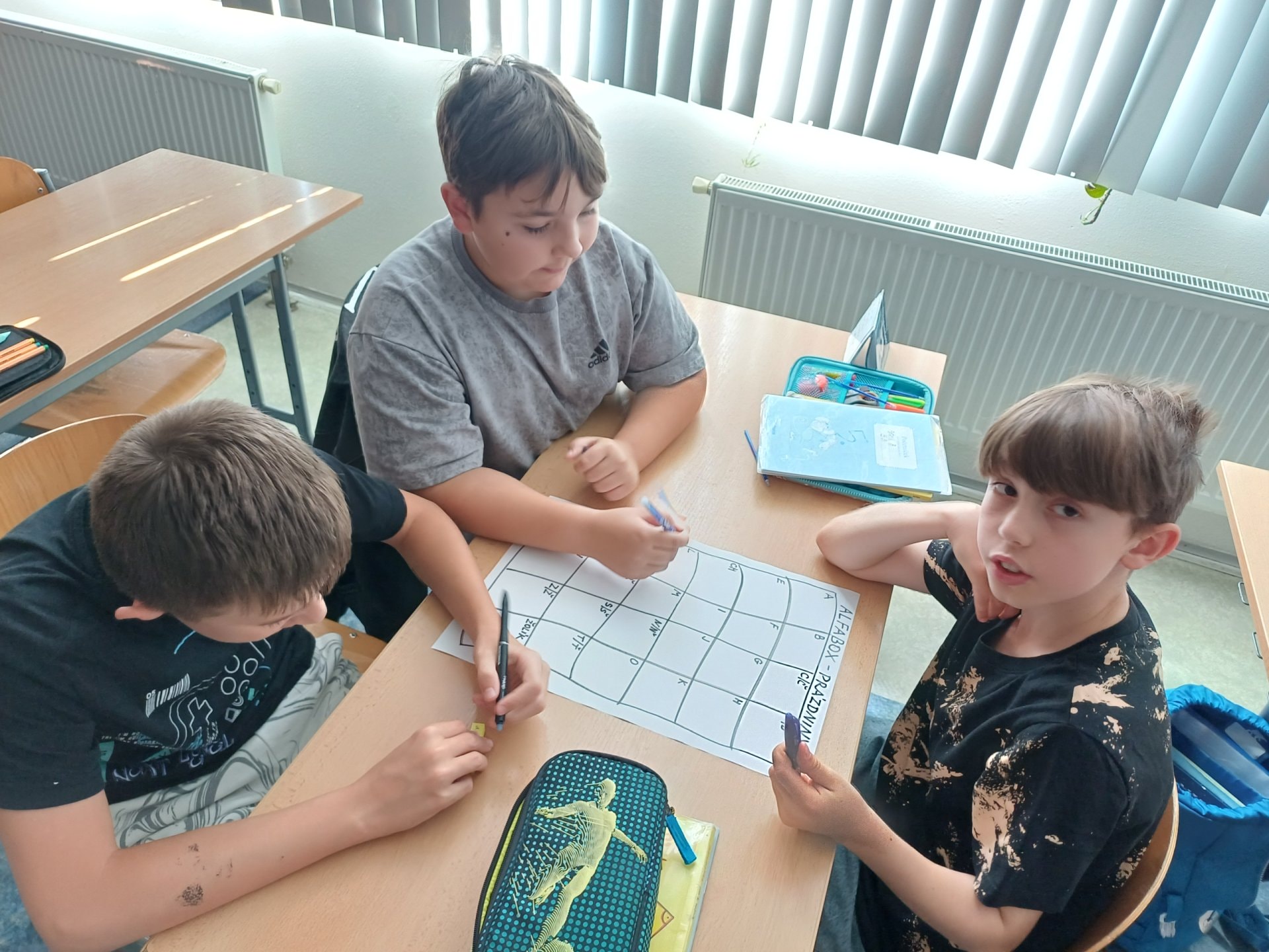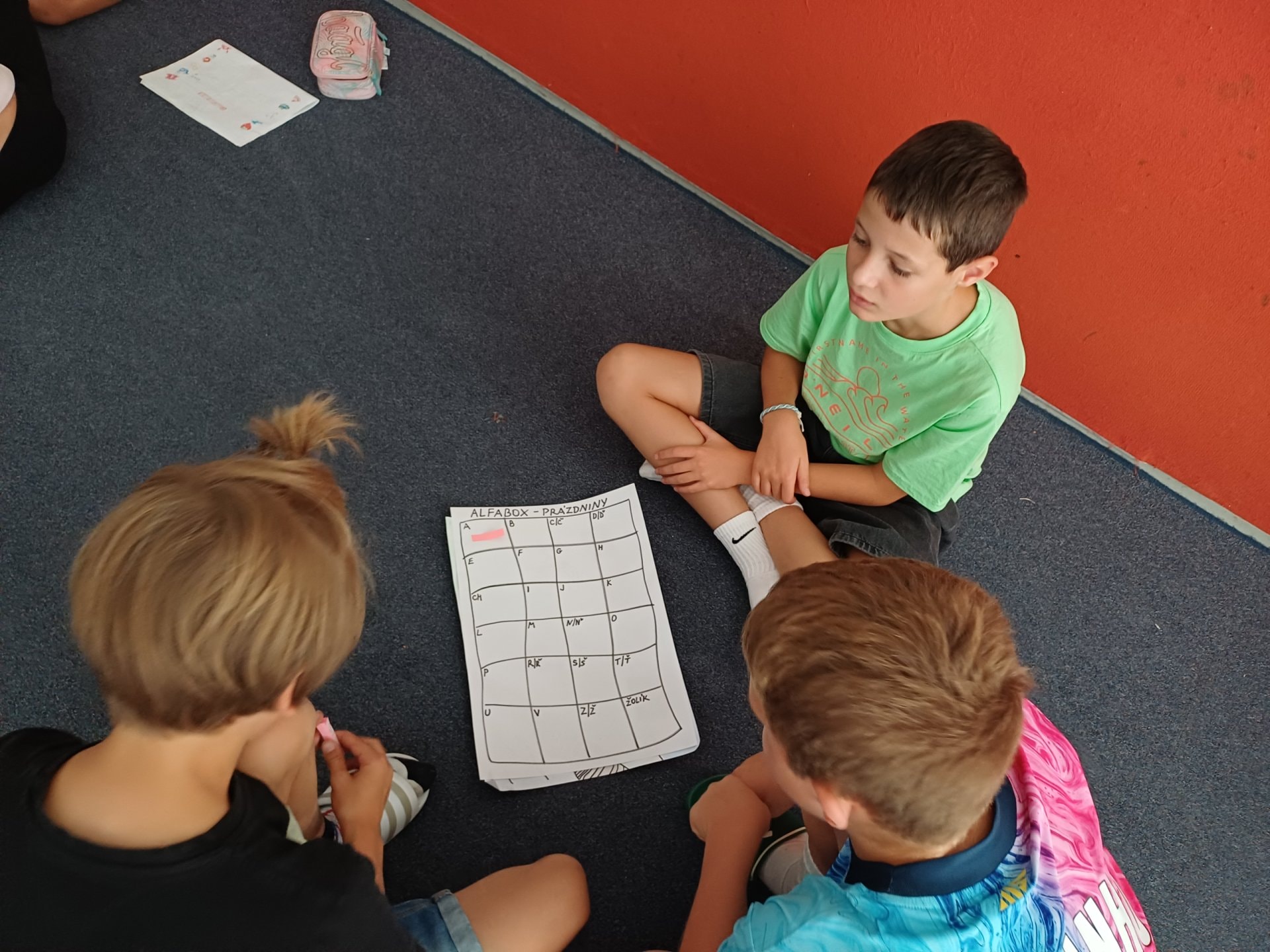 O prázdninách jsme si vyprávěli, sdíleli ve dvojicích, tvořili jsme skupinový alfabox, ze kterého vznikl celotřídní.