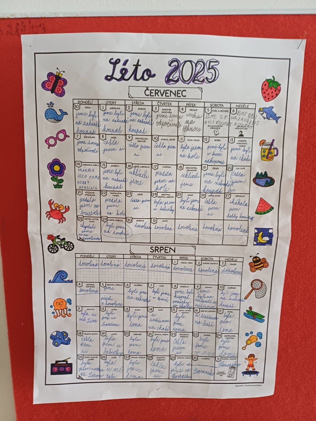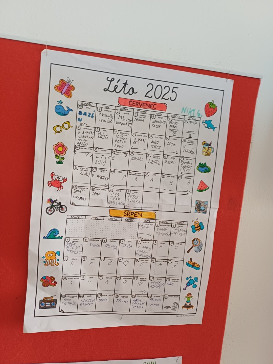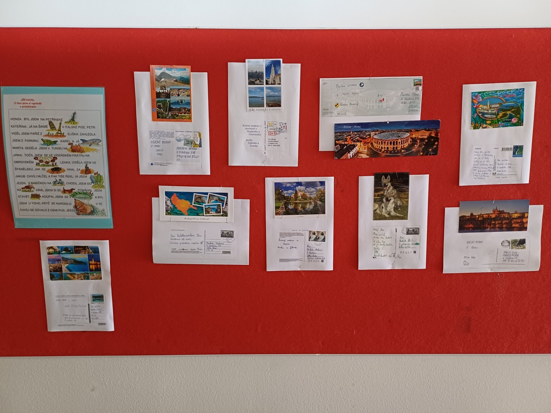 Na nástěnce na nás čekaly i pohlednice, které jsme posílali paní učitelce. Ona nám také na oplátku poslala pozdrav z prázdnin.