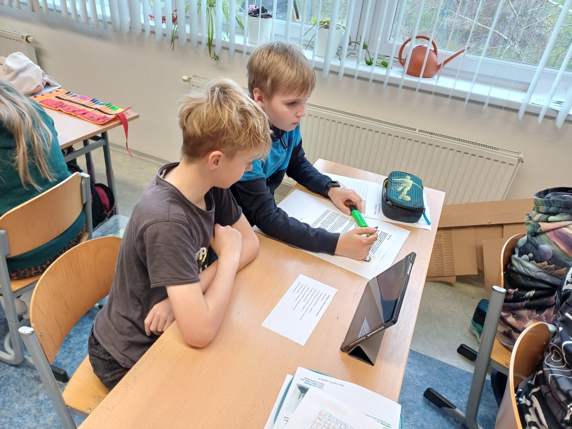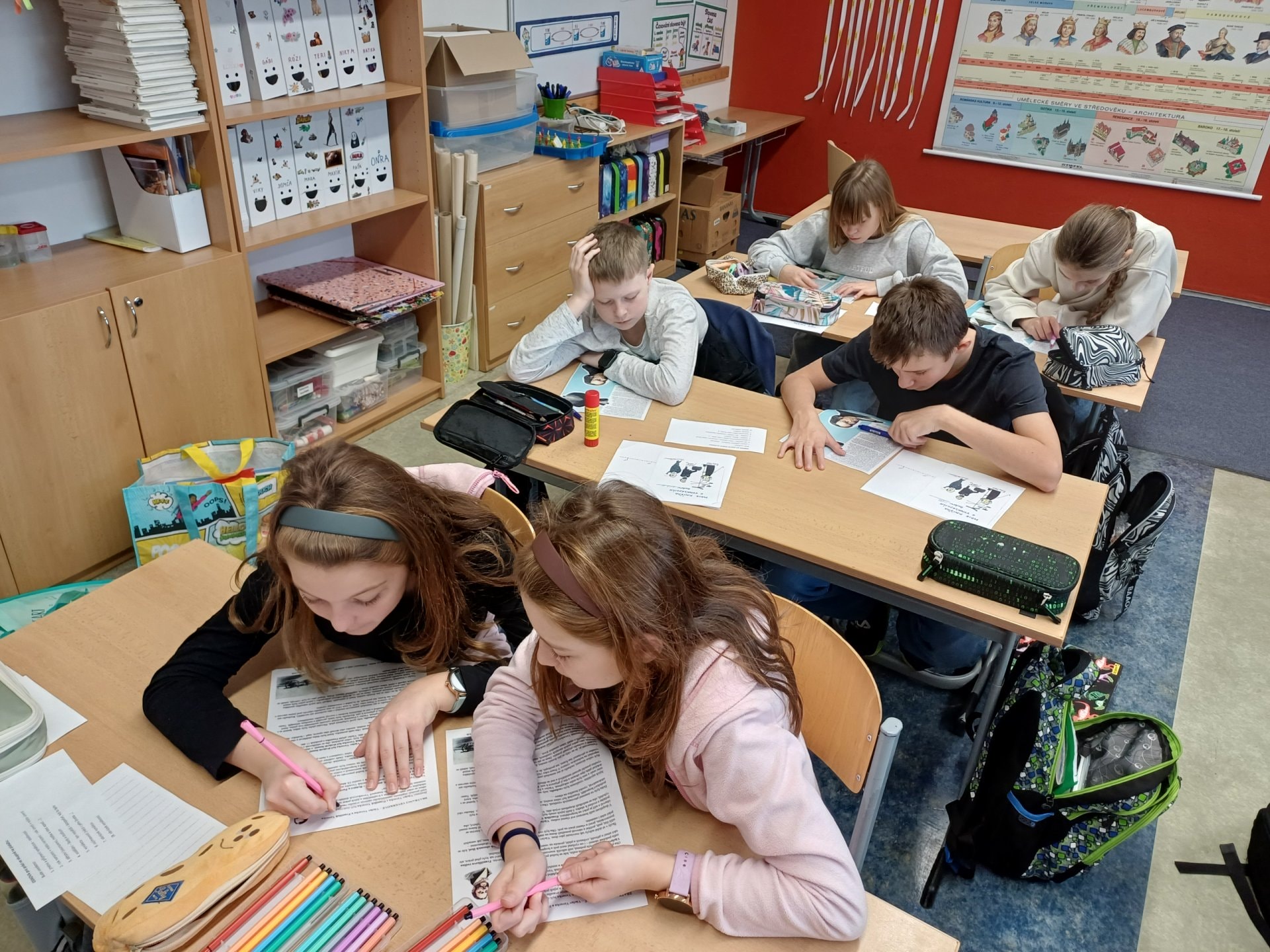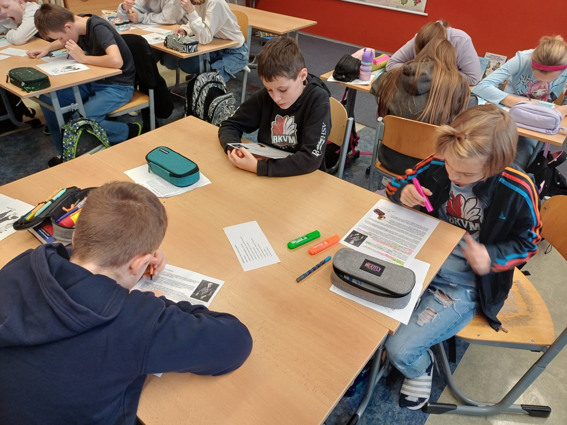 Děti pracovaly s připravenými texty, s knihami, ve skupinkách zpracovaly prezentační plakát - referát k danému vynálezci a následně prezentovaly získané informace ostatním spolužákům, kteří si zpracovávali na závěr projektu knížečku o vynálezcích.