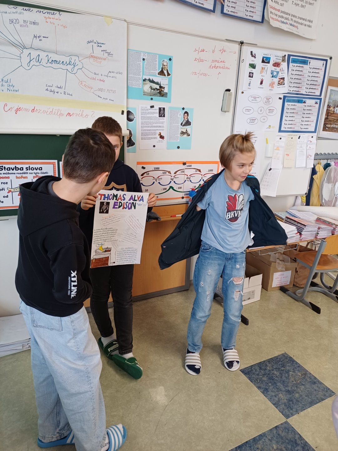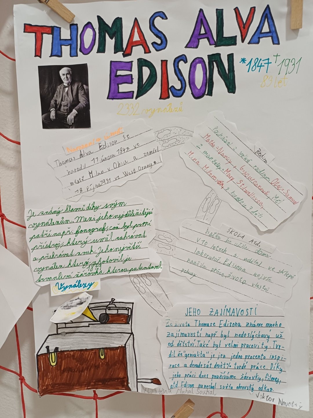 Nechyběla práce s tablety, propojení s výtvarnou výchovou. K těmto osobnostem jsme společně zjistili mnoho zajímavého. Věděli jste například, že někteří vynálezci vůbec nechodili do školy? :-)