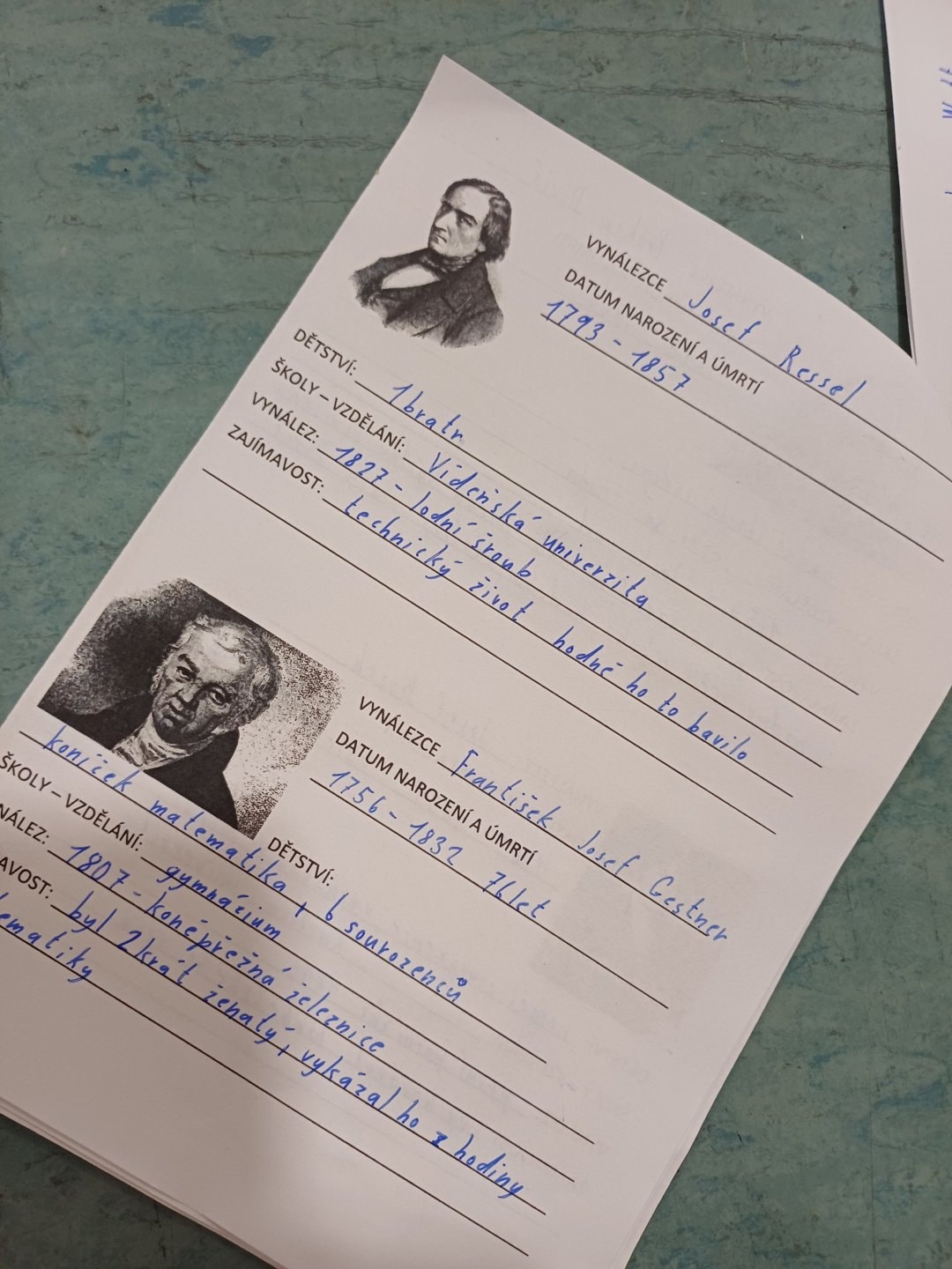 Opět jsme si v 5.B zpestřili vlastivědné učivo - vynálezy, vynálezci a průmyslová revoluce v českých zemích.