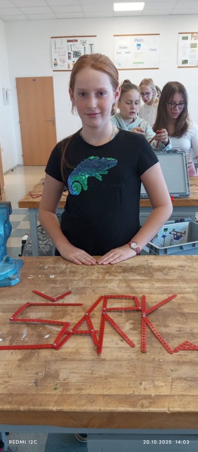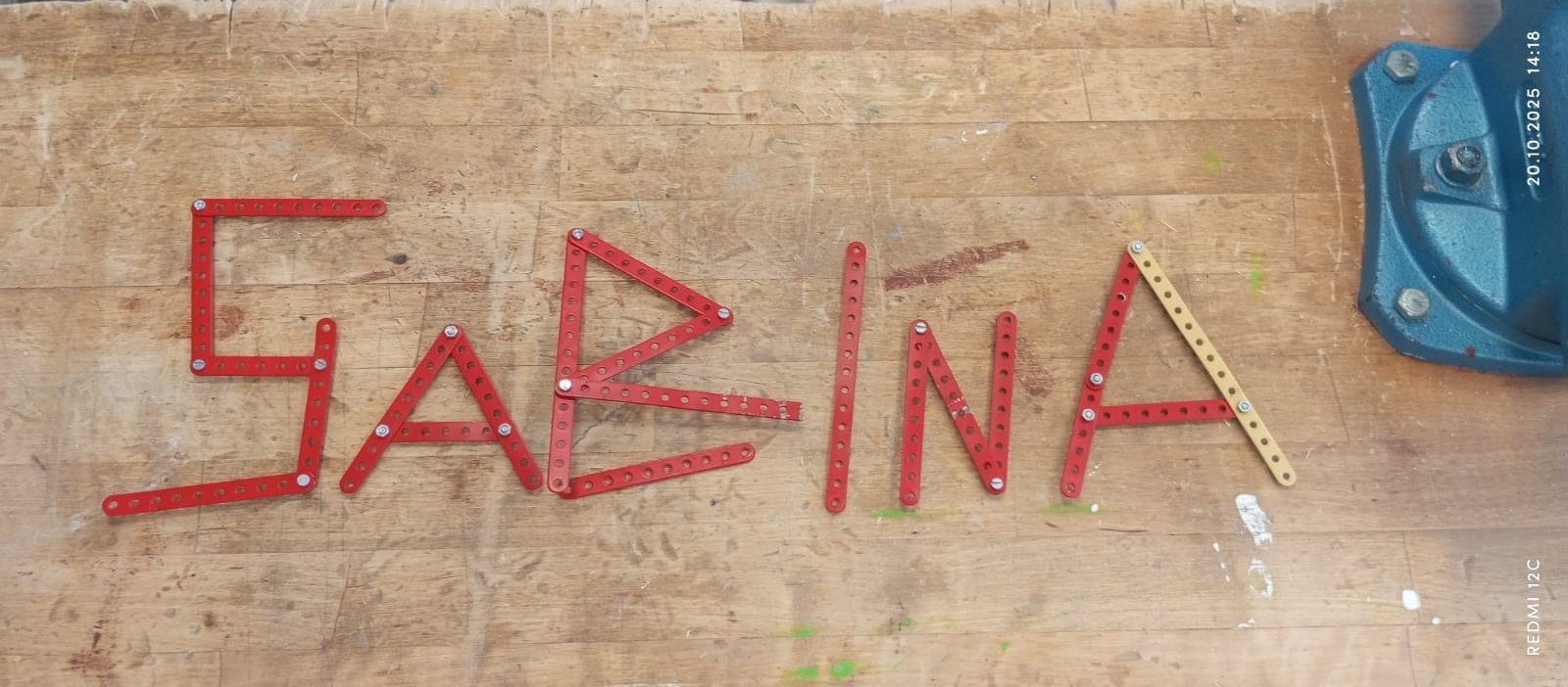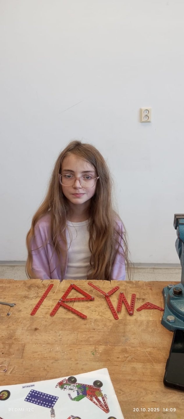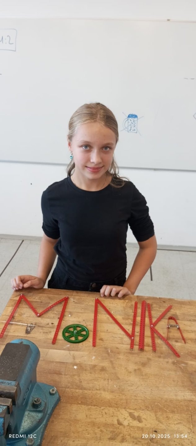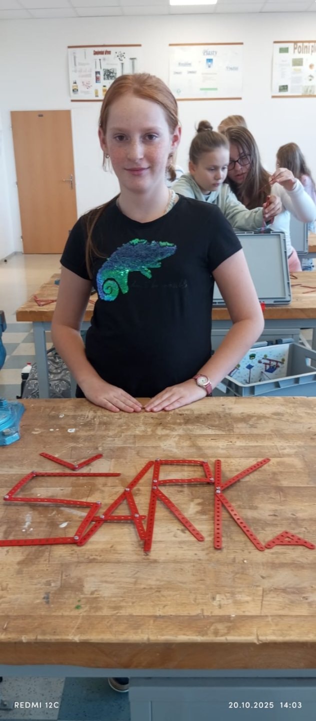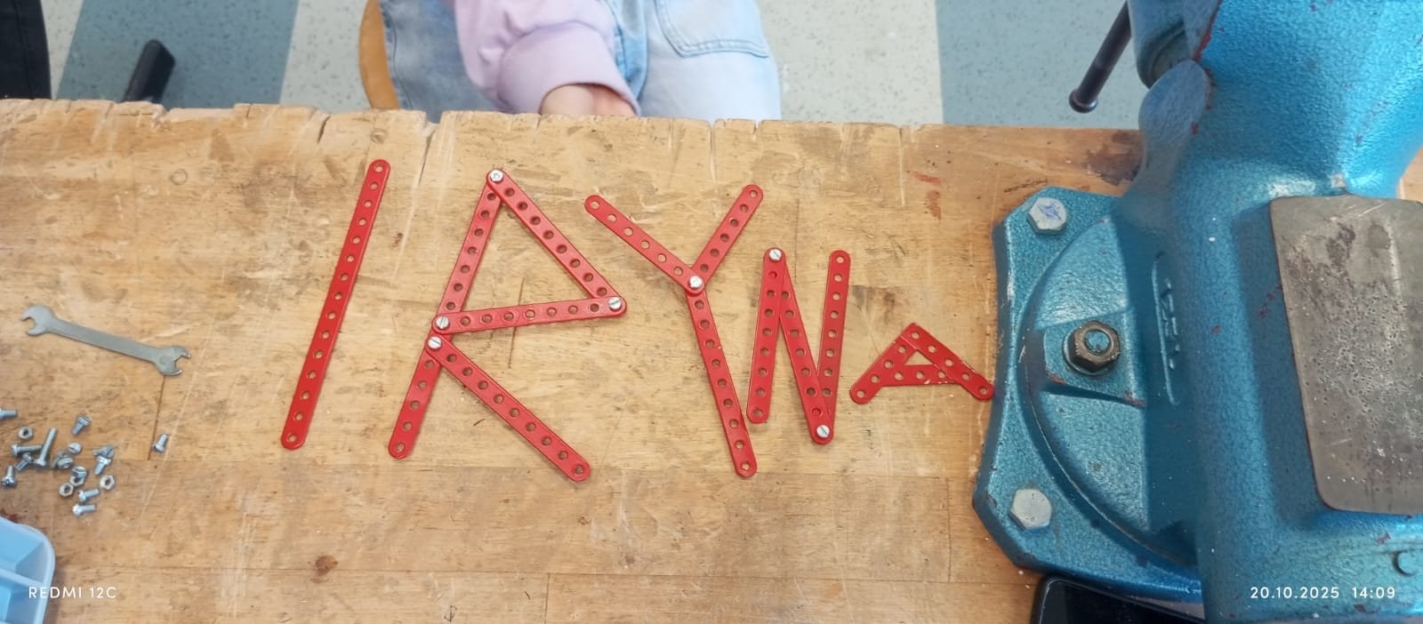 V hodině pracovní výchovy se tentokrát holky seznámily se stavebnicí Merkur. Za úkol měly sestavit z dostupných součástek své křestní jméno. Práce je bavila a příště se pustíme do složitějších výrobků.