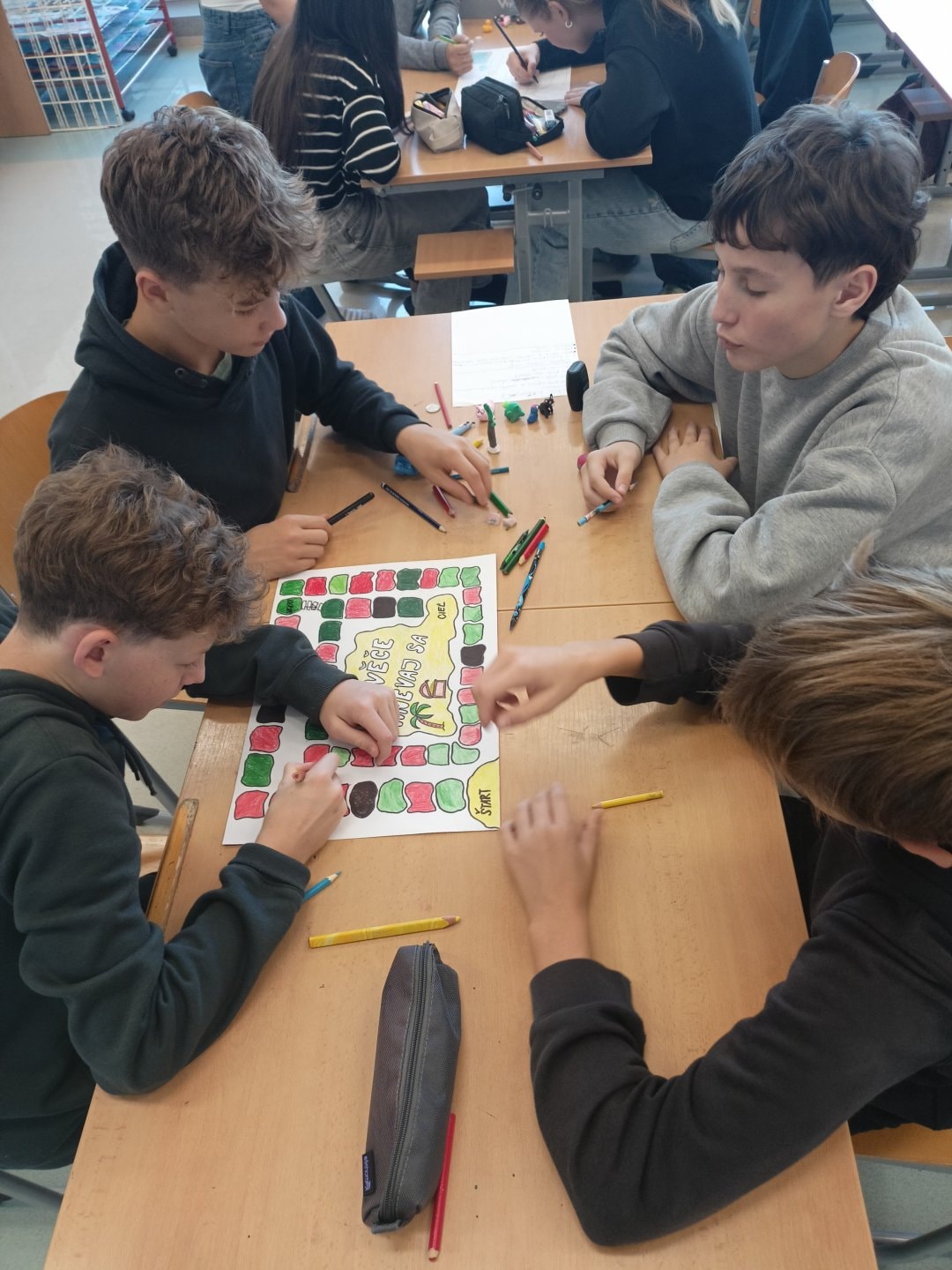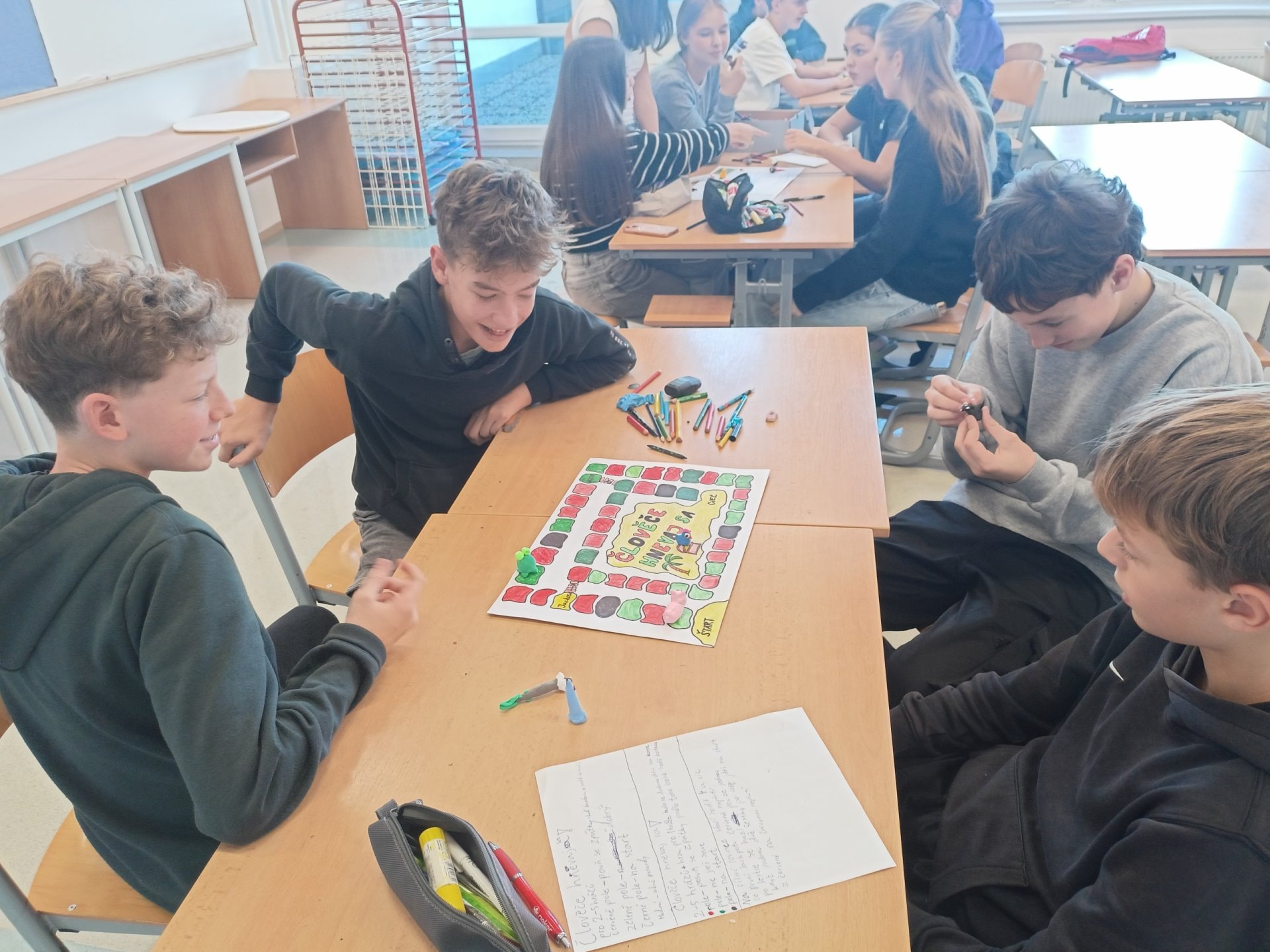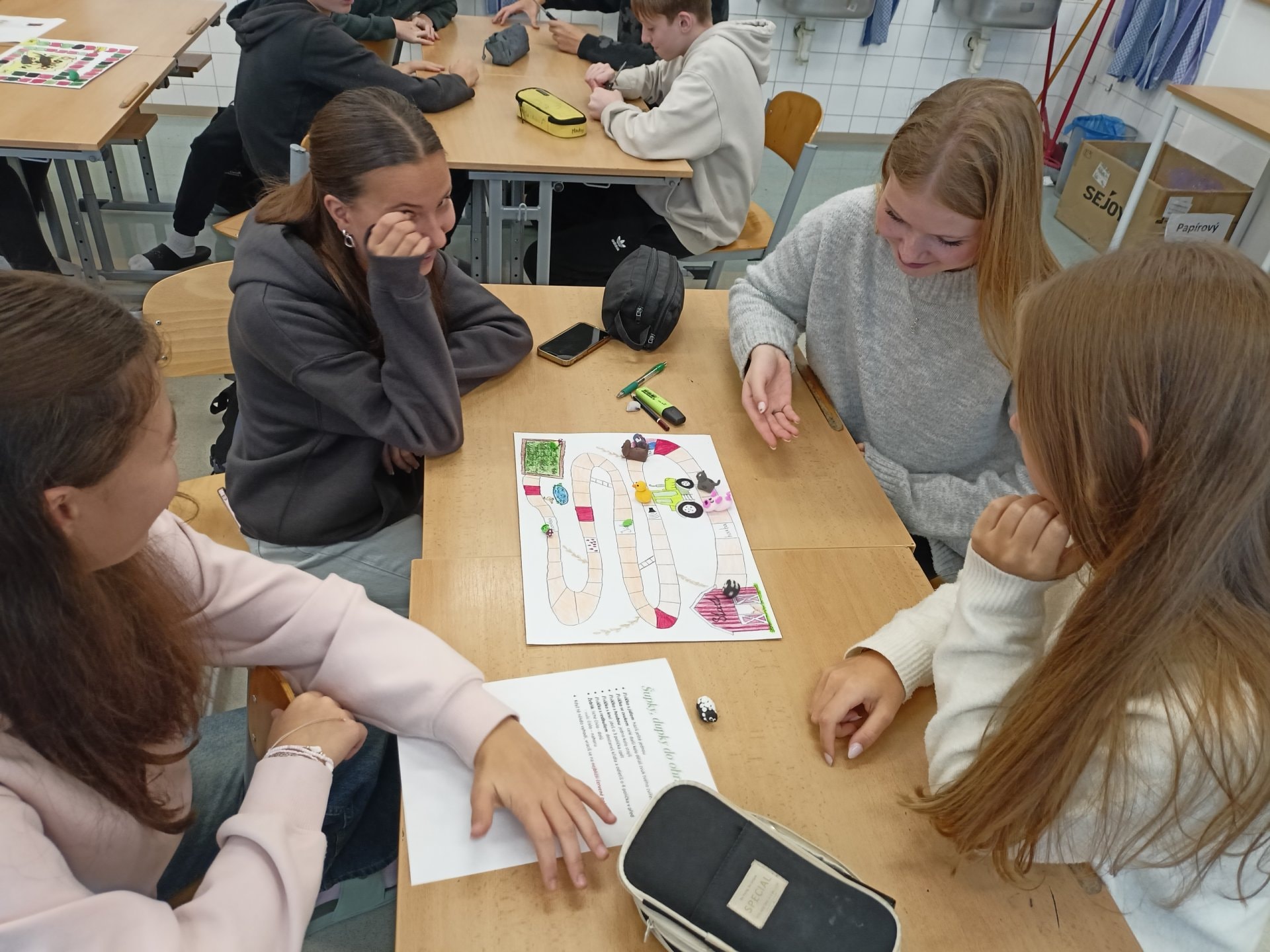 Co takhle si hru vyrobit? Ve výtvarné výchově dostali žáci úkol si ve skupinkách vymyslet, navrhnout a zpracovat jejich vlastní deskovou hru. Všichni se do toho vrhli. Musím moc pochválit všechny skupiny, jejich skvělé nápady, kreativitu, trochu zákeřnosti, výborné zpracování, ...