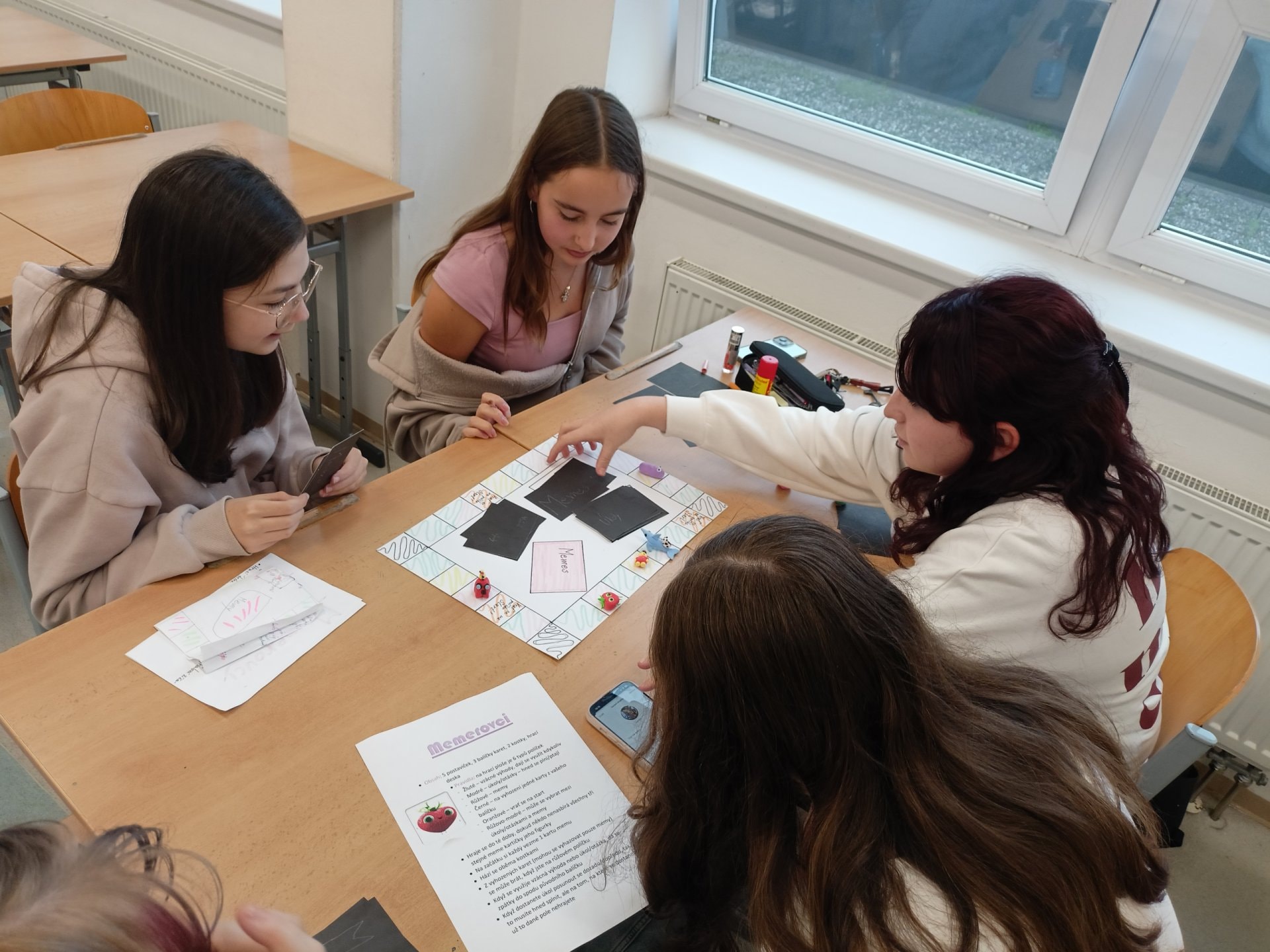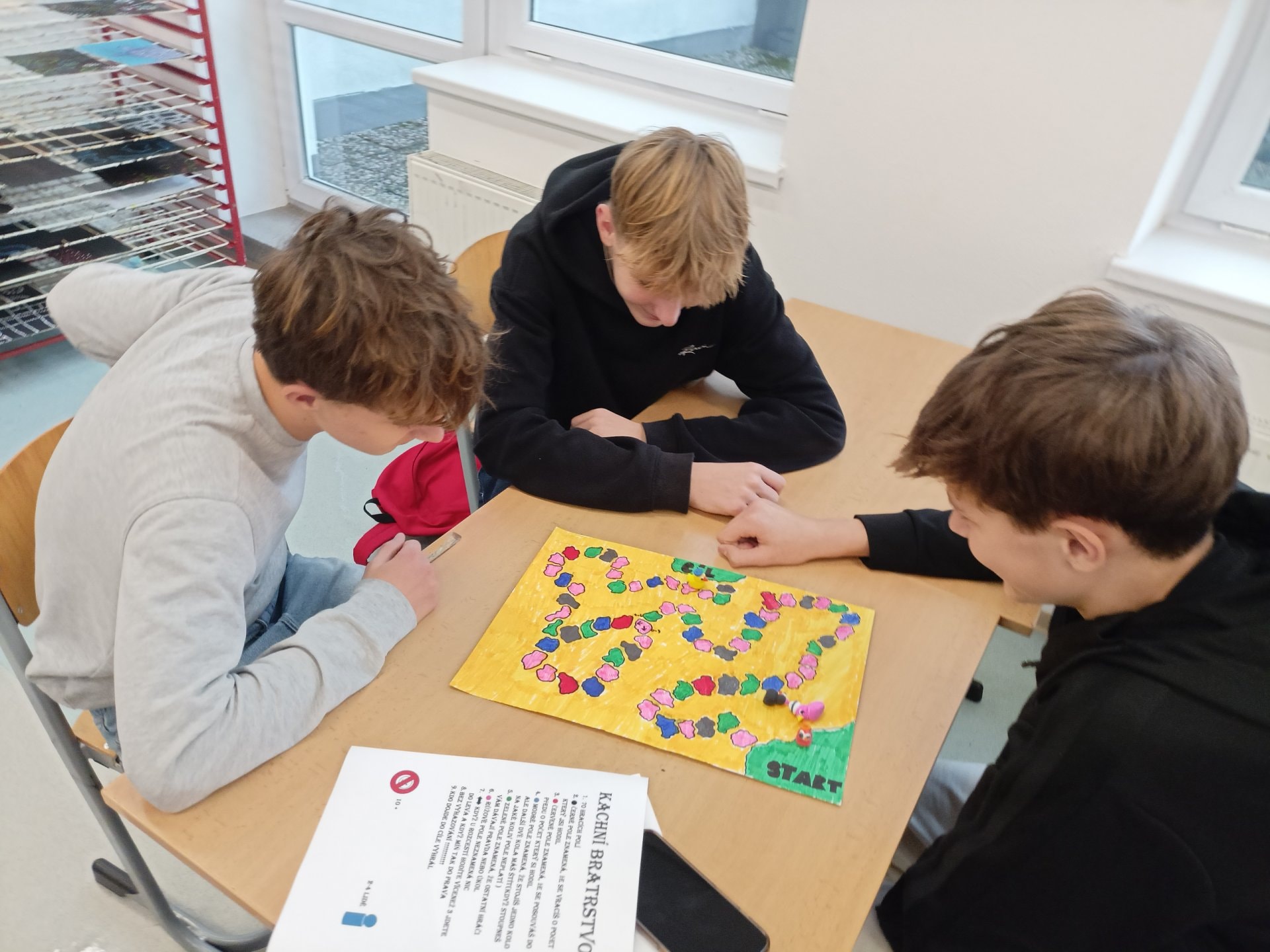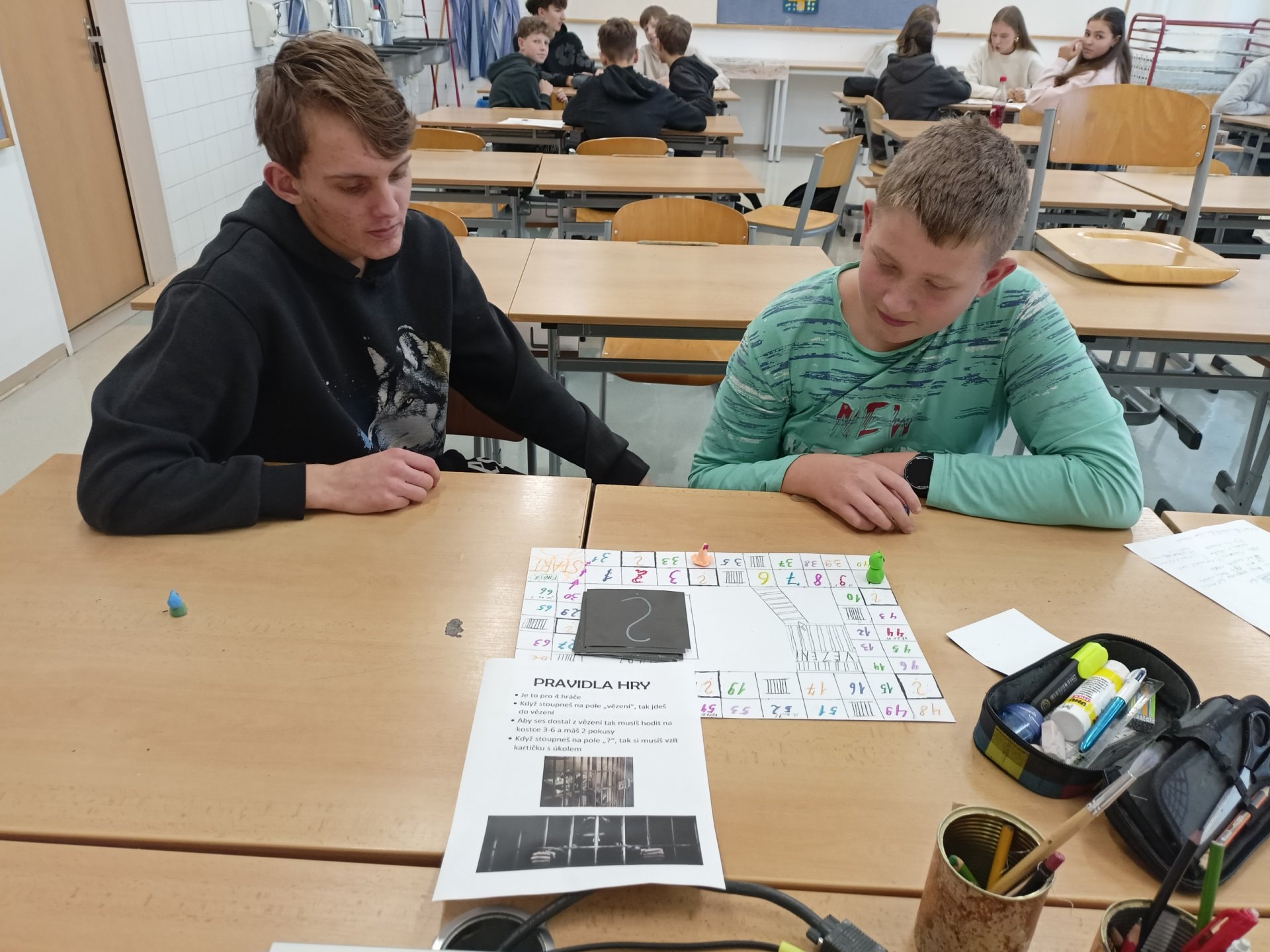 Každá skupina si vytvořila figurky, dokonce i kostky, hrací pole, potřebné rekvizity, kartičky s úkoly a také na počítači skvěle zpracovaná pravidla hry.