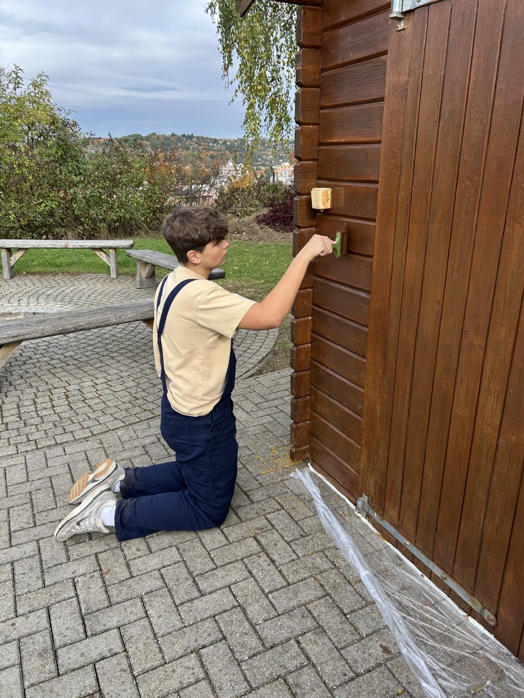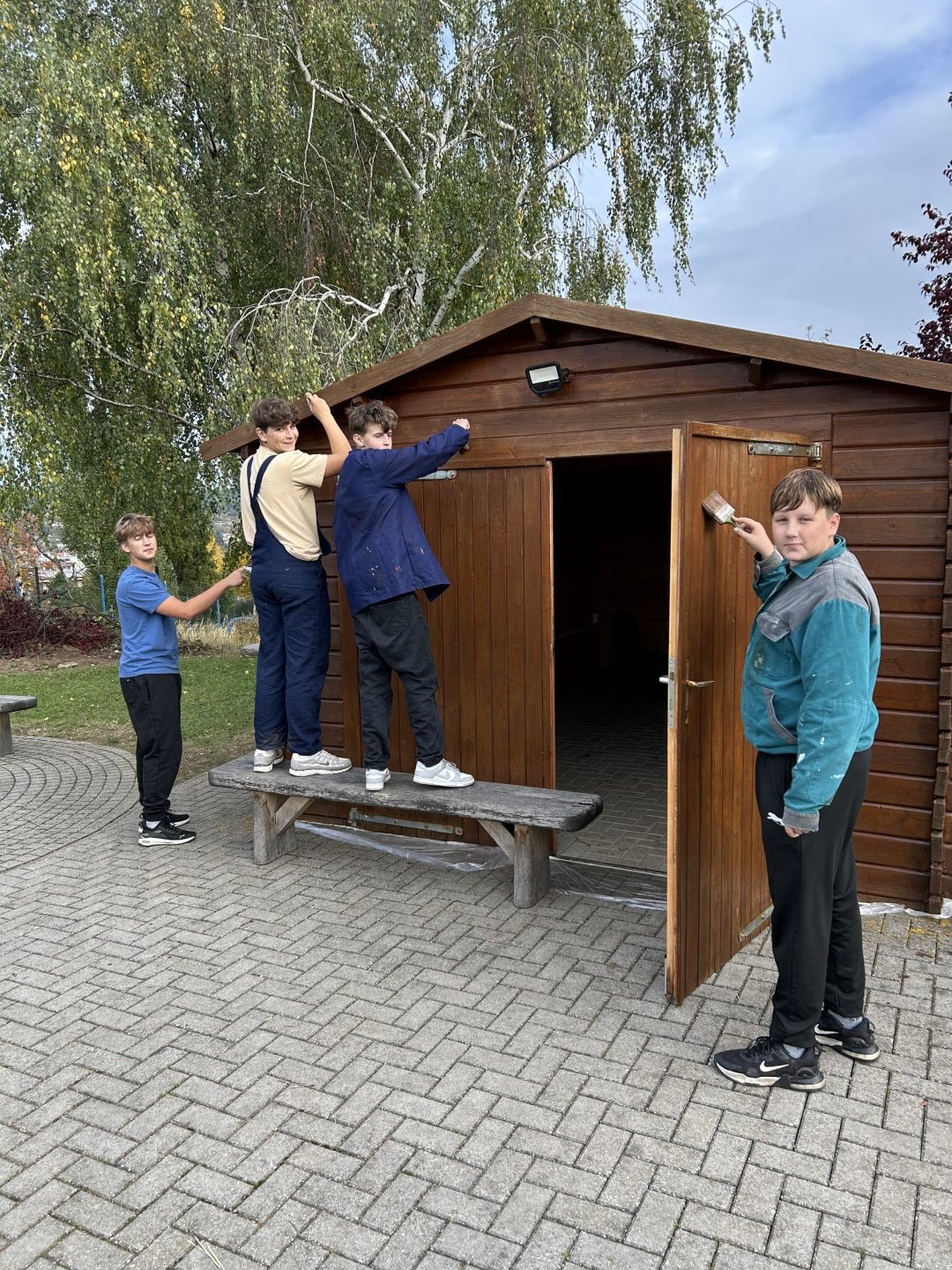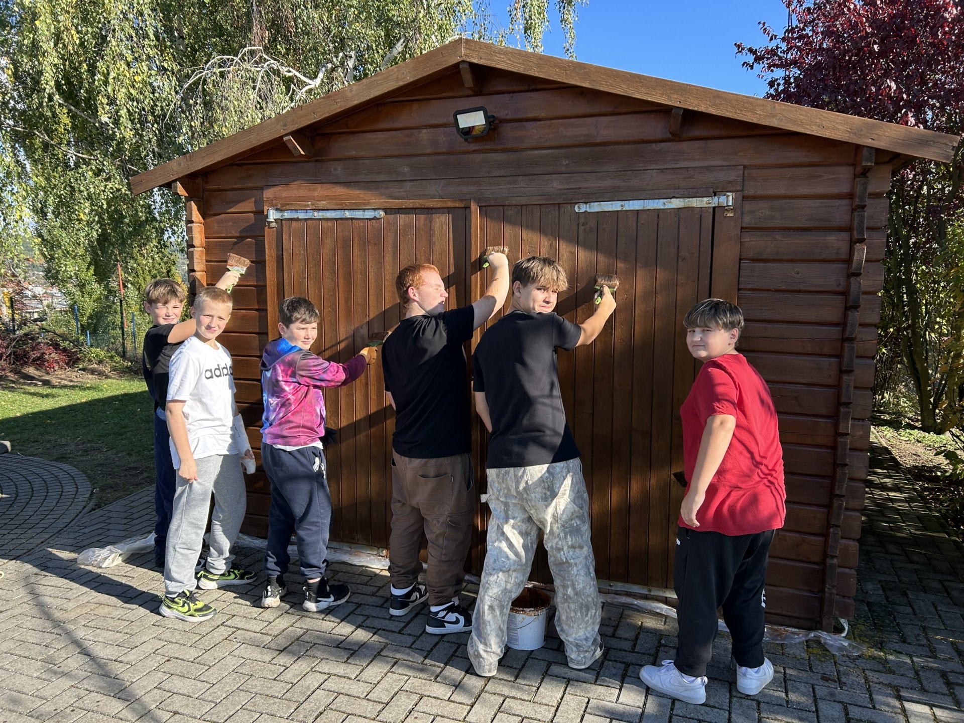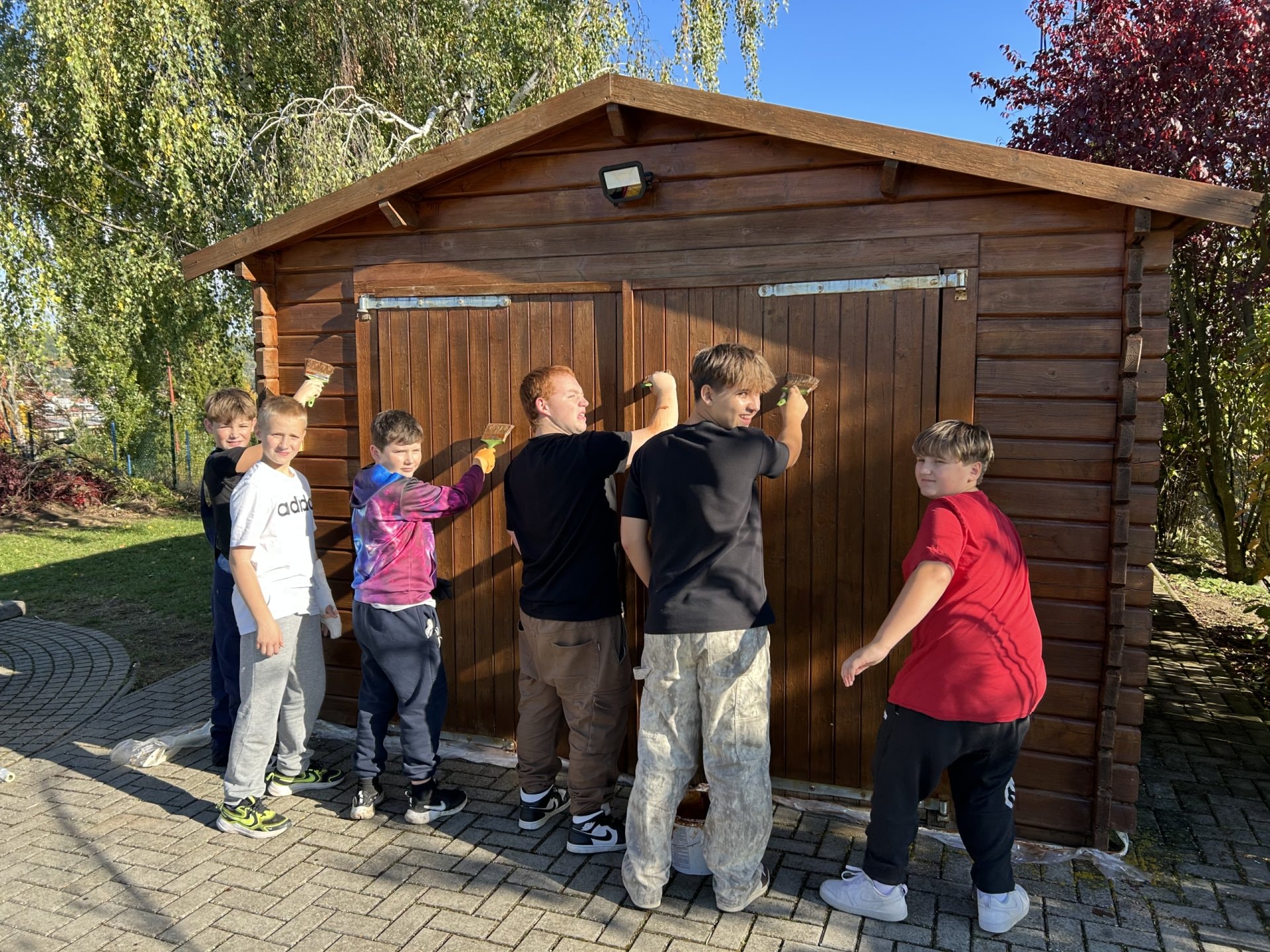 V pracovní výchově jsme se s chlapci pustili do obnovy naší dřevěné boudy na nářadí. Společně jsme ji obrousili, očistili a znovu natřeli, aby byla nejen chráněná před počasím, ale také aby okolí naší školní zahrady působilo upraveně a příjemně. Kluci si během práce vyzkoušeli různé nástroje a postupy a zároveň si uvědomili, že starat se o prostředí kolem nás má skutečný smysl. Naučili se, že poctivá práce a péče o věci kolem nás jsou dovednosti, které se jim budou hodit v každodenním životě. Když jsme nakonec společně ustoupili o krok zpátky a podívali se na hotovou, krásně obnovenou boudu, měli jsme radost nejen z výsledku, ale i z toho, že jsme ho vytvořili společně jako jedna parta.