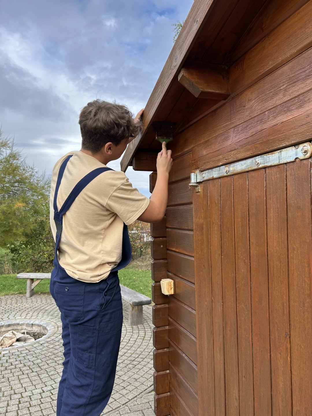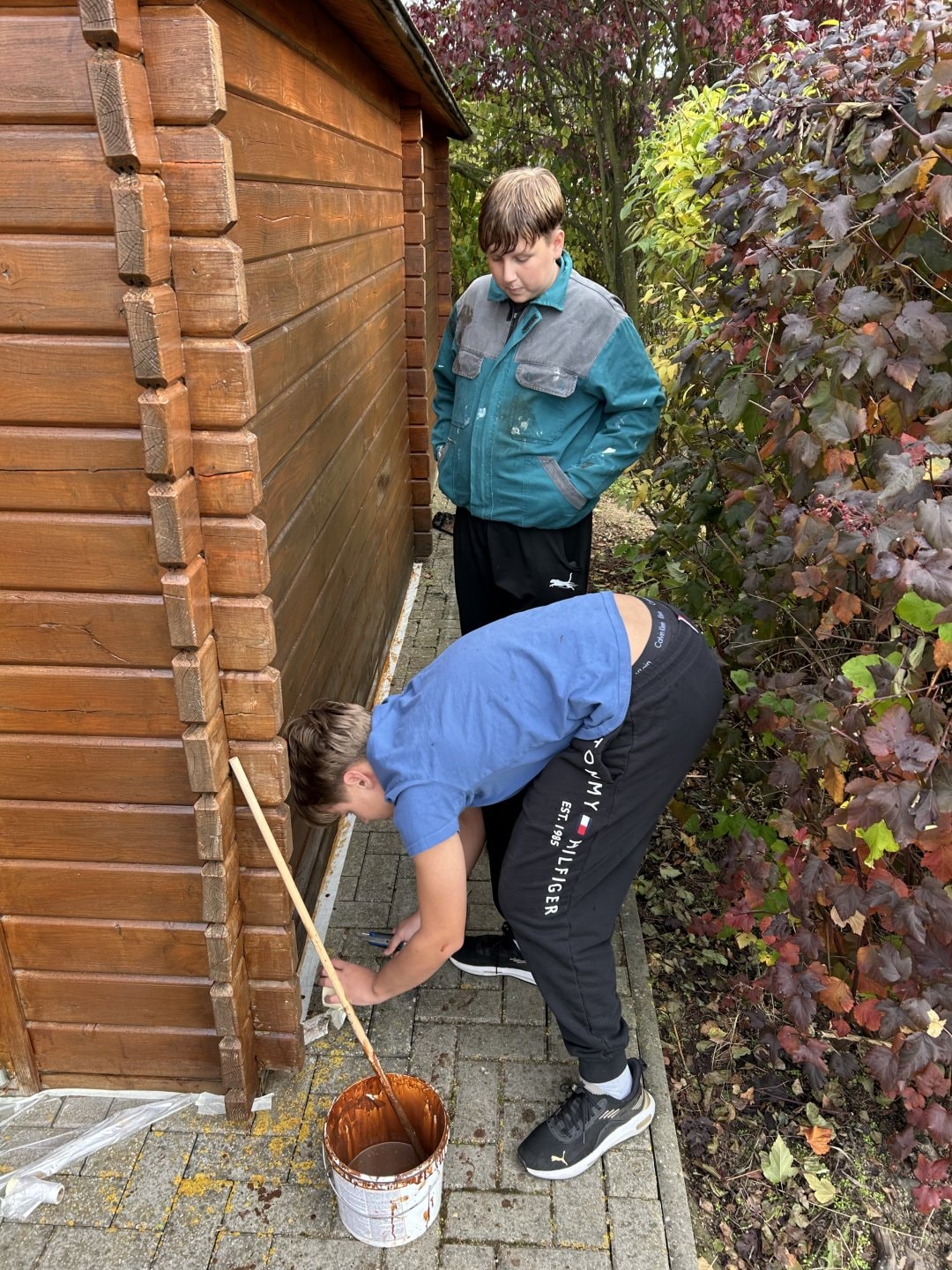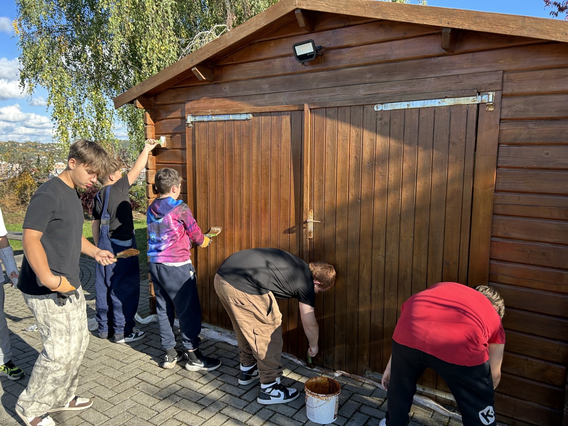 V pracovní výchově jsme se s chlapci pustili do obnovy naší dřevěné boudy na nářadí. Společně jsme ji obrousili, očistili a znovu natřeli, aby byla nejen chráněná před počasím, ale také aby okolí naší školní zahrady působilo upraveně a příjemně. Kluci si během práce vyzkoušeli různé nástroje a postupy a zároveň si uvědomili, že starat se o prostředí kolem nás má skutečný smysl. Naučili se, že poctivá práce a péče o věci kolem nás jsou dovednosti, které se jim budou hodit v každodenním životě. Když jsme nakonec společně ustoupili o krok zpátky a podívali se na hotovou, krásně obnovenou boudu, měli jsme radost nejen z výsledku, ale i z toho, že jsme ho vytvořili společně jako jedna parta.