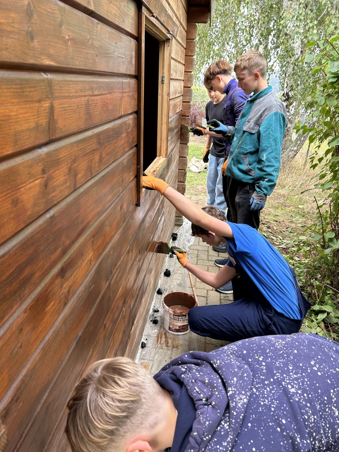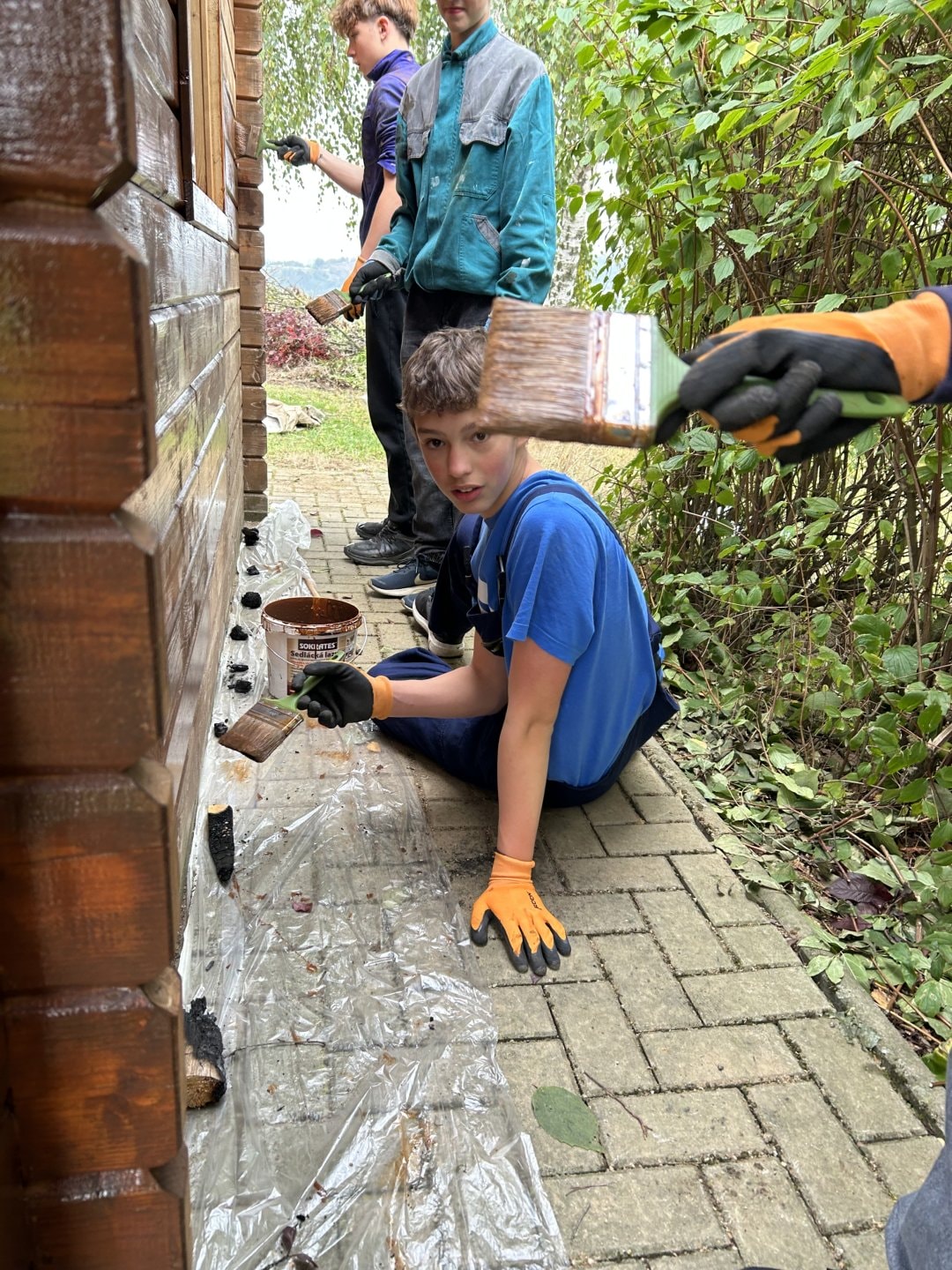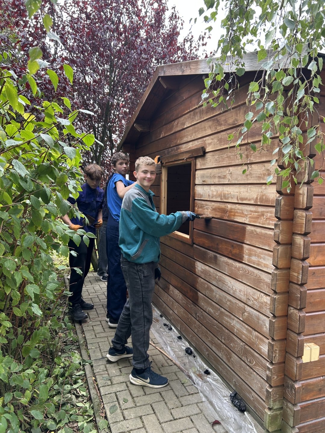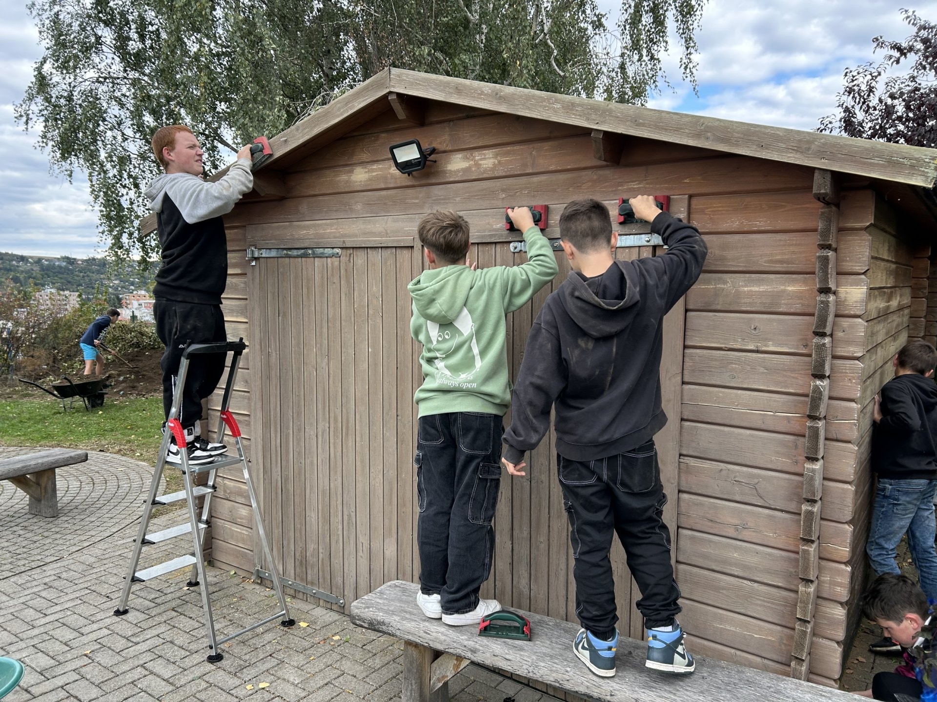 V pracovní výchově jsme se s chlapci pustili do obnovy naší dřevěné boudy na nářadí. Společně jsme ji obrousili, očistili a znovu natřeli, aby byla nejen chráněná před počasím, ale také aby okolí naší školní zahrady působilo upraveně a příjemně. Kluci si během práce vyzkoušeli různé nástroje a postupy a zároveň si uvědomili, že starat se o prostředí kolem nás má skutečný smysl. Naučili se, že poctivá práce a péče o věci kolem nás jsou dovednosti, které se jim budou hodit v každodenním životě. Když jsme nakonec společně ustoupili o krok zpátky a podívali se na hotovou, krásně obnovenou boudu, měli jsme radost nejen z výsledku, ale i z toho, že jsme ho vytvořili společně jako jedna parta.