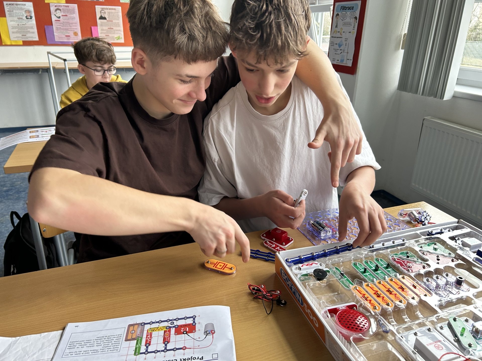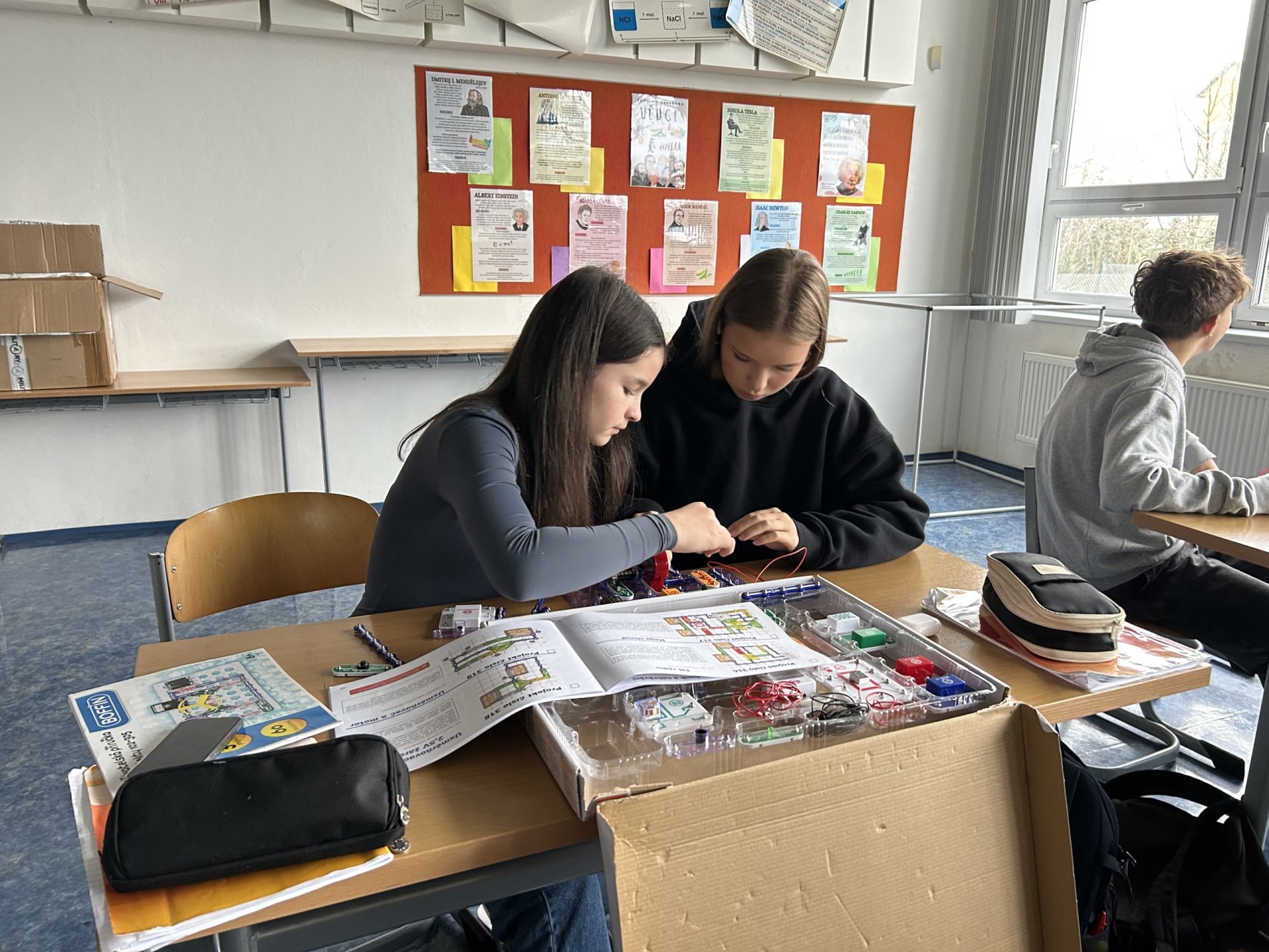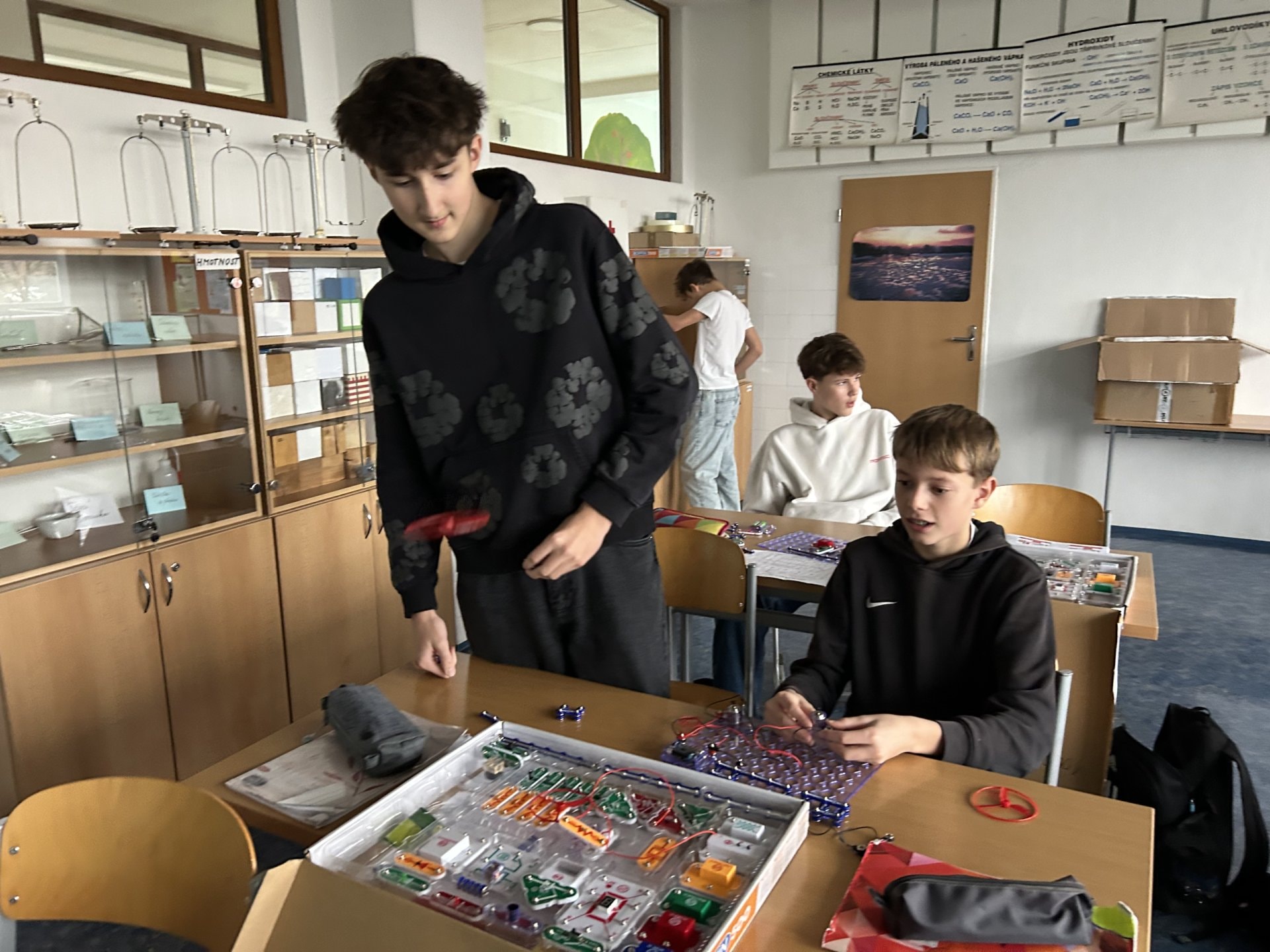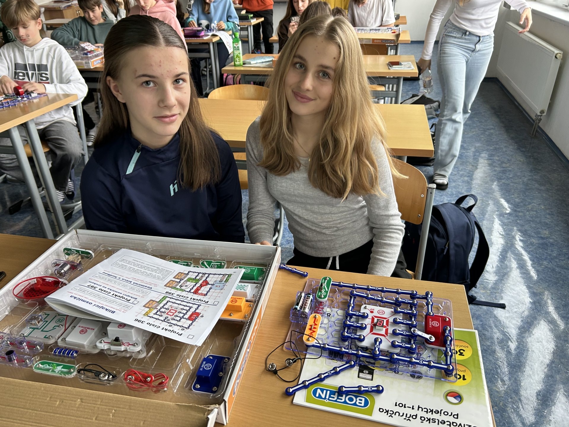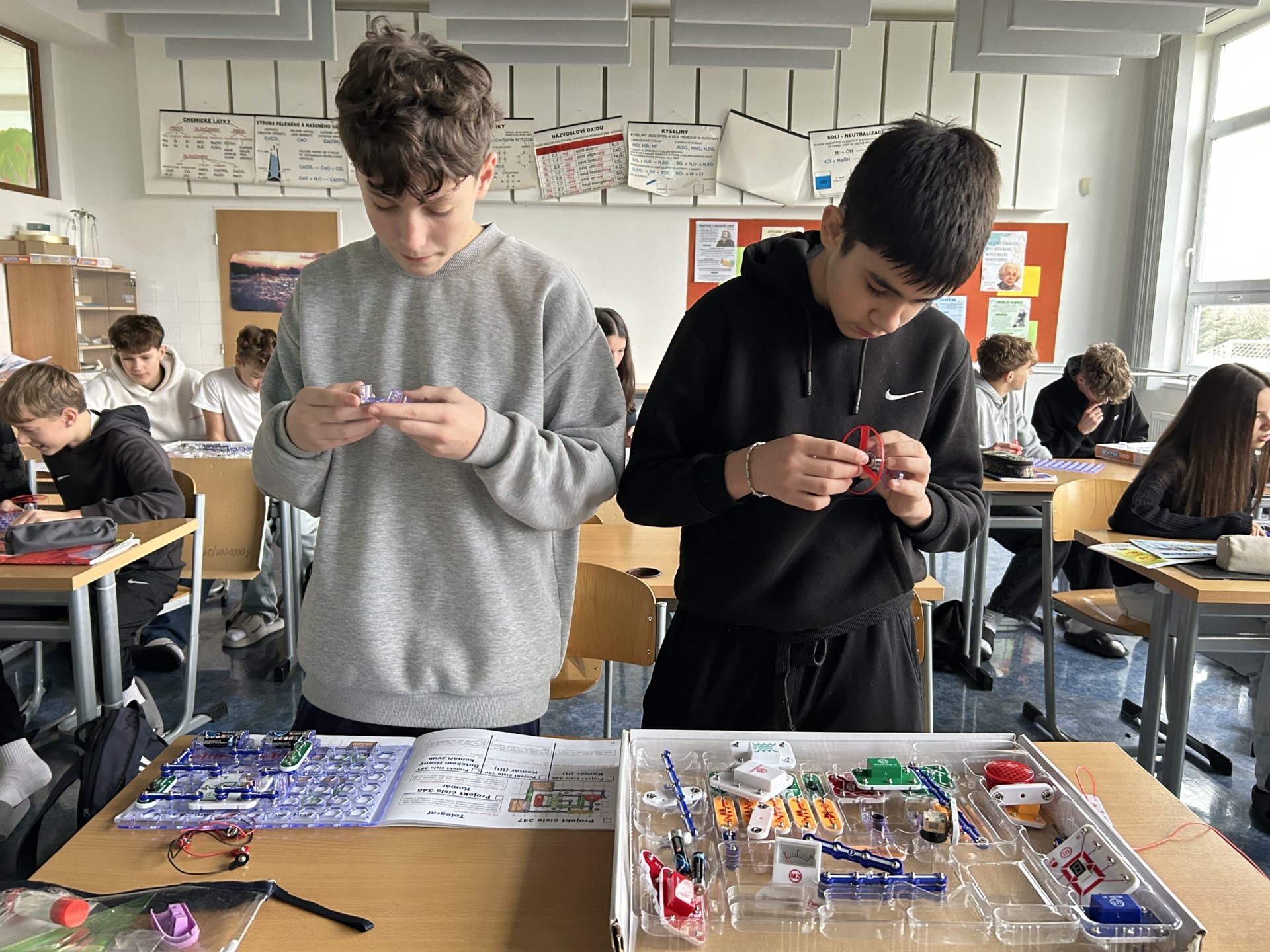 Místo klasické tabule a vzorců jsme si poslední hodinu fyziky užili jinak — elektronické stavebnice BOFIN v hlavní roli. Žáci zapojovali obvody, zkoušeli, co funguje, a hlavně se učili fyziku rukama.