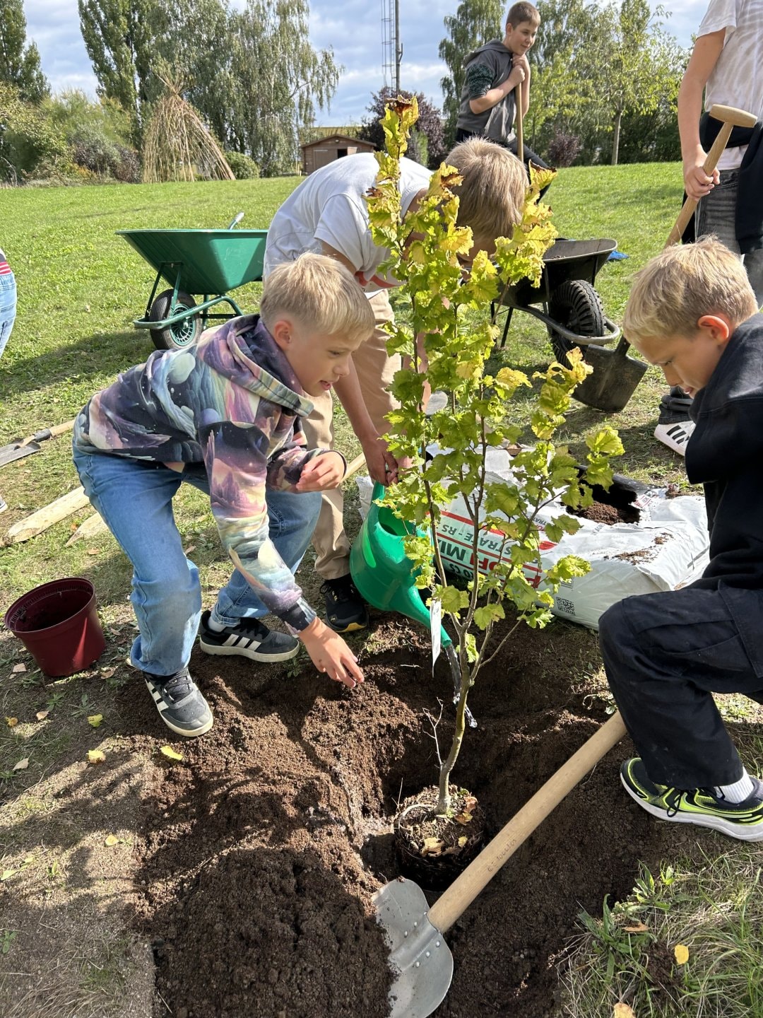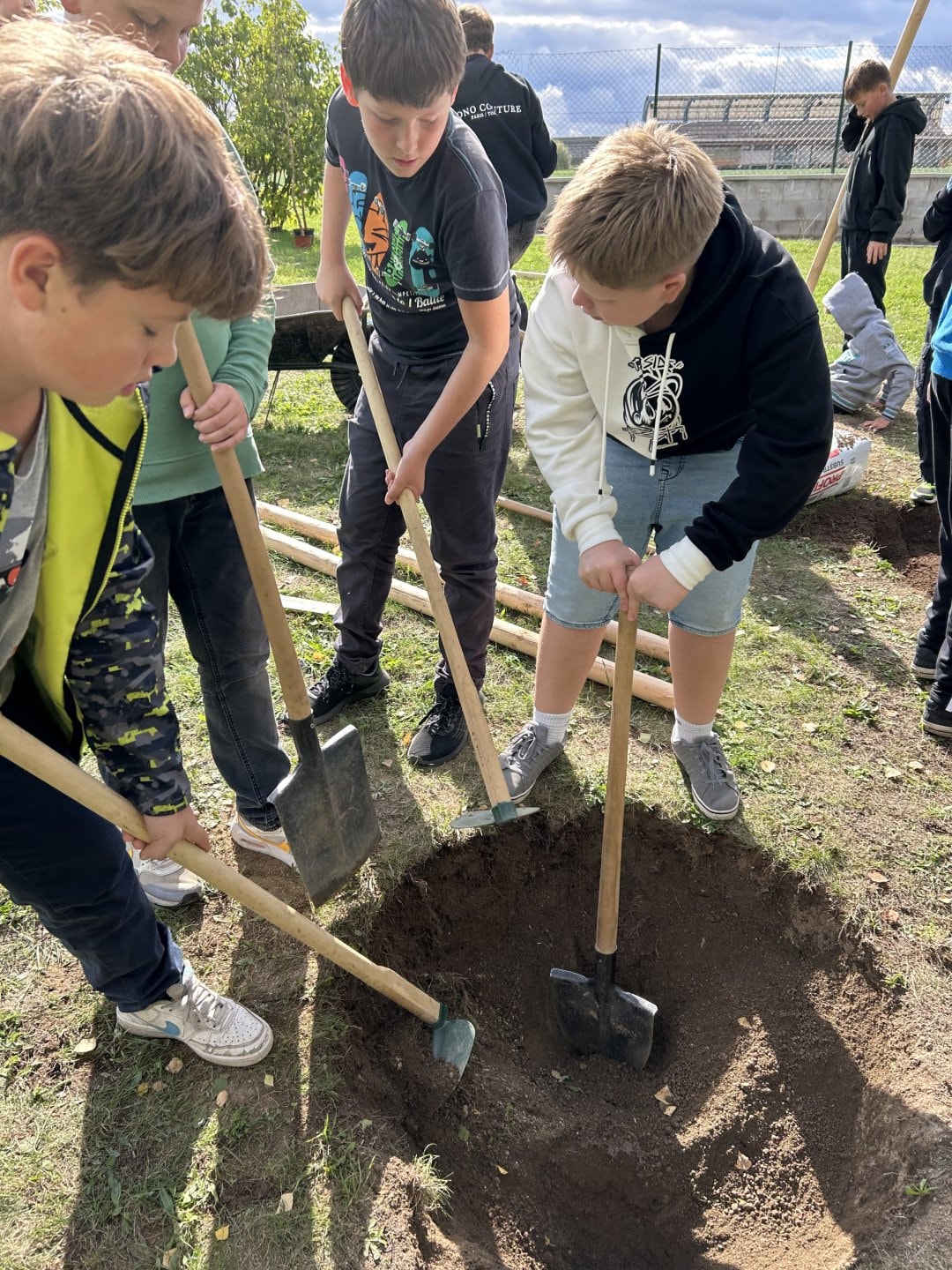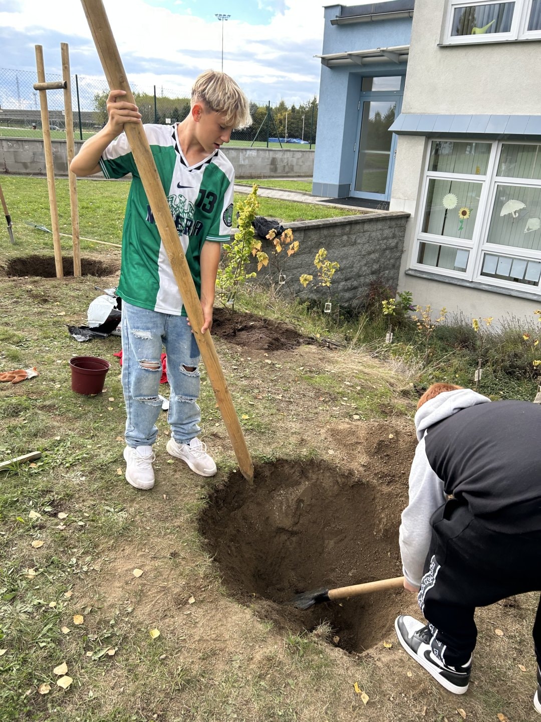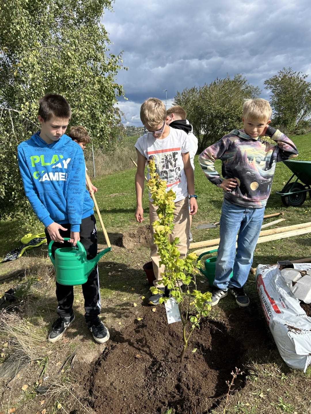 Ve školním areálu jsme se s dětmi pustili do práce, která má význam nejen pro nás, ale i pro žáky, kteří přijdou po nás v dalších letech. Rozhodli jsme se vysadit několik mladých stromků, aby na školním pozemku vzniklo místo s příjemným stínem a klidnou atmosférou. Nešlo jen o obyčejnou práci s lopatou a krompáčem, ale společnými silami jsme vytvářeli prostředí, kde se budou žáci cítit dobře ještě mnoho dalších let. Při sázení stromků jsme se bavili o tom, že každý strom roste pomalu a vyžaduje péči, ale právě díky tomu se z něj jednou stane něco, co může potěšit stovky dalších dětí. Kluci si uvědomili, že za sebou zanechávají dlouhotrvající stopu na našem pozemku. Společně jsme vytvořili místo, které bude nejen hezčí, ale třeba i inspiruje další spolužáky, rodiče a spoluobčany, aby se o své okolí také starali.
