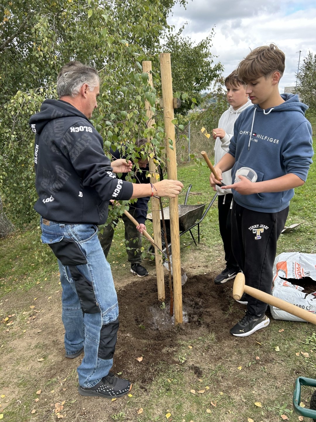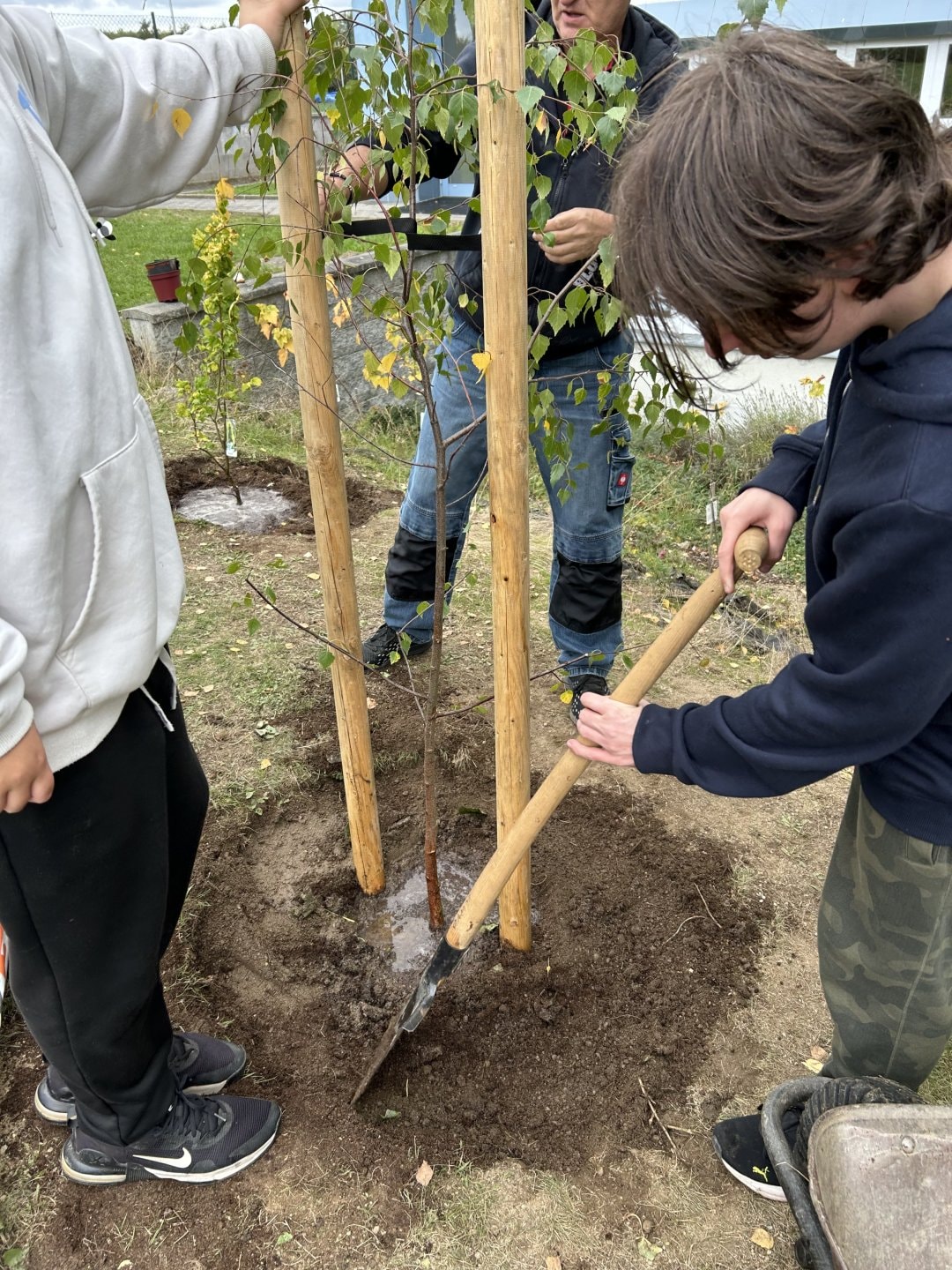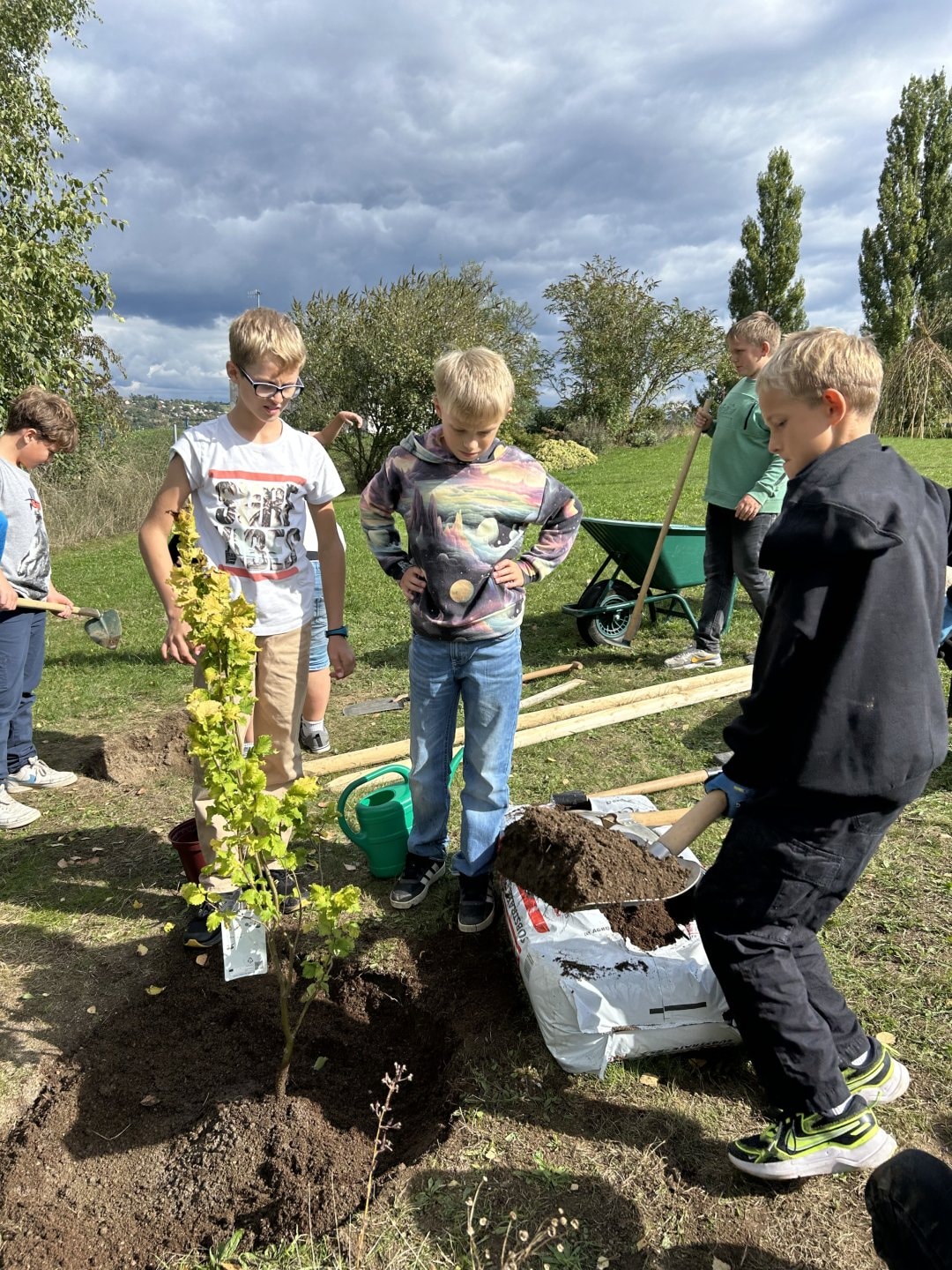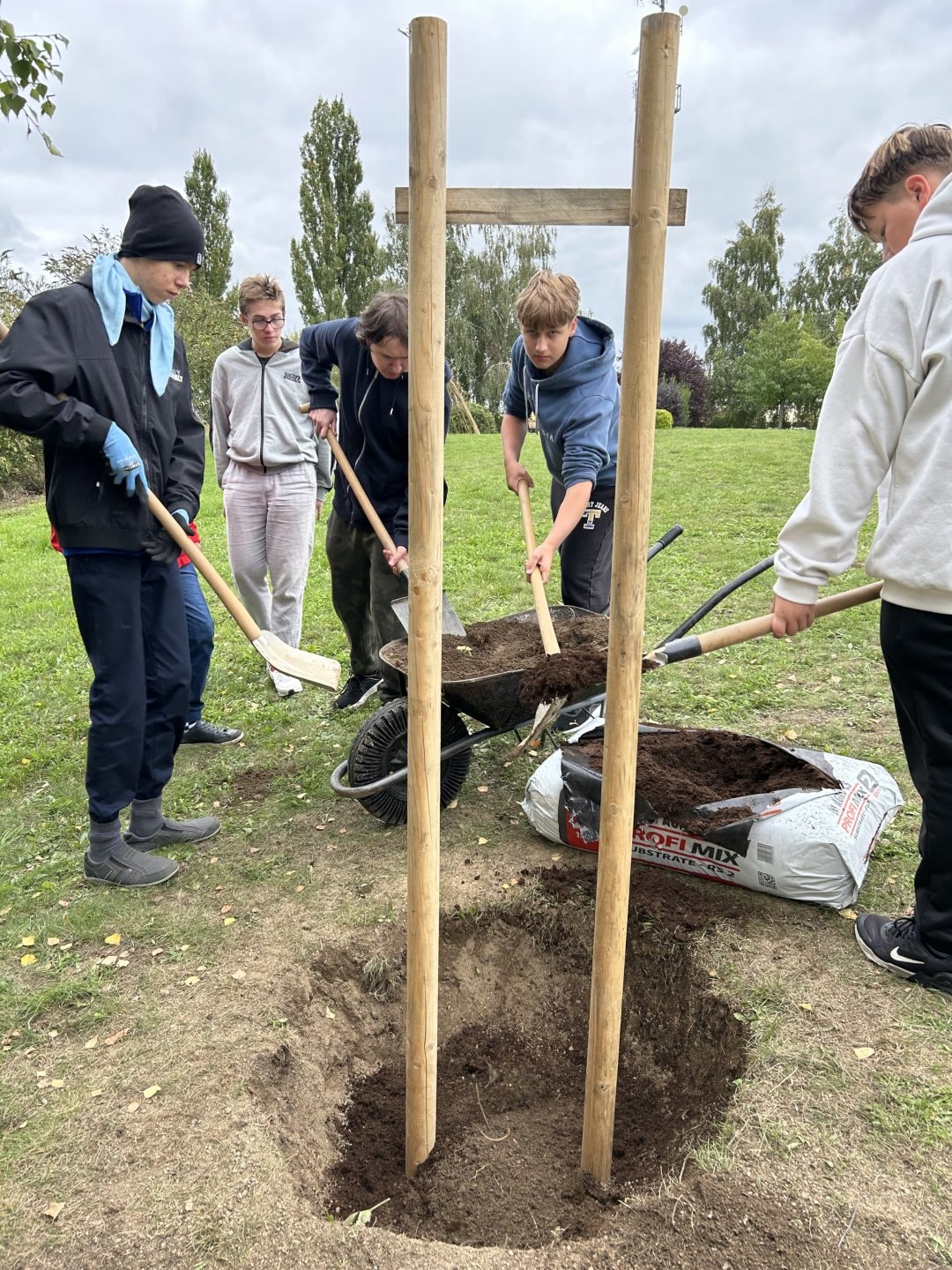 Ve školním areálu jsme se s dětmi pustili do práce, která má význam nejen pro nás, ale i pro žáky, kteří přijdou po nás v dalších letech. Rozhodli jsme se vysadit několik mladých stromků, aby na školním pozemku vzniklo místo s příjemným stínem a klidnou atmosférou. Nešlo jen o obyčejnou práci s lopatou a krompáčem, ale společnými silami jsme vytvářeli prostředí, kde se budou žáci cítit dobře ještě mnoho dalších let. Při sázení stromků jsme se bavili o tom, že každý strom roste pomalu a vyžaduje péči, ale právě díky tomu se z něj jednou stane něco, co může potěšit stovky dalších dětí. Kluci si uvědomili, že za sebou zanechávají dlouhotrvající stopu na našem pozemku. Společně jsme vytvořili místo, které bude nejen hezčí, ale třeba i inspiruje další spolužáky, rodiče a spoluobčany, aby se o své okolí také starali.