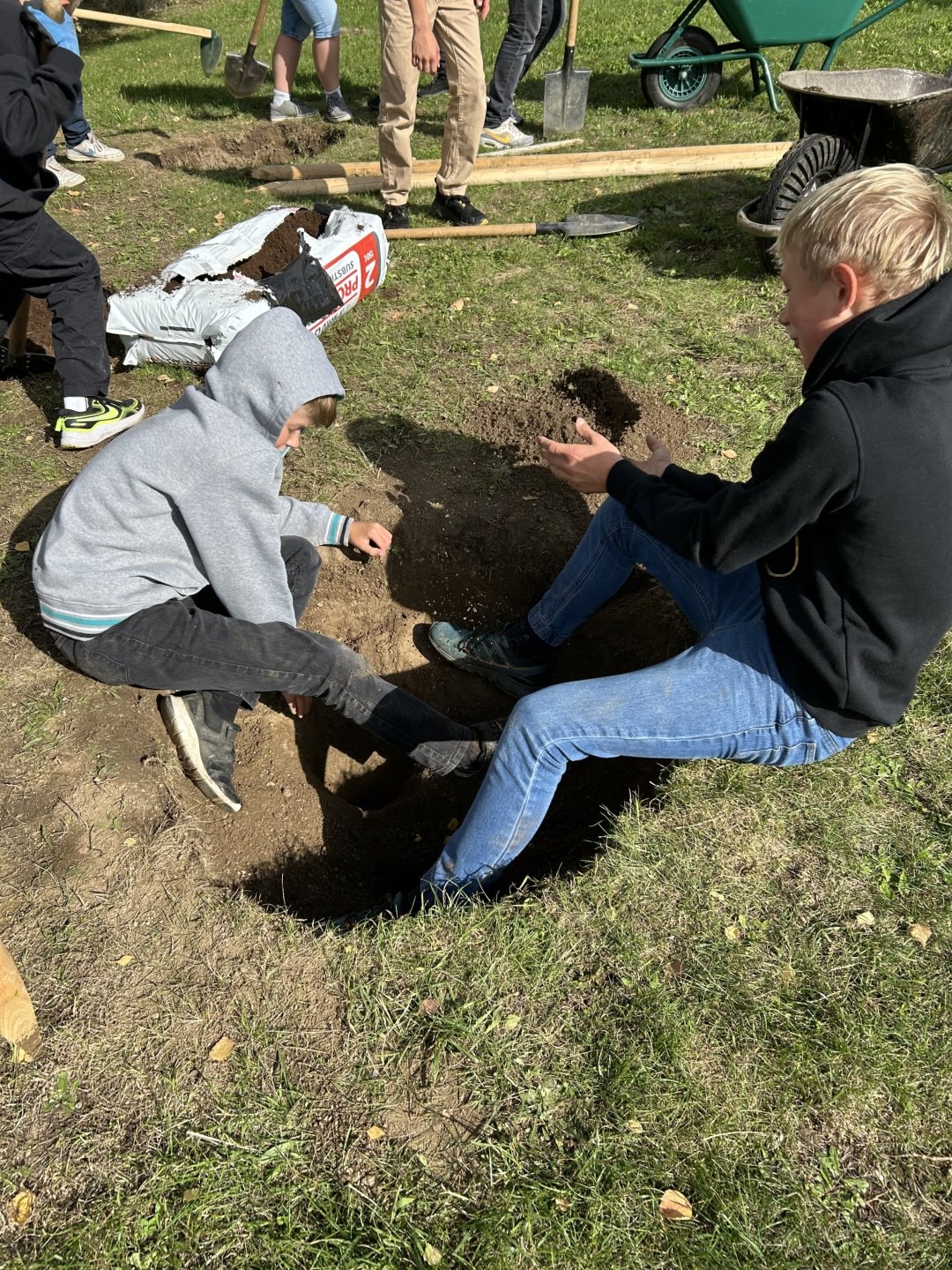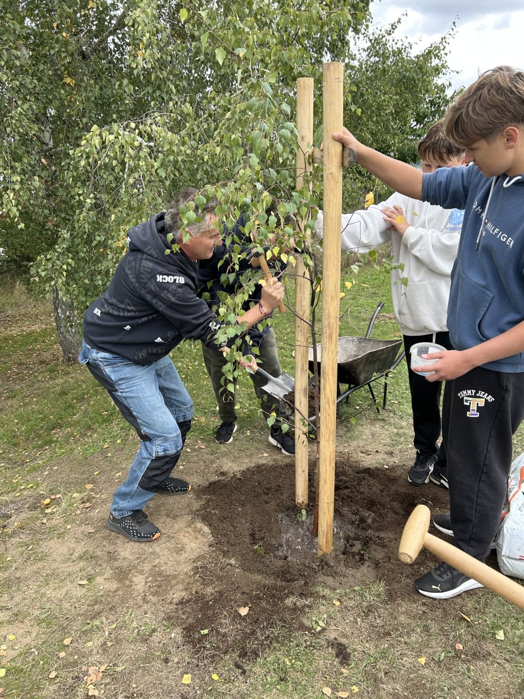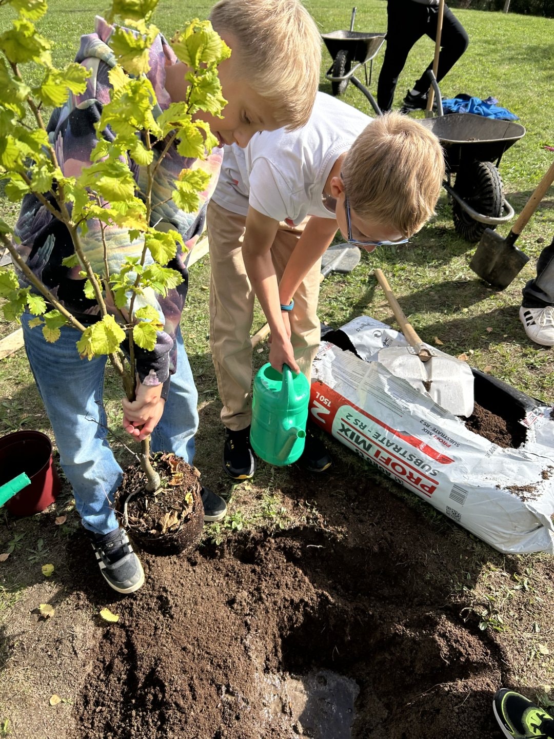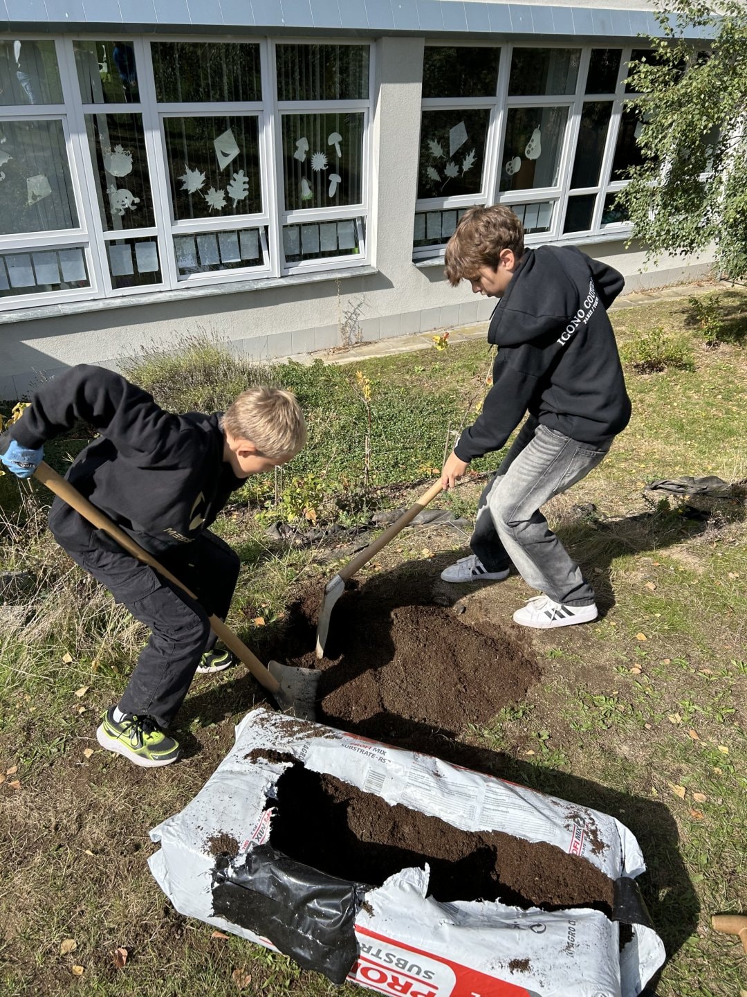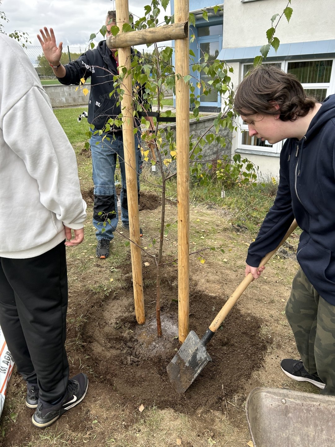 Ve školním areálu jsme se s dětmi pustili do práce, která má význam nejen pro nás, ale i pro žáky, kteří přijdou po nás v dalších letech. Rozhodli jsme se vysadit několik mladých stromků, aby na školním pozemku vzniklo místo s příjemným stínem a klidnou atmosférou. Nešlo jen o obyčejnou práci s lopatou a krompáčem, ale společnými silami jsme vytvářeli prostředí, kde se budou žáci cítit dobře ještě mnoho dalších let. Při sázení stromků jsme se bavili o tom, že každý strom roste pomalu a vyžaduje péči, ale právě díky tomu se z něj jednou stane něco, co může potěšit stovky dalších dětí. Kluci si uvědomili, že za sebou zanechávají dlouhotrvající stopu na našem pozemku. Společně jsme vytvořili místo, které bude nejen hezčí, ale třeba i inspiruje další spolužáky, rodiče a spoluobčany, aby se o své okolí také starali.