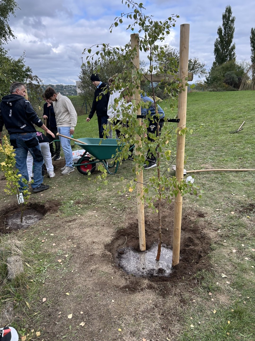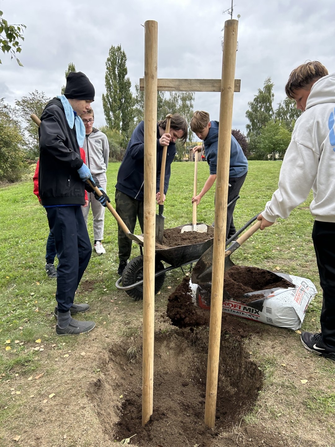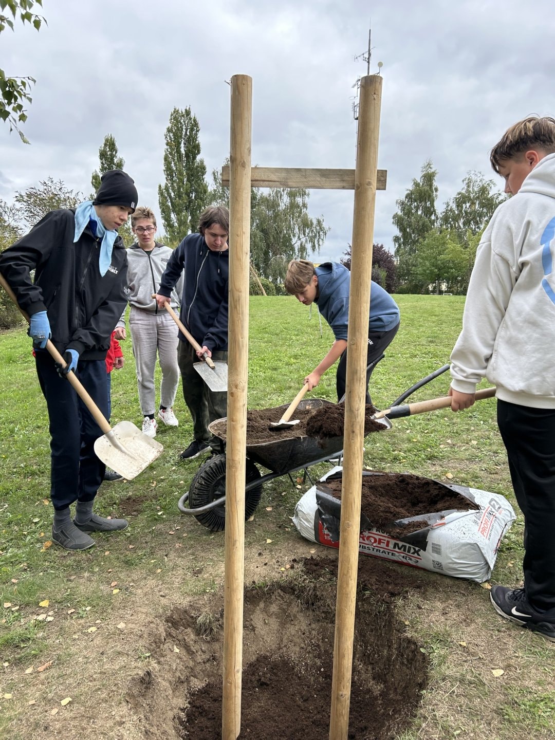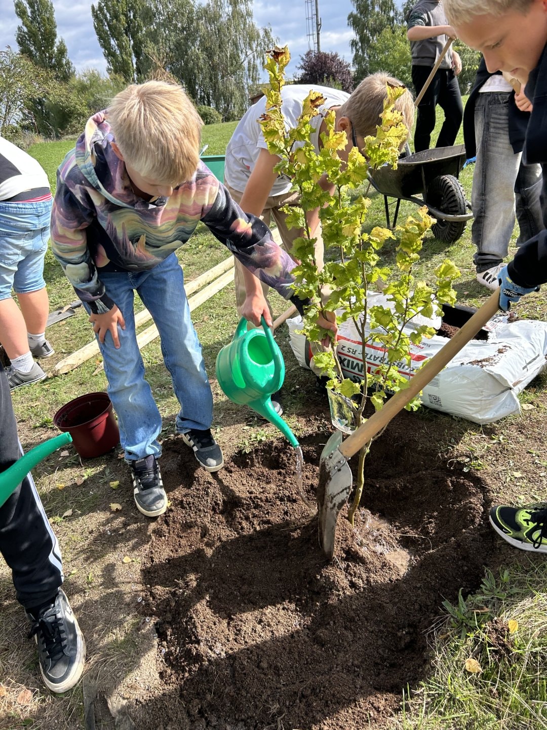 Ve školním areálu jsme se s dětmi pustili do práce, která má význam nejen pro nás, ale i pro žáky, kteří přijdou po nás v dalších letech. Rozhodli jsme se vysadit několik mladých stromků, aby na školním pozemku vzniklo místo s příjemným stínem a klidnou atmosférou. Nešlo jen o obyčejnou práci s lopatou a krompáčem, ale společnými silami jsme vytvářeli prostředí, kde se budou žáci cítit dobře ještě mnoho dalších let. Při sázení stromků jsme se bavili o tom, že každý strom roste pomalu a vyžaduje péči, ale právě díky tomu se z něj jednou stane něco, co může potěšit stovky dalších dětí. Kluci si uvědomili, že za sebou zanechávají dlouhotrvající stopu na našem pozemku. Společně jsme vytvořili místo, které bude nejen hezčí, ale třeba i inspiruje další spolužáky, rodiče a spoluobčany, aby se o své okolí také starali.