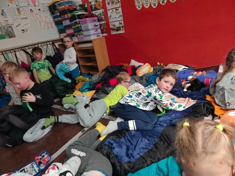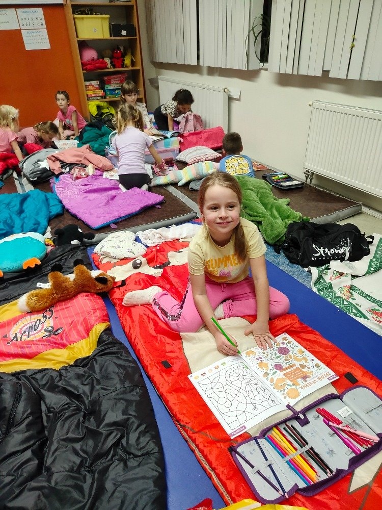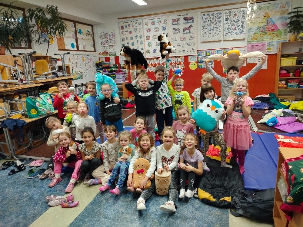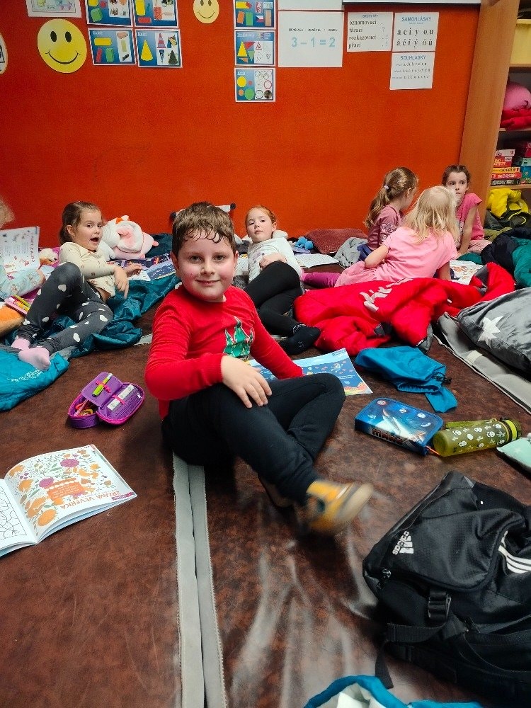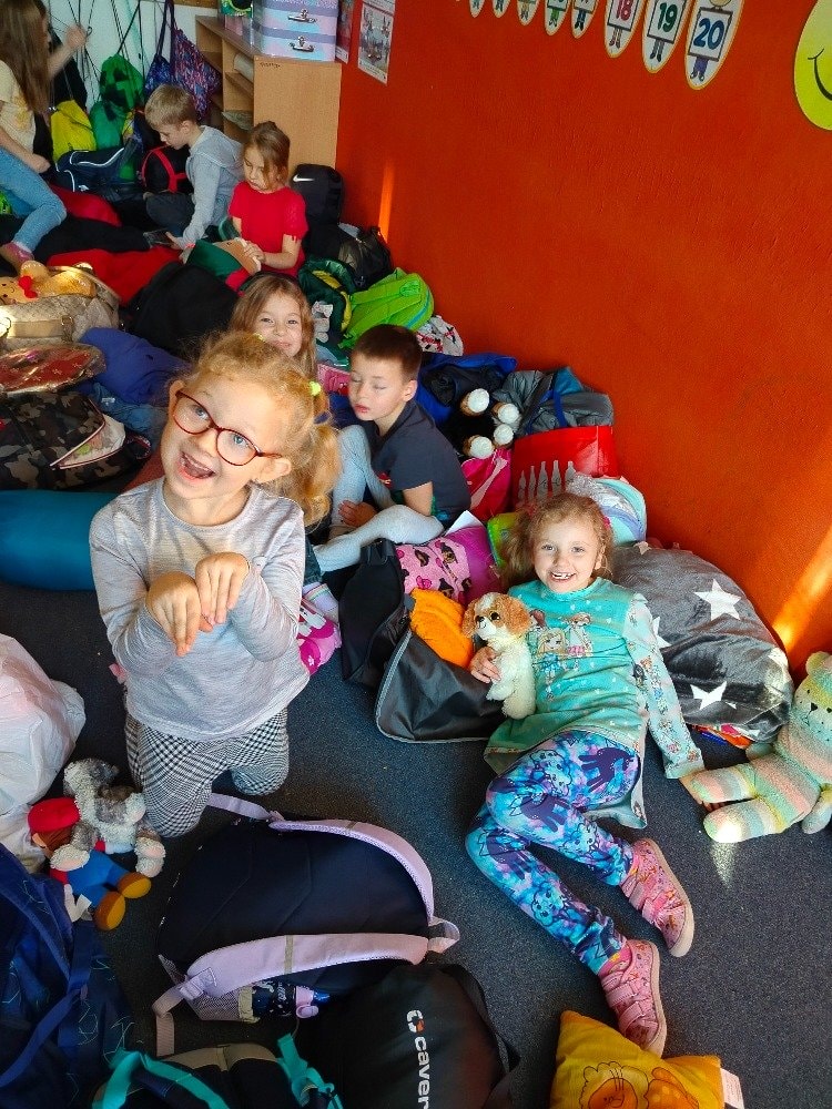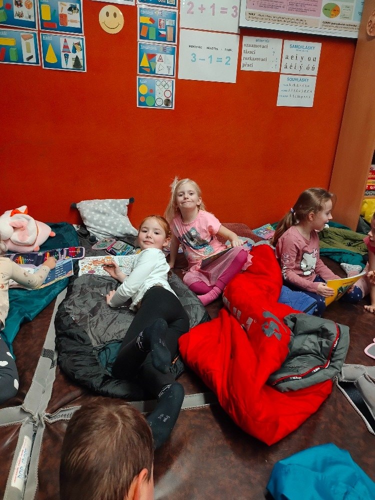 1.A Prvňáčci přespávali poprvé ve škole