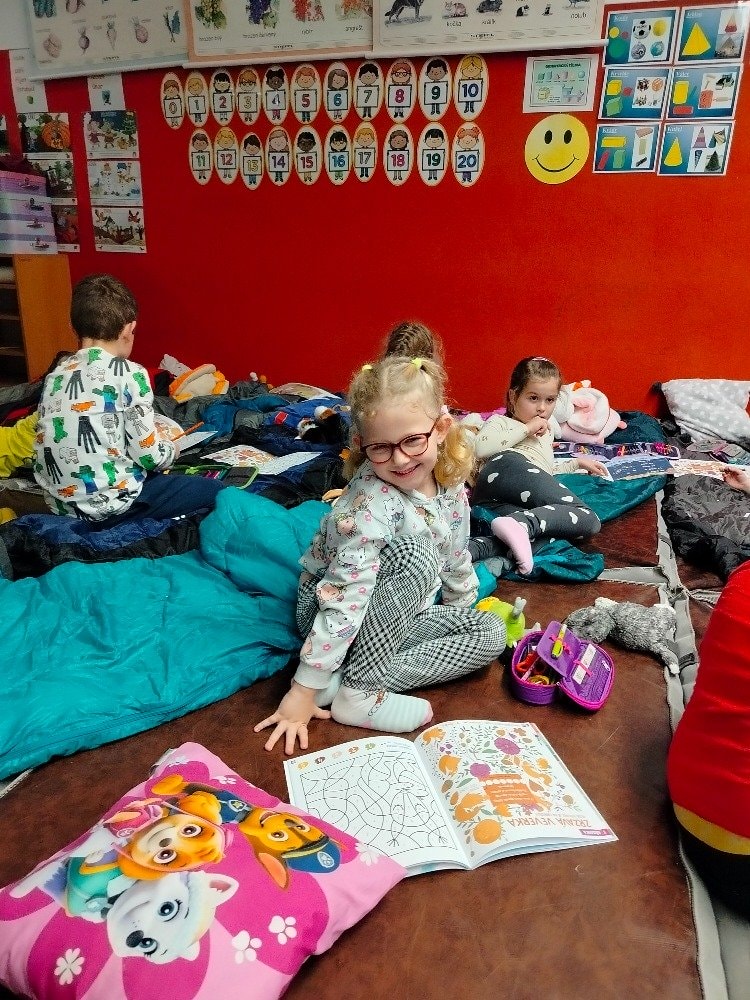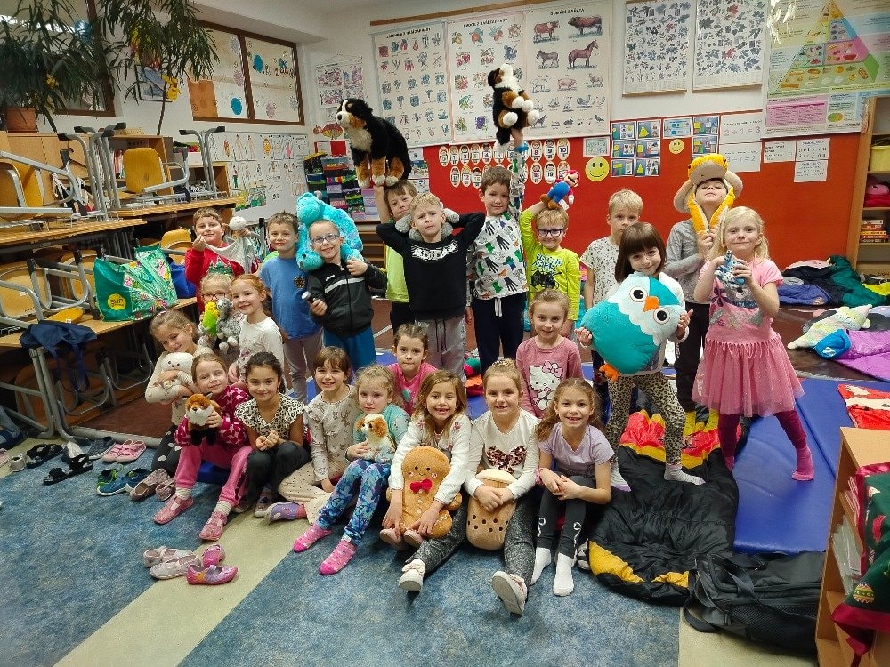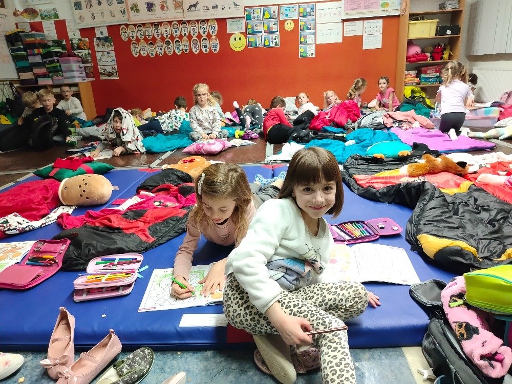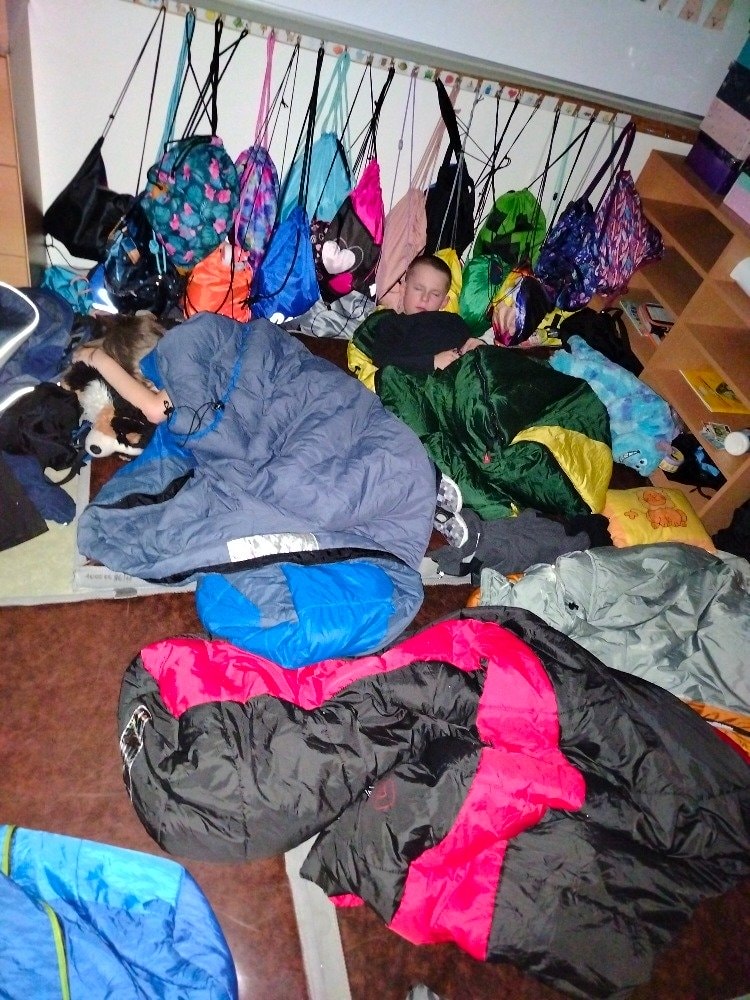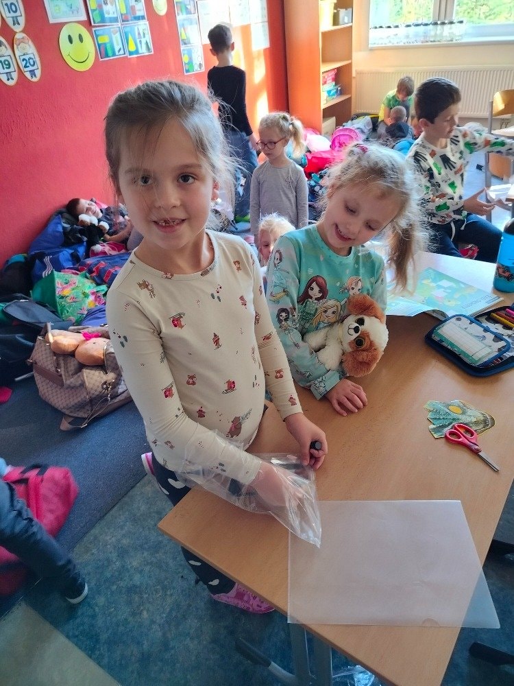 1.A Prvňáčci přespávali poprvé ve škole