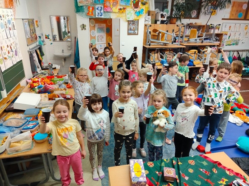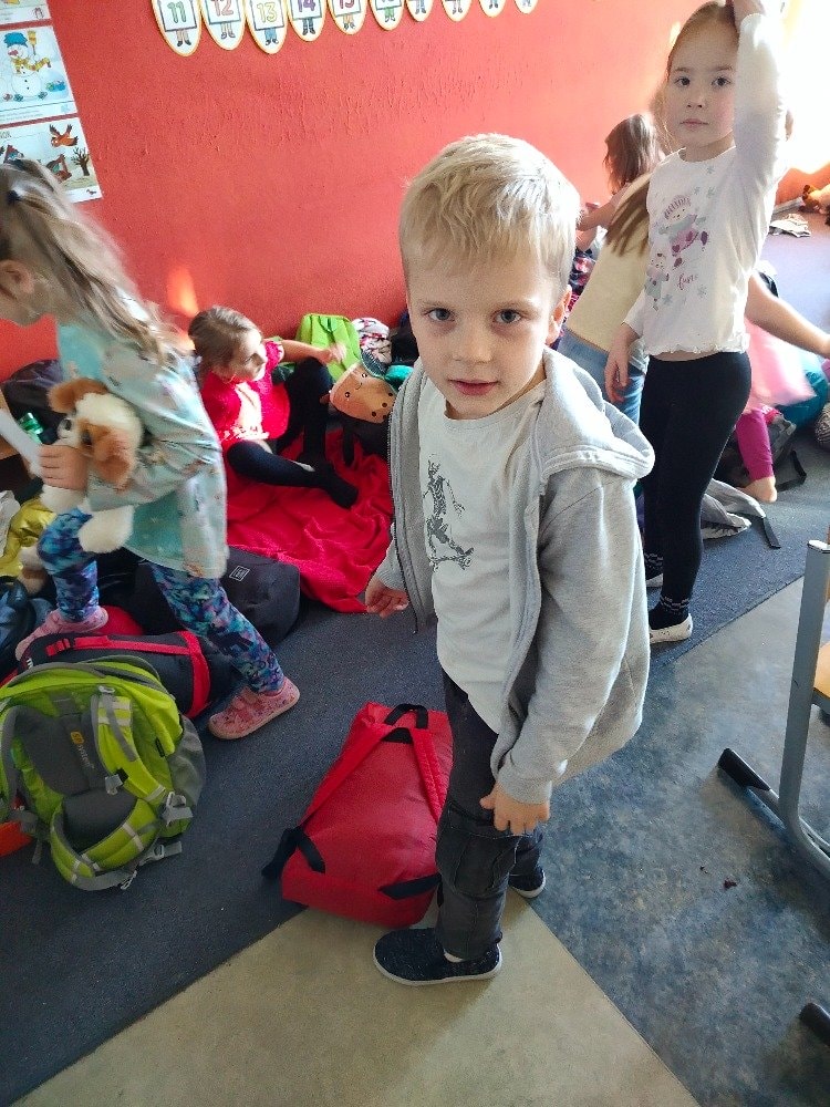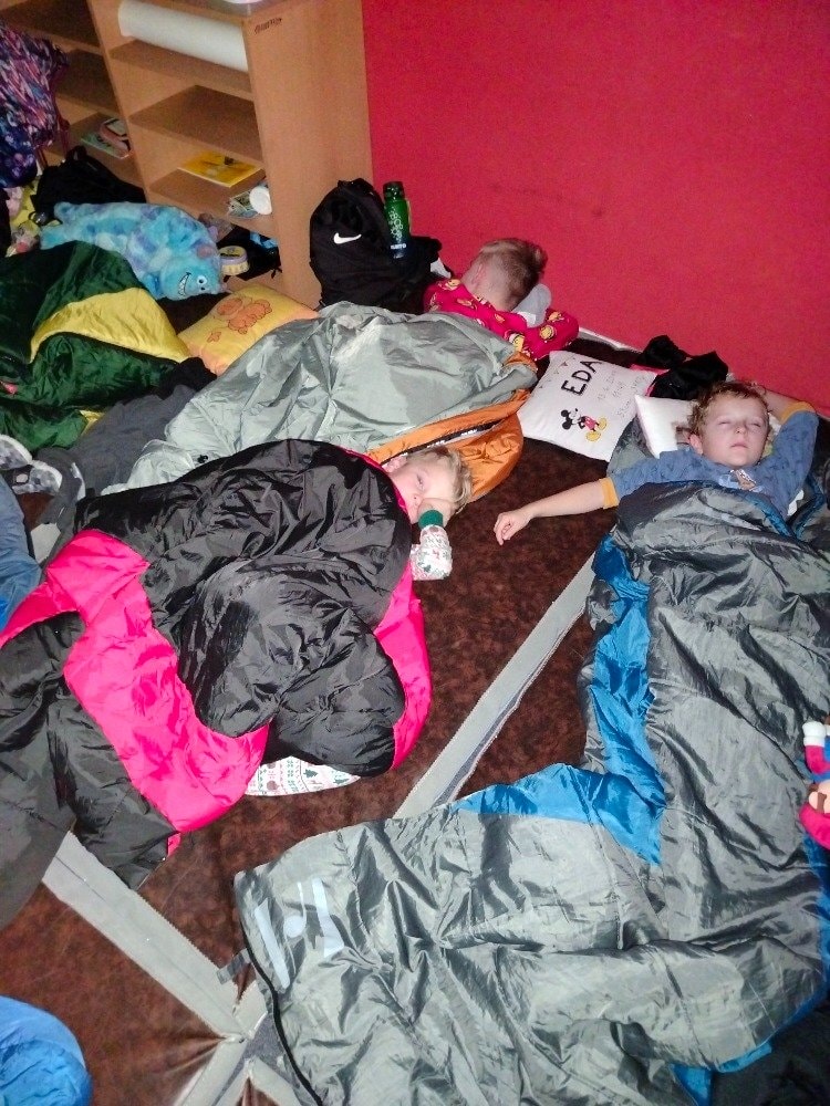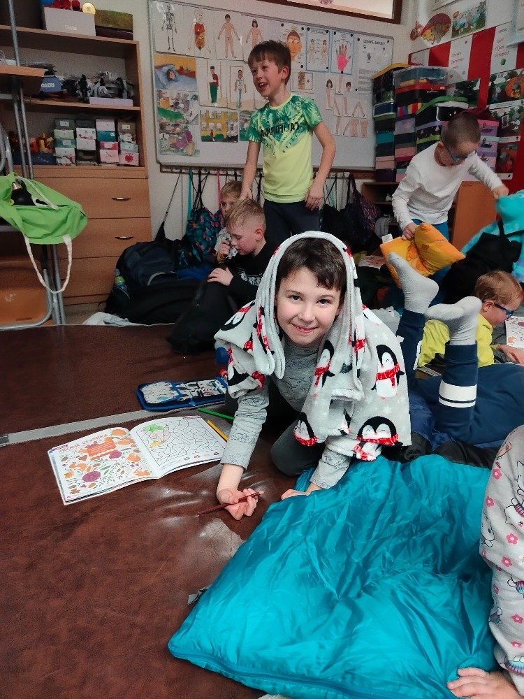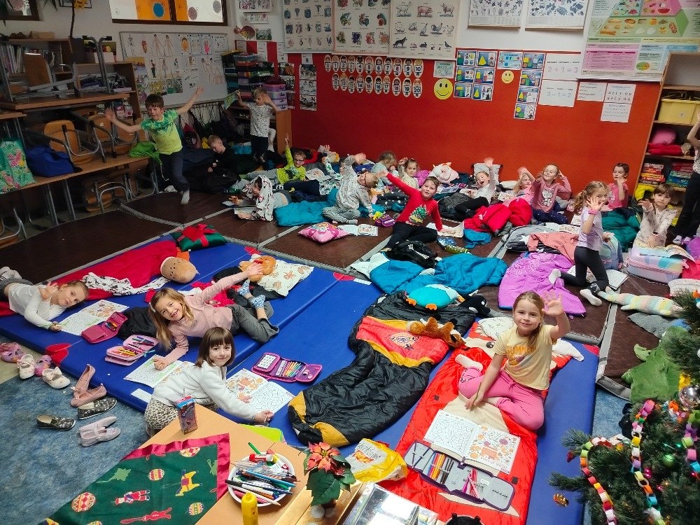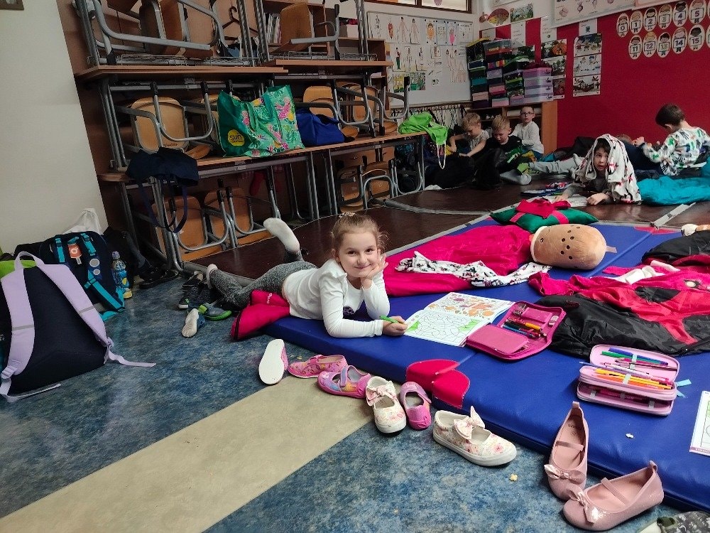 1.A Prvňáčci přespávali poprvé ve škole