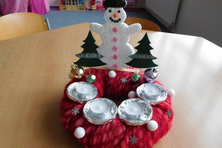 4.1.2026 Jitka Prášková Adventní věnec V kroužku Dovedné ruce si děti vyrobily adventní věnec. Je omotaný červenou vlnou, v níž se třpytí bílé kuličky a lesklé ozdoby, které vypadají, jako…