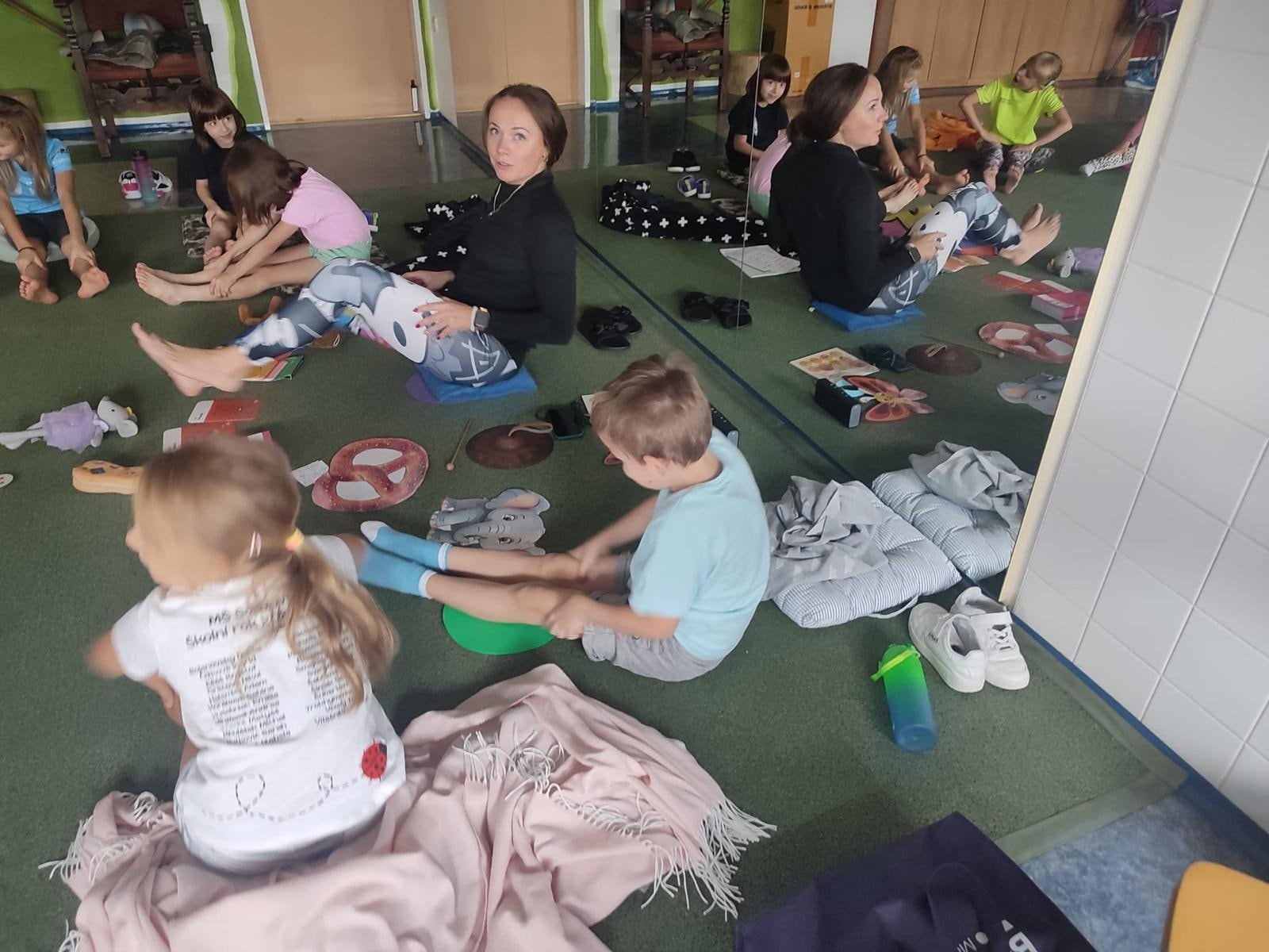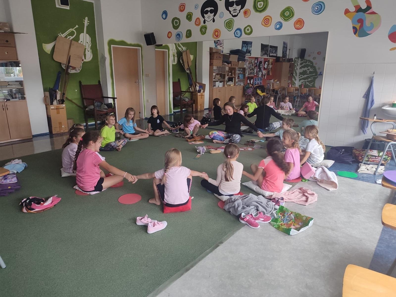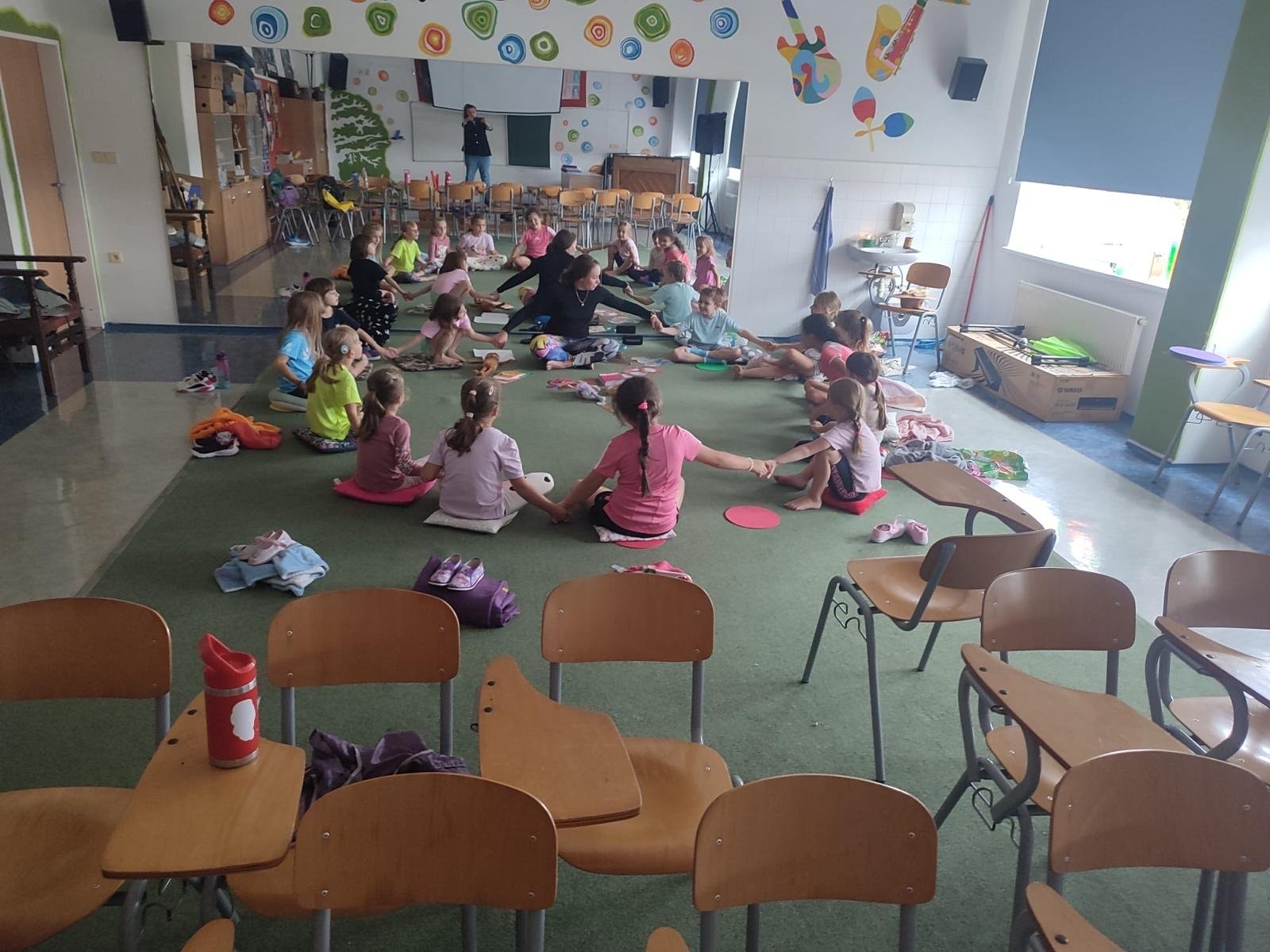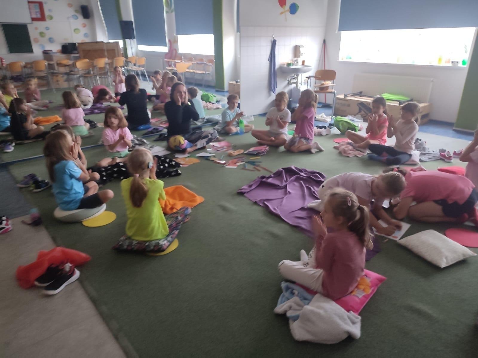 Včera proběhlo první setkání nového pohybového kroužku DĚTSKÁ JÓGA HROU, který je určen pro naše malé školáky. Děti se sešly v hojném počtu a s nadšením se pustily do objevování základů dětské jógy. Během úvodní hodiny jsme se společně seznámili s pravidly kroužku a zavedli si jógový deník - Jogíček, do kterého si děti budou pravidelně lepit obrázky nových cviků a jógových pozic, které se postupně naučí. Celá hodina probíhala v klidné a přátelské atmosféře. Z dětí vyzařovala pohoda a radost z pohybu – podařilo se nám na chvíli zapomenout na školní povinnosti a opravdu si společný čas užít. Těšíme se na další lekce plné pohybu, smíchu a dobré nálady!