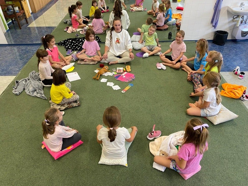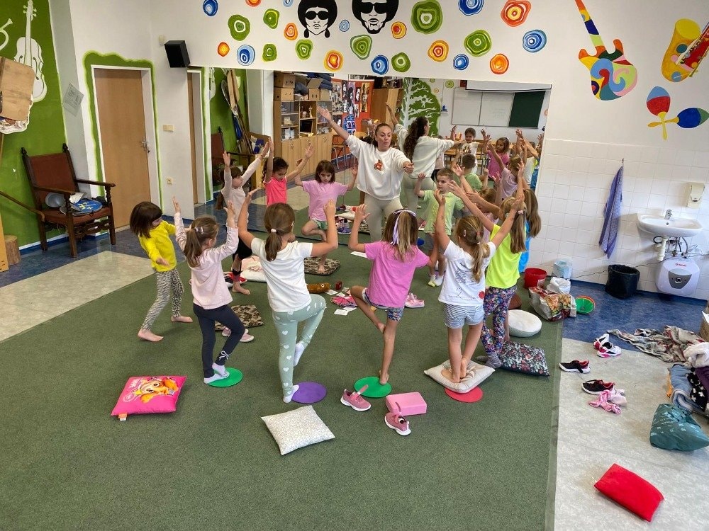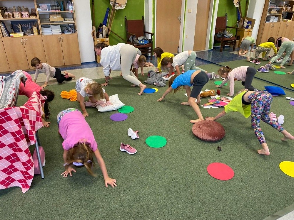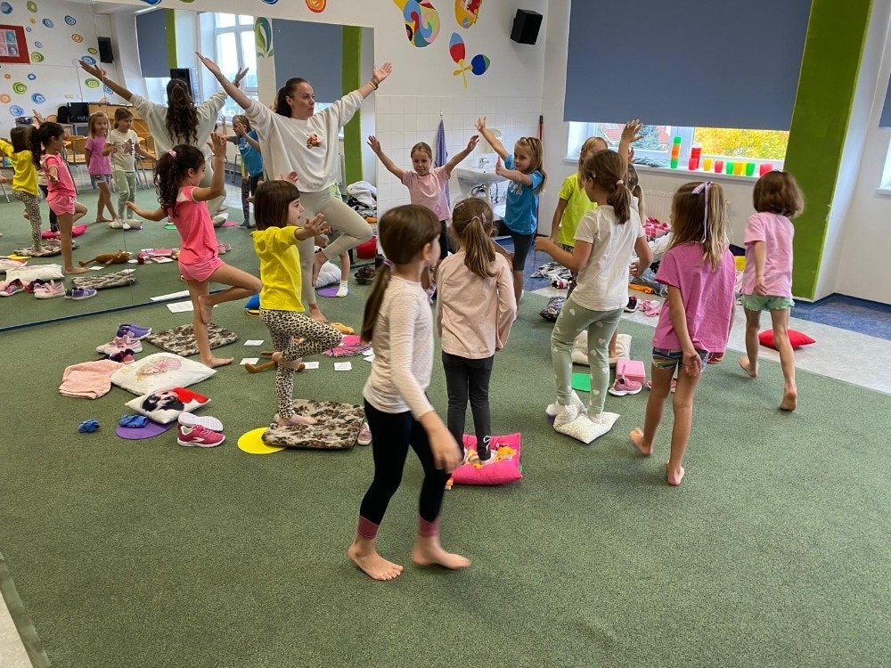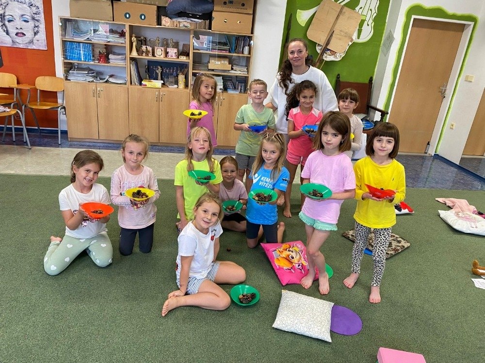 Naše druhé setkání se neslo v duchu podzimu a vůně lesa. Děti si tentokrát rozložily své podložky přímo uprostřed podzimní přírody. Společně jsme si vyzkoušeli pozice inspirované zvířátky a přírodou. Dětská jóga tak přirozeně spojuje pohyb, fantazii i respekt k přírodě kolem nás. Celou lekcí nás provázela jemná vůně lesa z aromalampy, která vytvořila kouzelnou atmosféru klidu a soustředění. Přichystané lesní plody a přírodní materiály se staly součástí našich dnešních cvičení, dechových her i krátké meditace. Na závěr jsme společně poděkovali lesu za energii a s úsměvem se rozloučili - nabití, zrelaxovaní a s radostí v srdci.