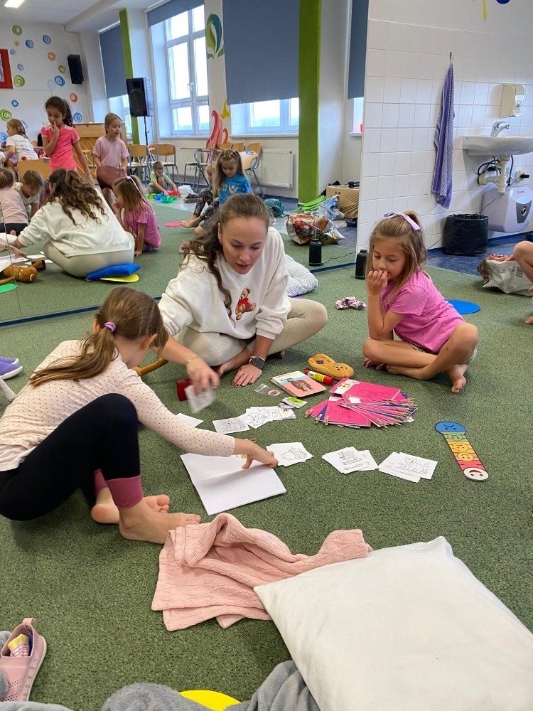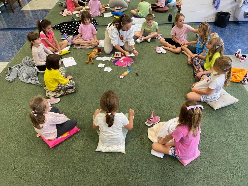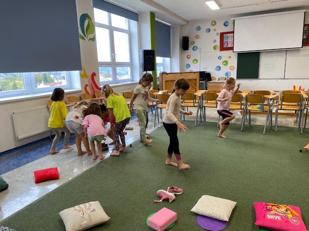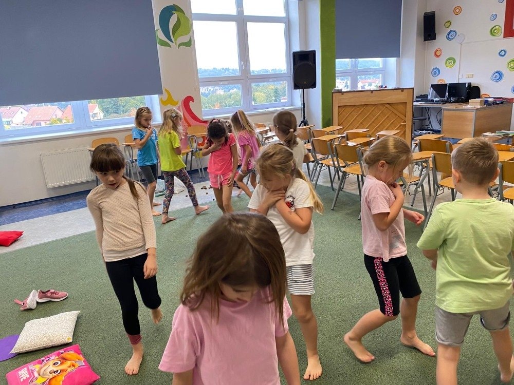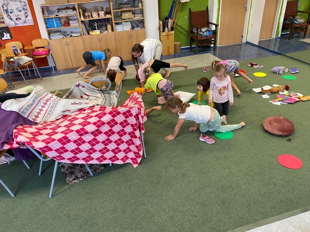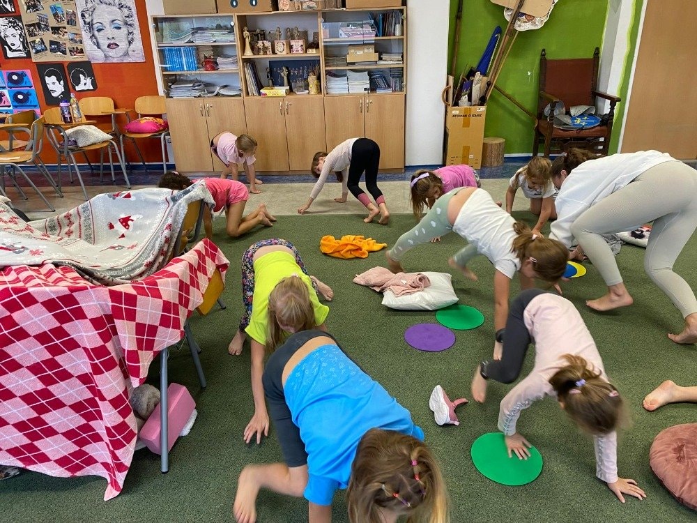 Naše druhé setkání se neslo v duchu podzimu a vůně lesa. Děti si tentokrát rozložily své podložky přímo uprostřed podzimní přírody. Společně jsme si vyzkoušeli pozice inspirované zvířátky a přírodou. Dětská jóga tak přirozeně spojuje pohyb, fantazii i respekt k přírodě kolem nás. Celou lekcí nás provázela jemná vůně lesa z aromalampy, která vytvořila kouzelnou atmosféru klidu a soustředění. Přichystané lesní plody a přírodní materiály se staly součástí našich dnešních cvičení, dechových her i krátké meditace. Na závěr jsme společně poděkovali lesu za energii a s úsměvem se rozloučili - nabití, zrelaxovaní a s radostí v srdci.